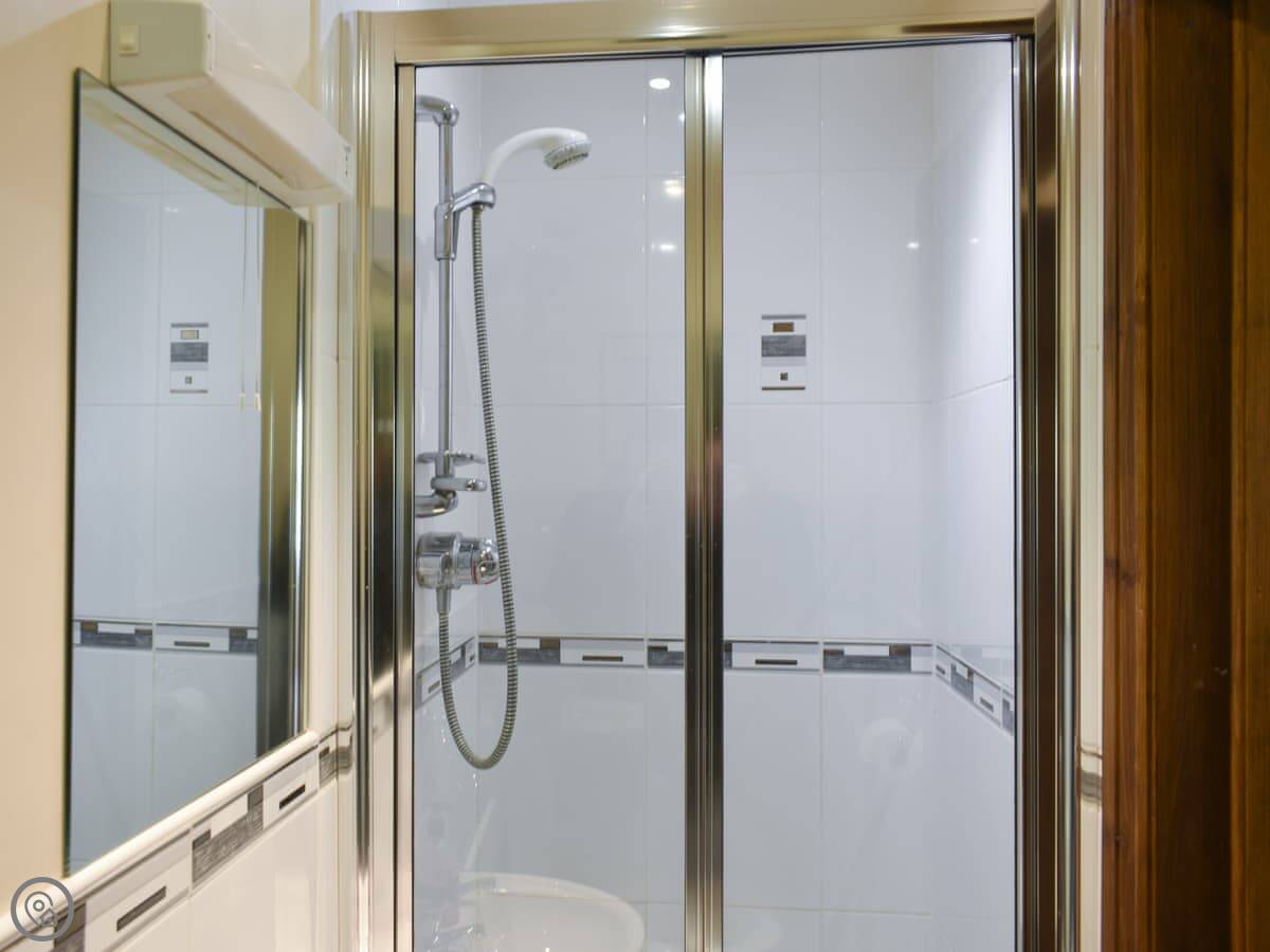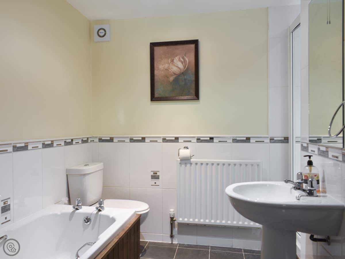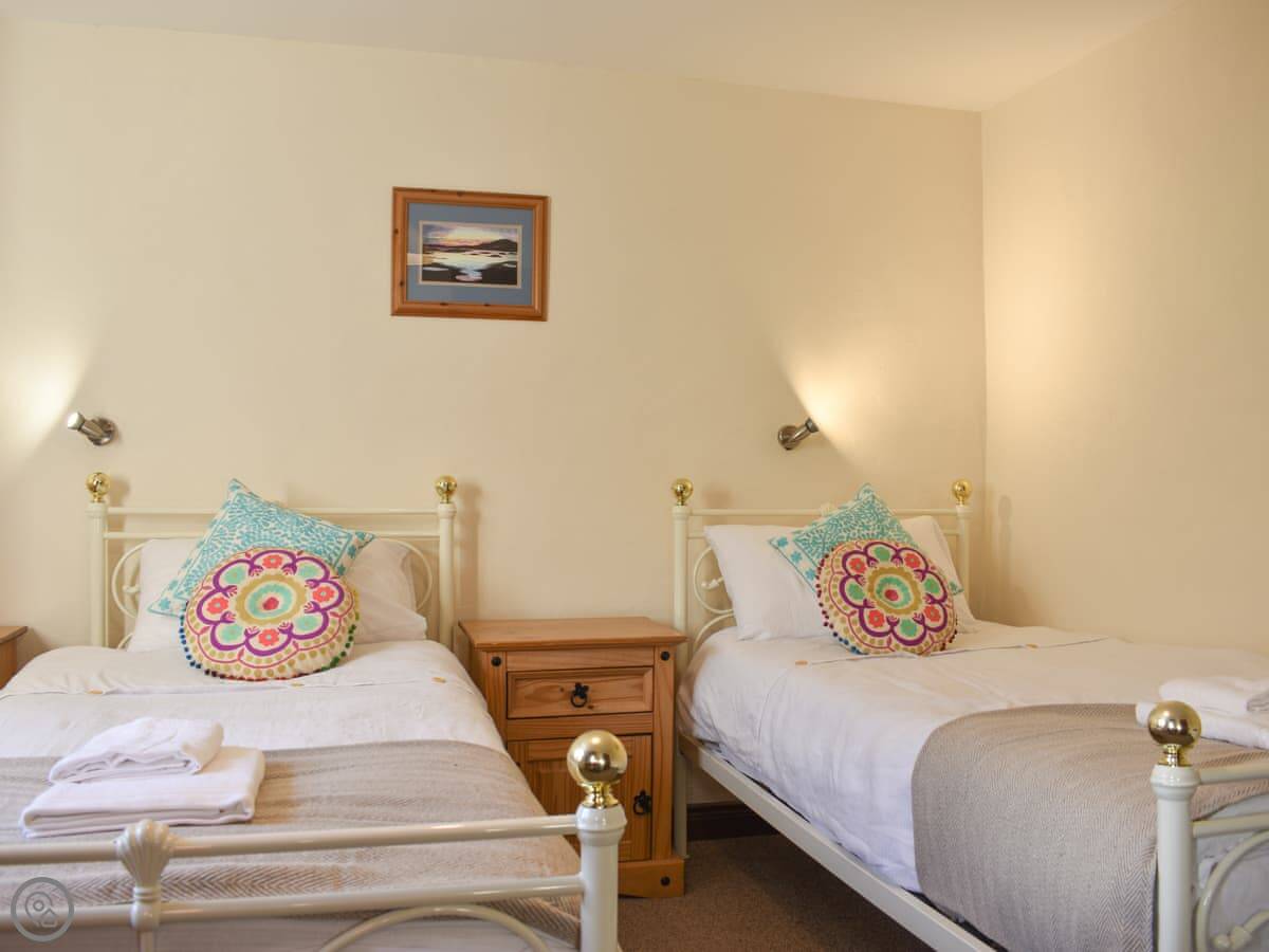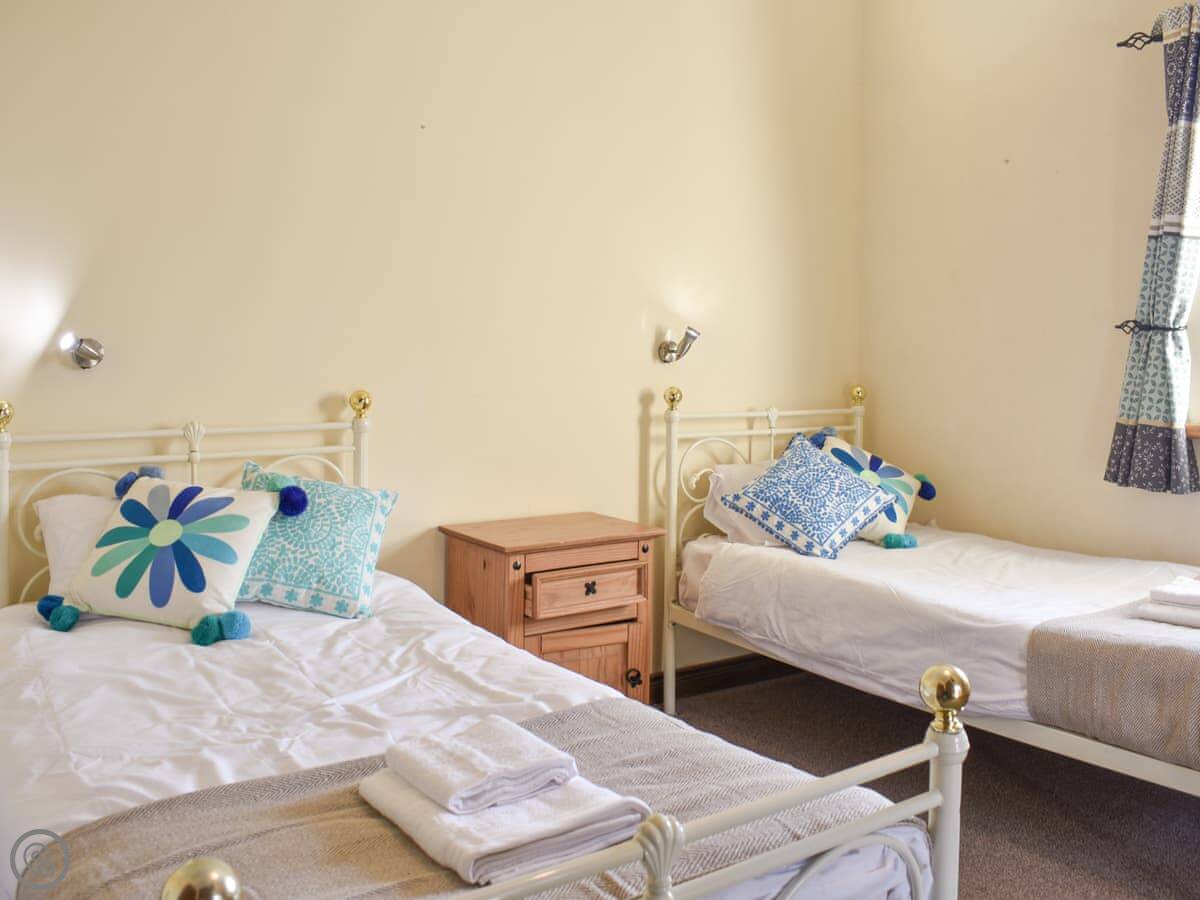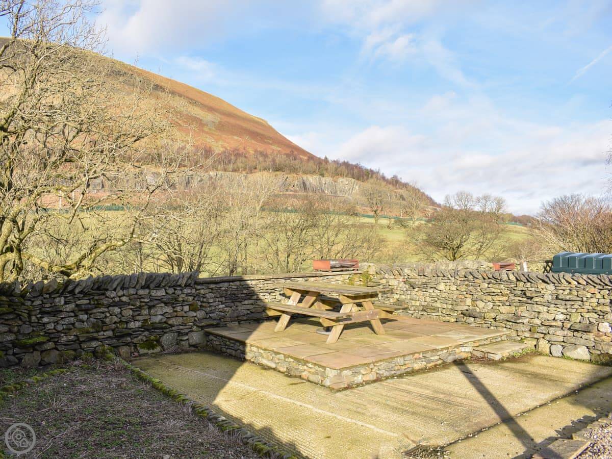 It's an old farm building done up. Four bedrooms, all on the ground floor. Two have their own bathrooms, and there's a third bathroom as well. Upstairs is just the living room. It's a big space with doors that open onto a small balcony. You look out over the valley and the River Lune. The views are good.