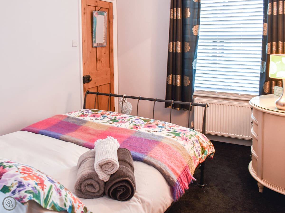 The place sleeps four. Two bedrooms and one bathroom. It's got a 4 Star rating from VisitEngland. It's comfortable and clean. The stairs are steep.