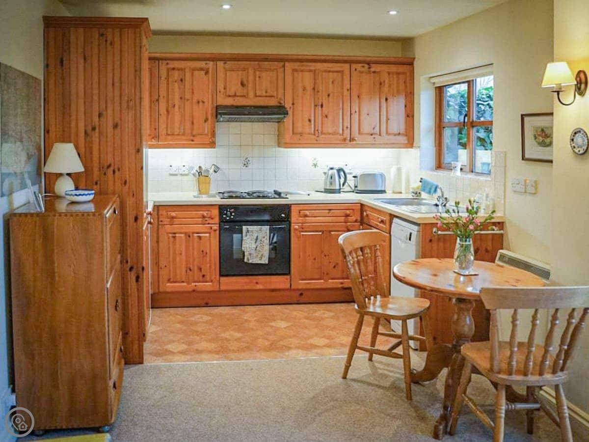 The garden gets the sun in the afternoon. You've got a little table and chairs out there. Inside, there's a TV with Netflix, a dishwasher, and a washing machine. Bedding and towels are included. One well-behaved dog is welcome.