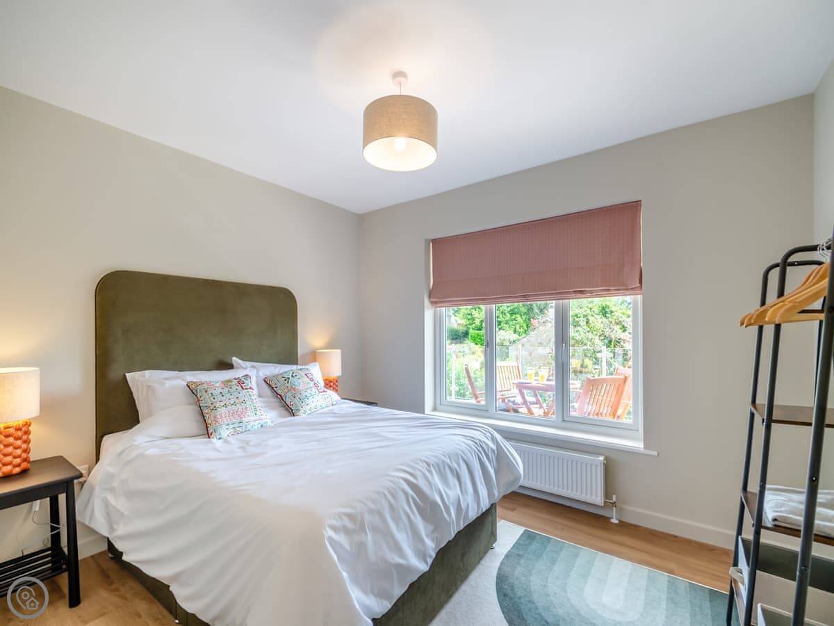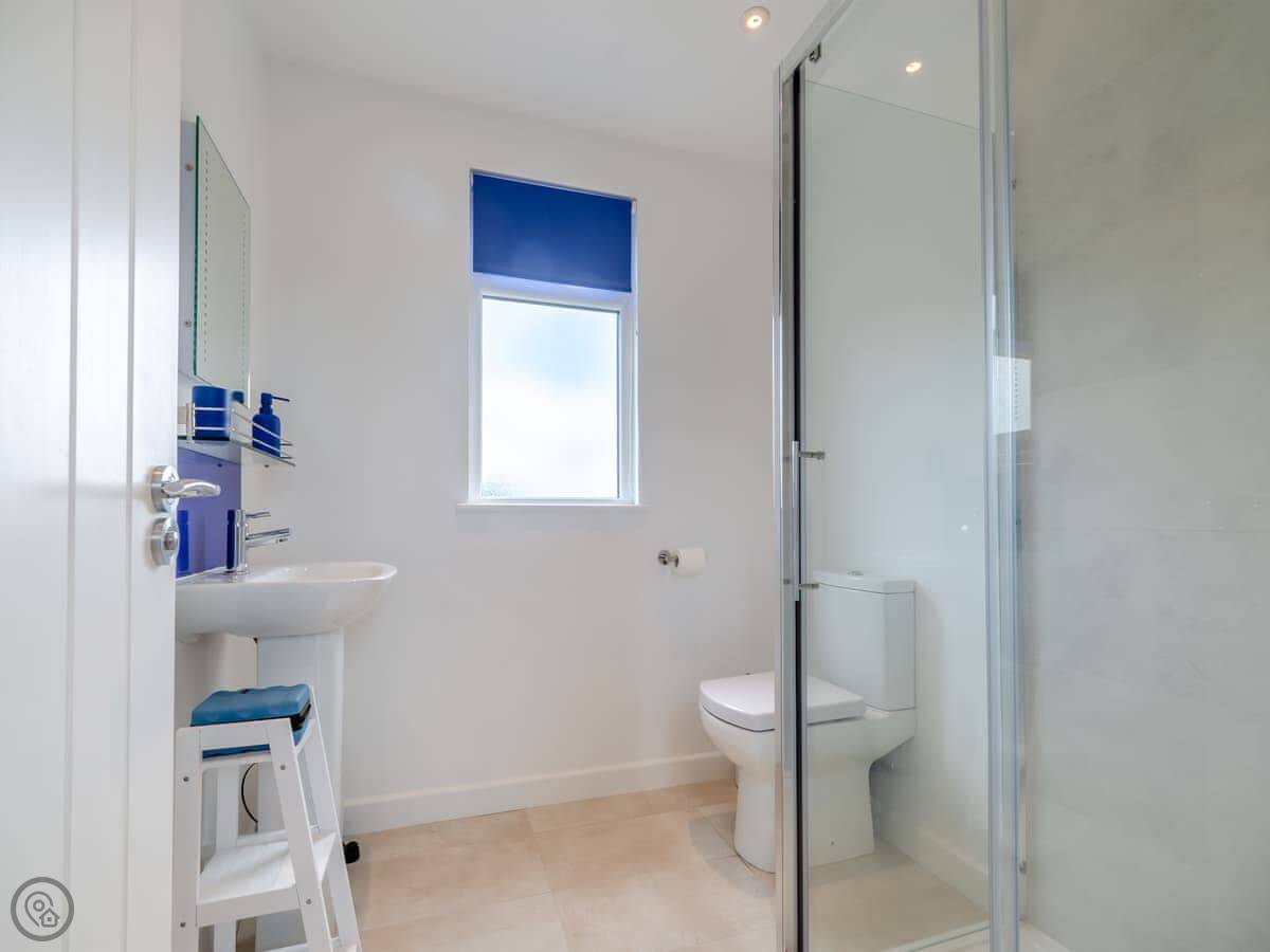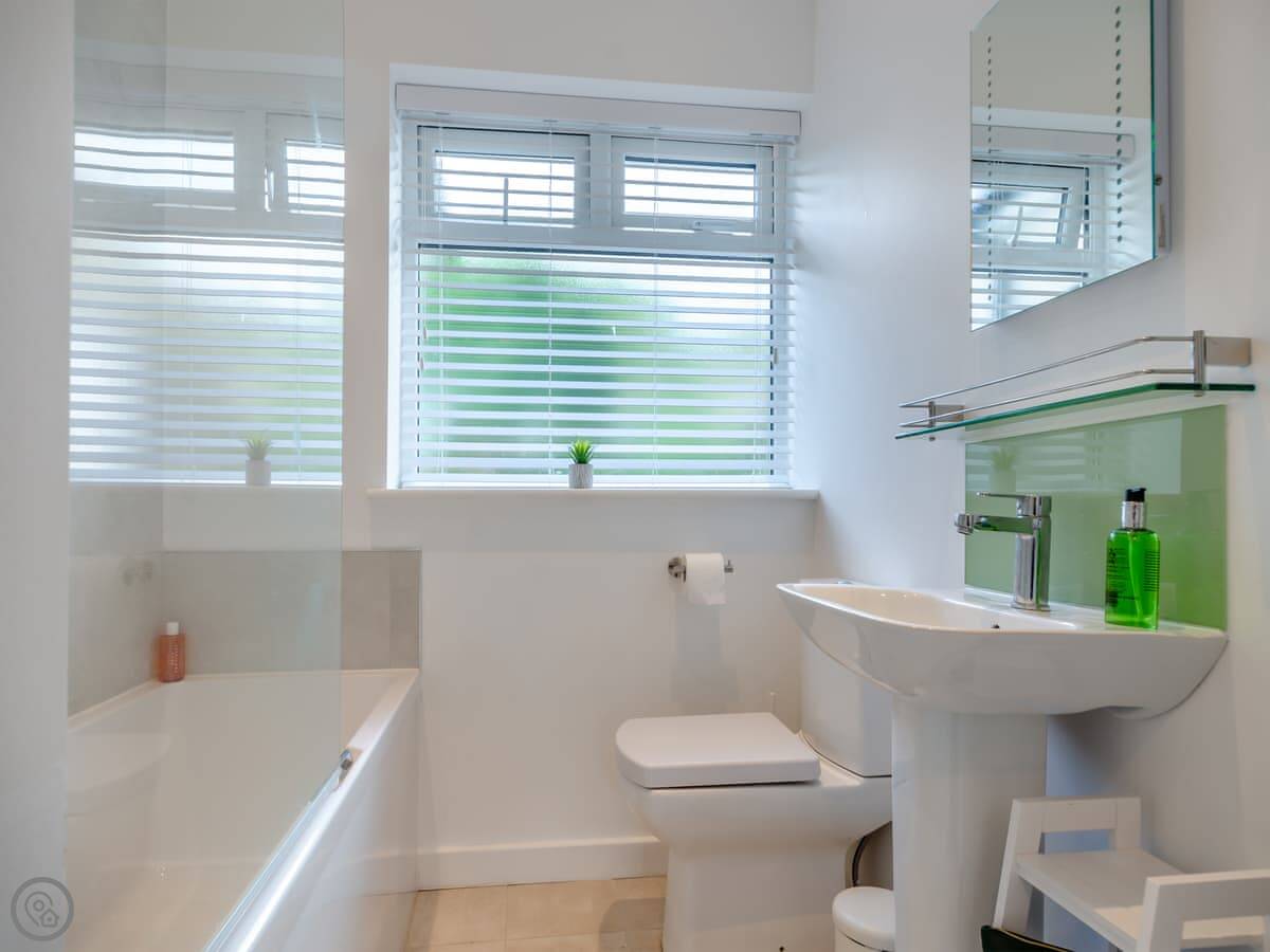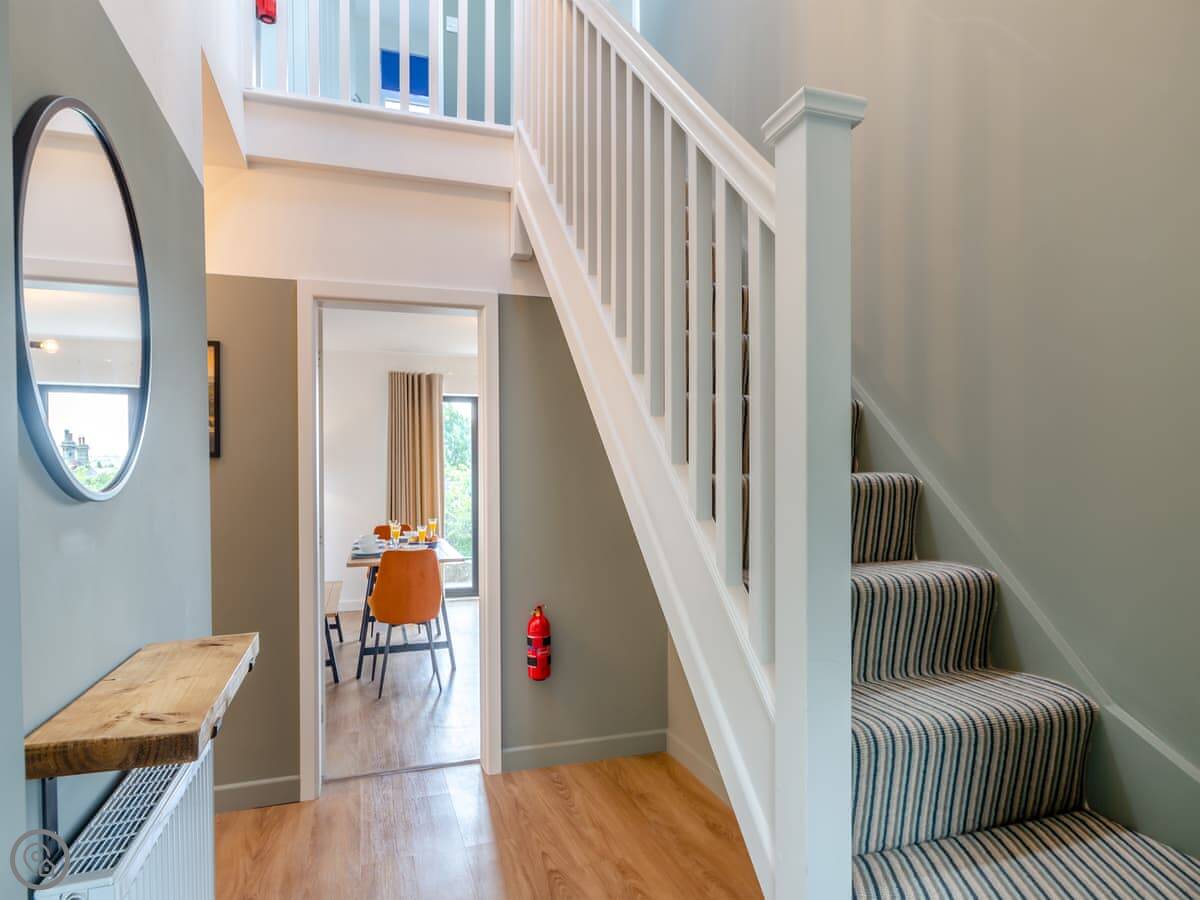 It sleeps five, in three bedrooms. There are two bathrooms, one upstairs and one down, and one of the bedrooms is on the ground floor too. It has a 4 Star rating. It's clean, and feels quite new after the renovation.