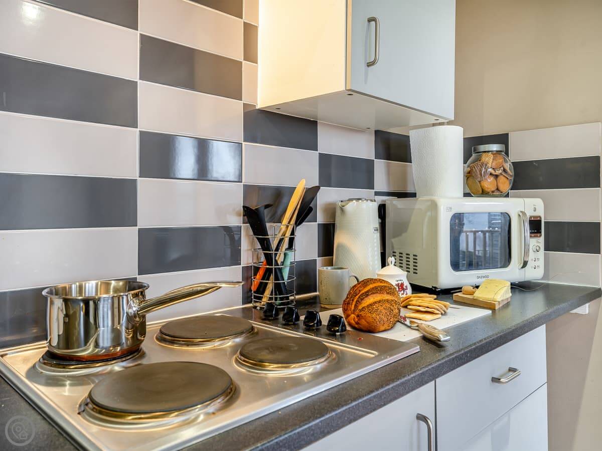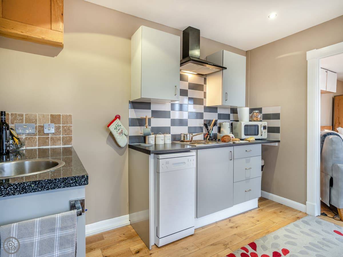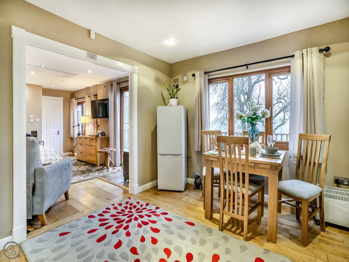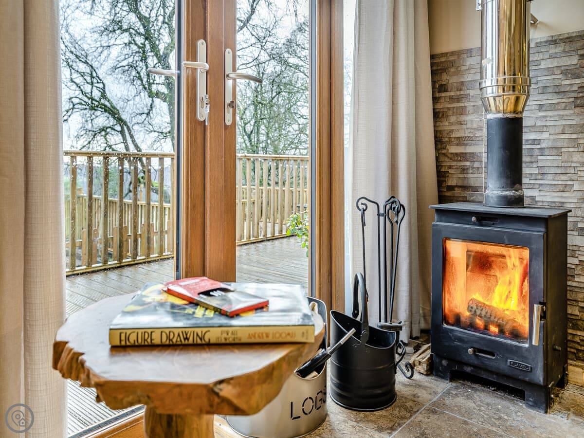 The lodge itself is well equipped for your break and has been furnished with comfort and quality in mind. An open plan layout is split into two areas… First, you’ll enter the kitchen diner area with a well-equipped kitchen and a dining table under the window to enjoy the views! Then the spacious sleeping/lounge area also faces out to the beautiful scenic views, this area has a double bed, comfy reclining sofa, log burner, TV and ample storage. There is a shower room with separate toilet.