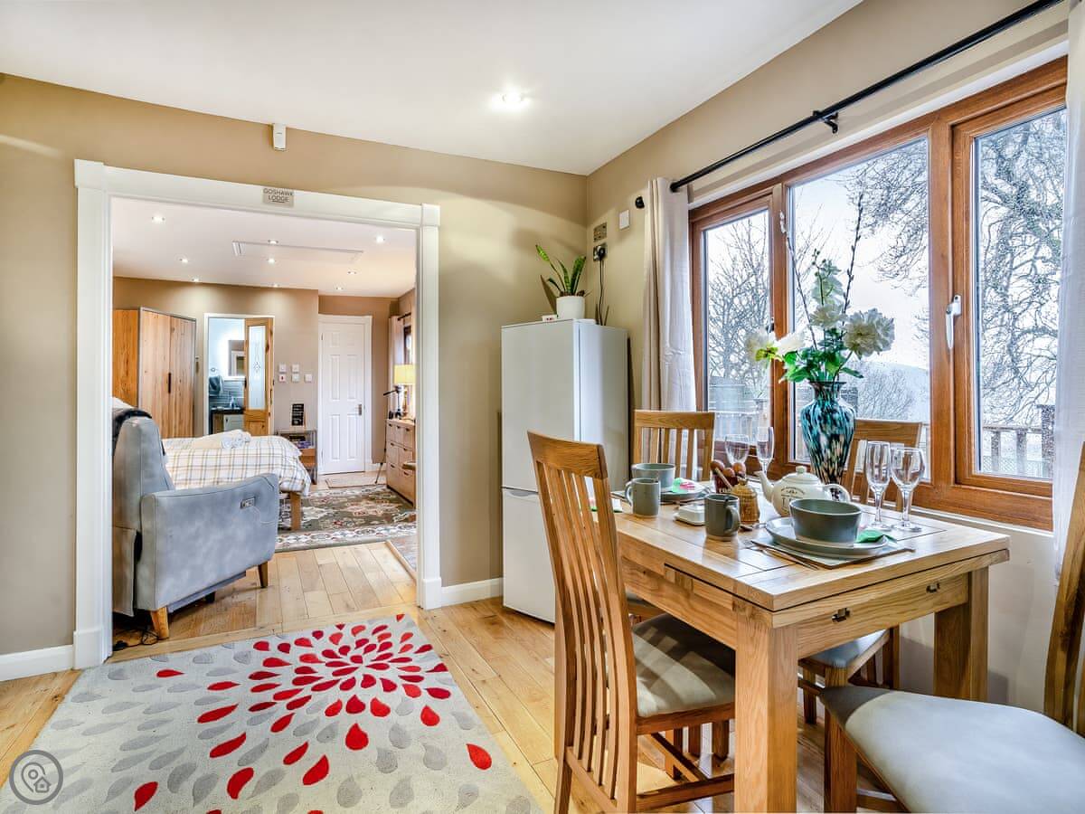 Sat at the top of a mountain with panoramic views, Goshawk Lodge is all about the location. Direct access from the garden will get you to the nearby Cwmcarn Forest, a popular destination for hikers and bikers. Whether you are visiting to hit up some of the trails or enjoy a relaxing countryside retreat, this really is an idyllic spot! The lodge enjoys privacy and plenty of outdoor space to enjoy sunrises, sunsets, and all-round fantastic views, there is a decked seating area, BBQ and fire pit. You may even spot a pair of Goshawks perched on nearby Ash trees. As one of only 500 pairs of these rare breeding birds in the UK, it’s only fitting to name the lodge after them!