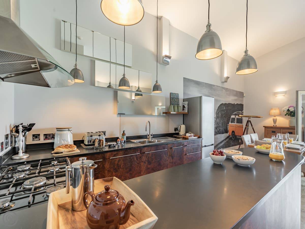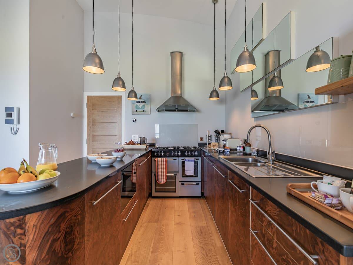 Newquay town centre is a short walk down the hill for shops and places to eat. The closest beach is Fistral, which is about a ten minute walk. That's the surf beach. There are quieter ones around the headland too.