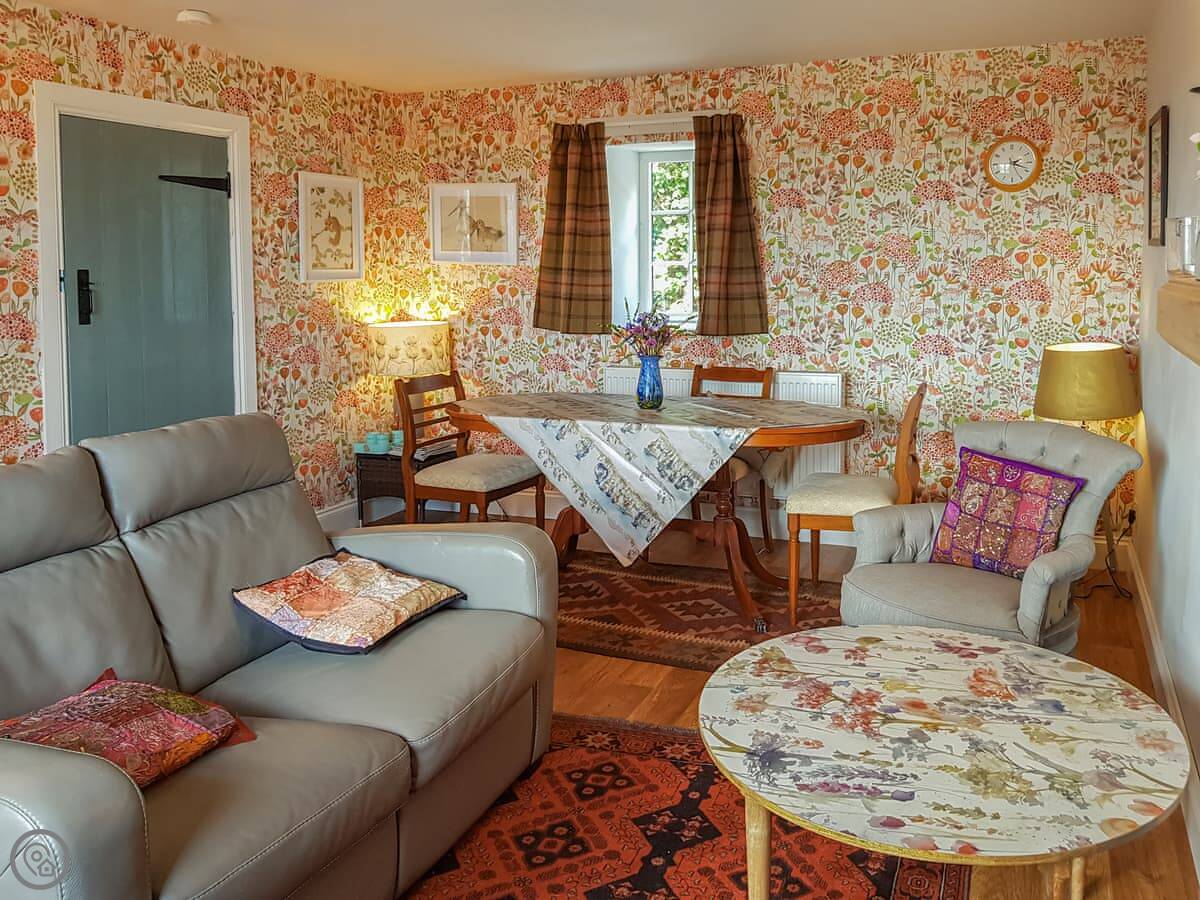 Maines Farm Cottage is near Chirnside, in the Scottish Borders. It's a single-storey cottage, which they call a 'but and ben', attached to the main farmhouse. You get your own front door and a private garden.