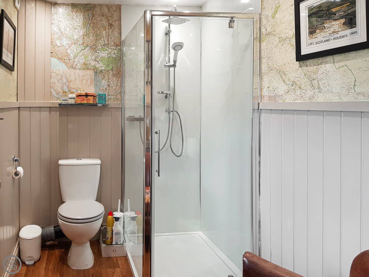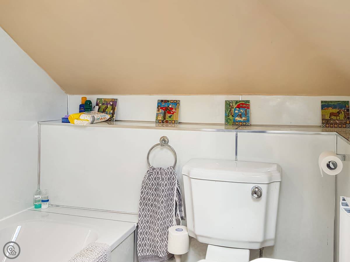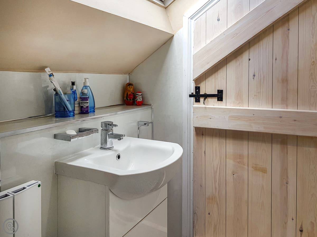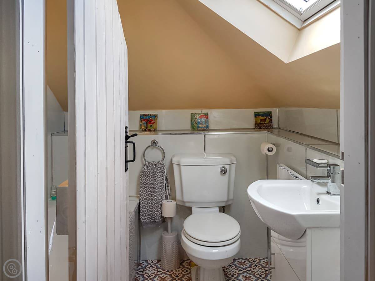 It sleeps four. There are two bedrooms and two bathrooms. One bathroom is upstairs, the other is a shower room downstairs by the back door, which is handy. It's got a 4 Star rating. It's comfortable and clean.