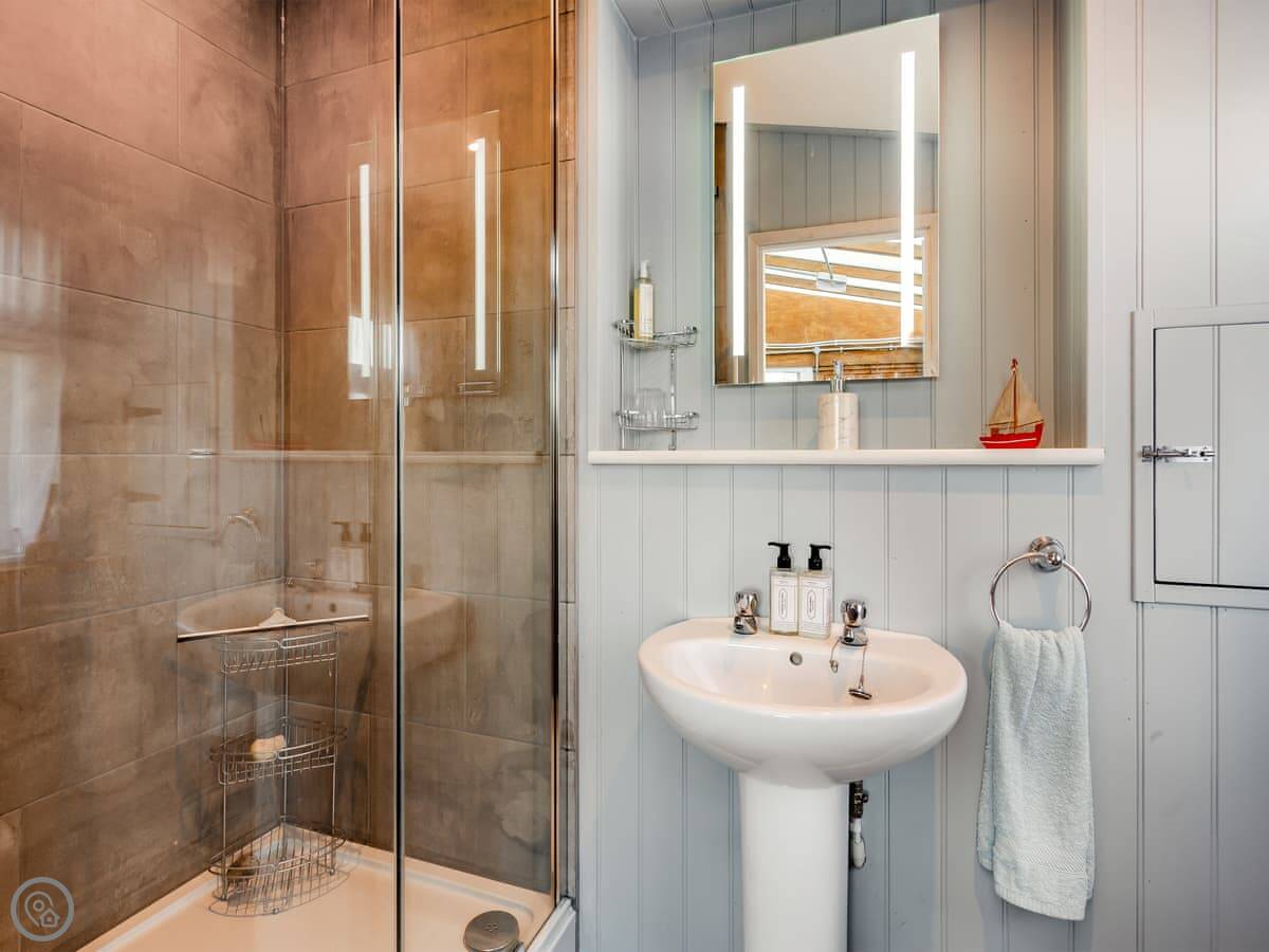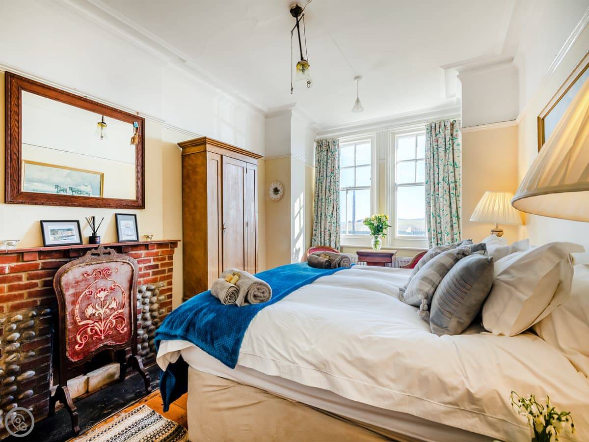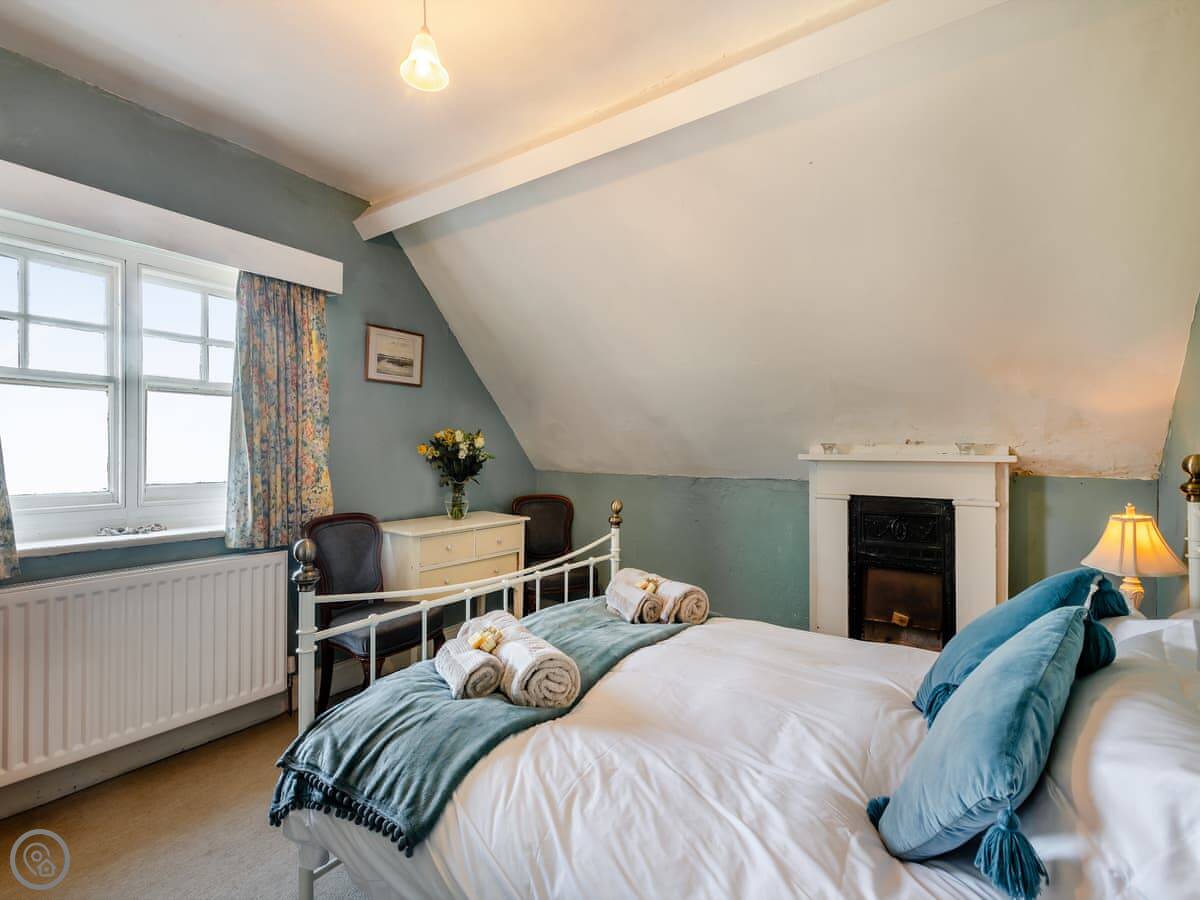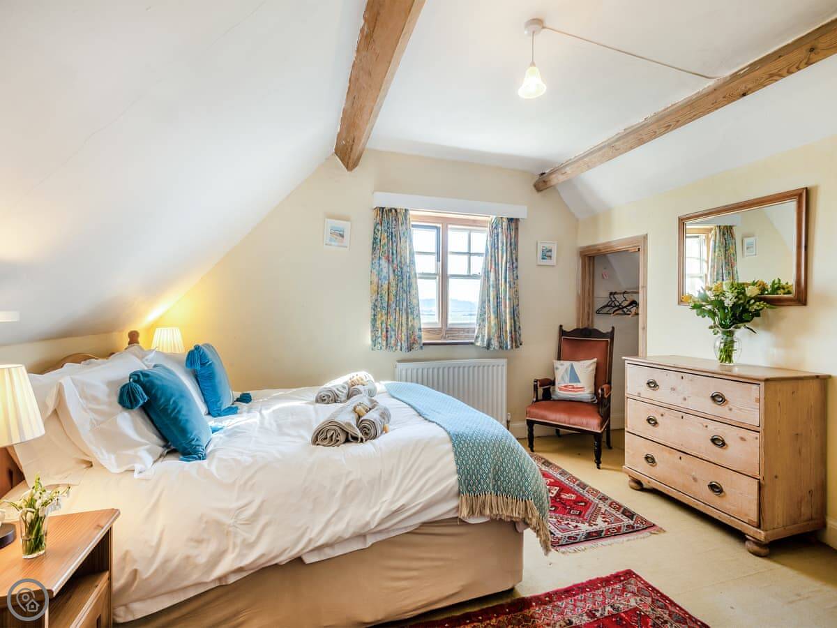 It sleeps eight people. There are four bedrooms and two bathrooms. One bedroom and a shower room are on the ground floor. The other three bedrooms are upstairs. It's got a 4 Star rating. The place is full of character, not new. The beds are good quality.