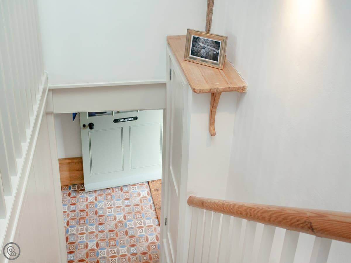 Thorne Farm Annexe is in Lympstone, on a working farm. It's attached to our farmhouse. You park in the farmyard and go in your own front door.