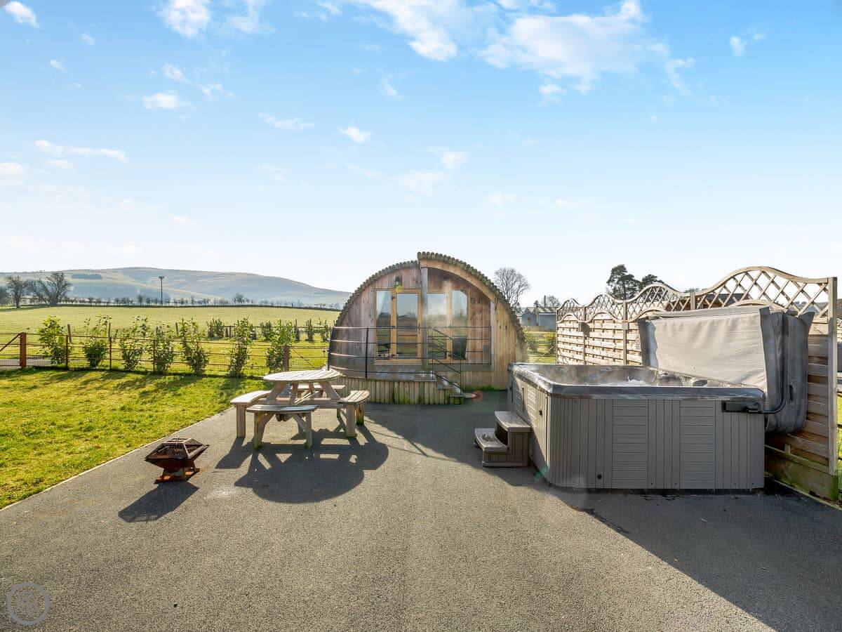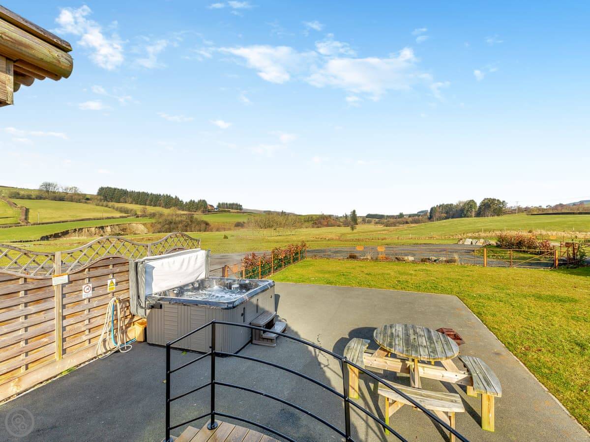 The cottage has one bathroom. Everything is on the ground floor, so no stairs. There's an enclosed garden with a patio and a private hot tub. Parking is on site.