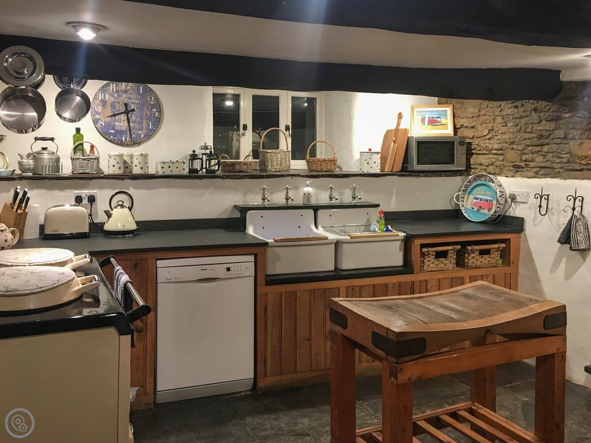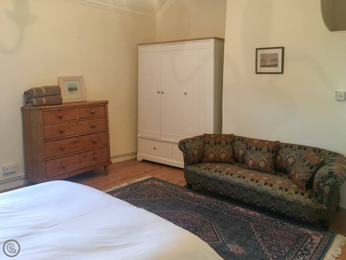 Myrtle Farm is a lovely Grade II listed, traditional and historic Devon longhouse, built c. 1600 which retains many original features such as stone and slate floors, inglenook fireplaces, some steep stairs and lovely oak beams. There are four bedrooms: a kingsize, two double and a twin, plus a bathroom on the first floor with the bonus of underfloor heating. Downstairs is an additional shower room perfect for when you’ve spent the day surfing, the rest of the accommodation including a living room with cosy wood burner, a separate dining room with lovely feature inglenook fireplace and a kitchen with all you’ll need for your stay. Outside there’s a large enclosed private garden with views over surrounding hills with large lawns and a terrace for outdoor dining plus a gated patio with further outdoor seating where you can also enjoy a BBQ.