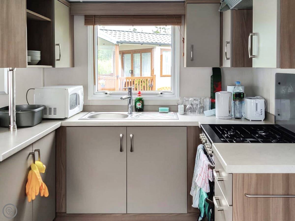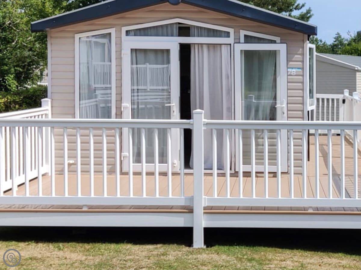 Cader Idris is a static caravan on the Hafan y Mor park in Gwynedd. It's detached, so you've got your own bit of space around it. There's an enclosed patio area with seating.
