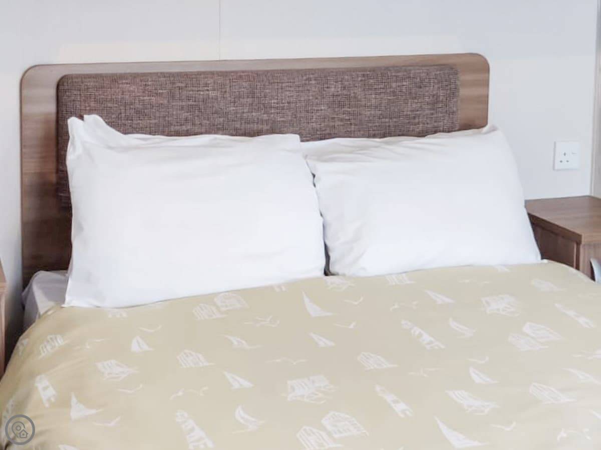 In terms of what's there, bedding and towels are included. There's parking right by the caravan, WiFi, and a TV. The facilities list mentions local fishing, a golf course, and horse riding nearby. No pets.