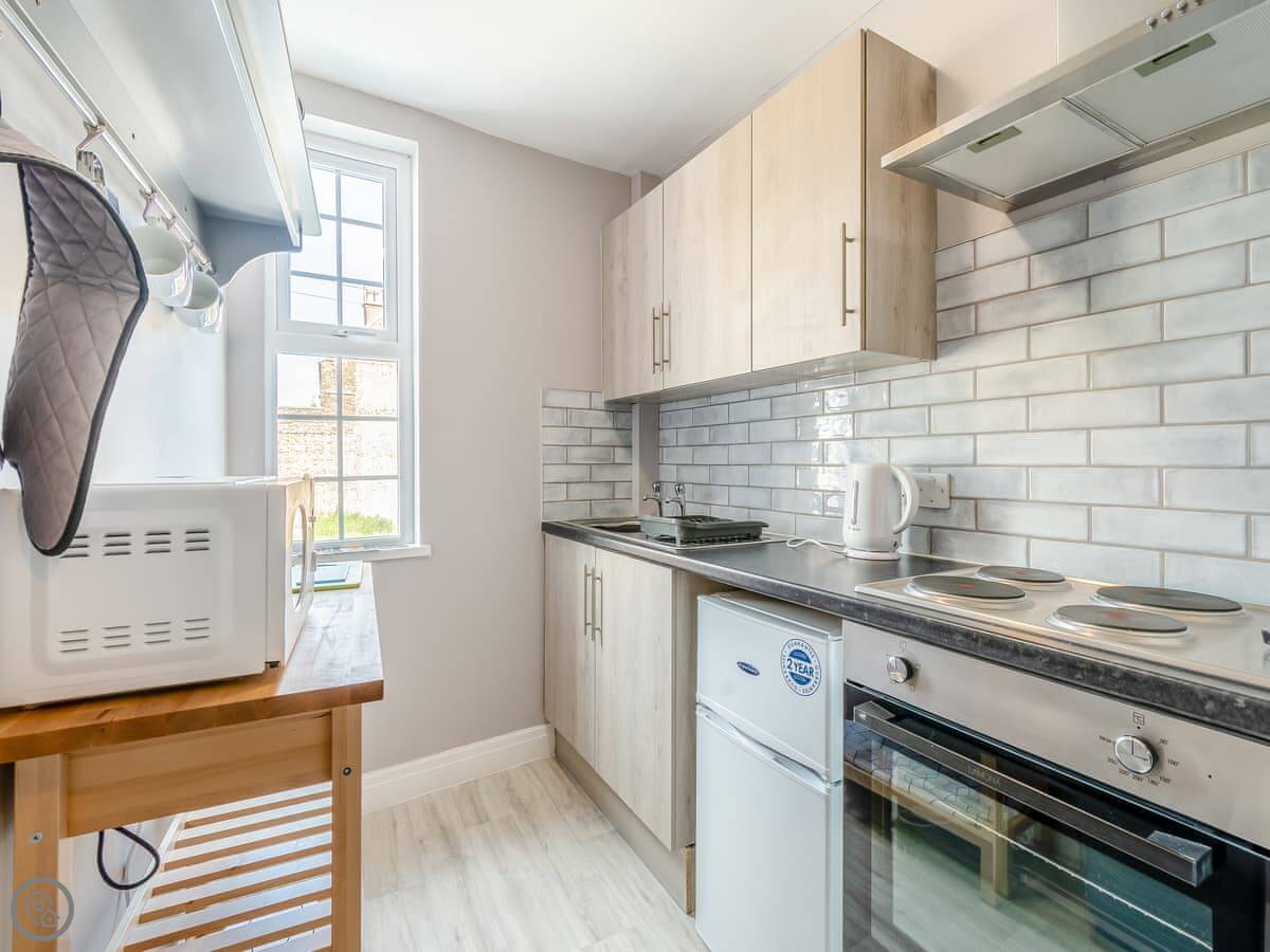 The Bluebell Apartment is in Bridlington, up on the second floor. You get your own entrance from the back street, up a flight of stairs. It’s for two people only.