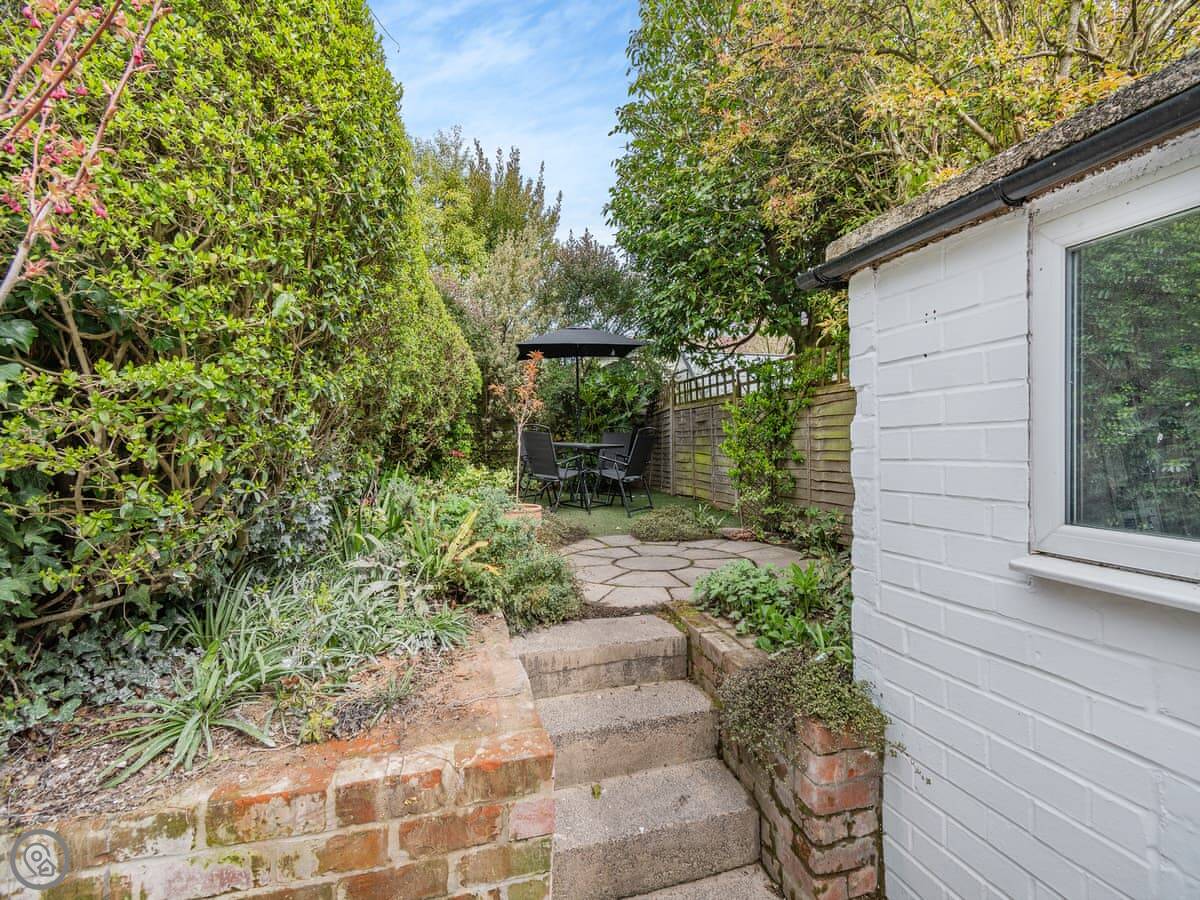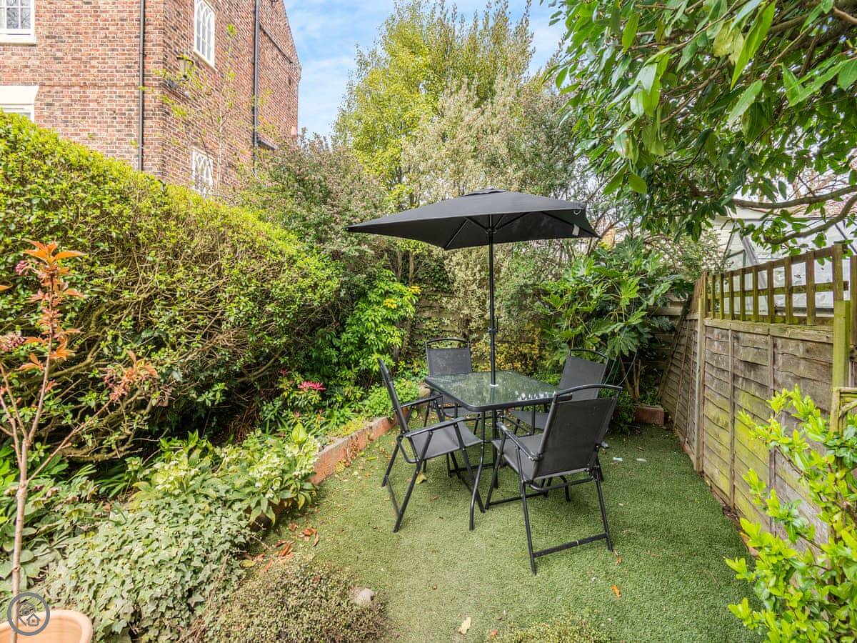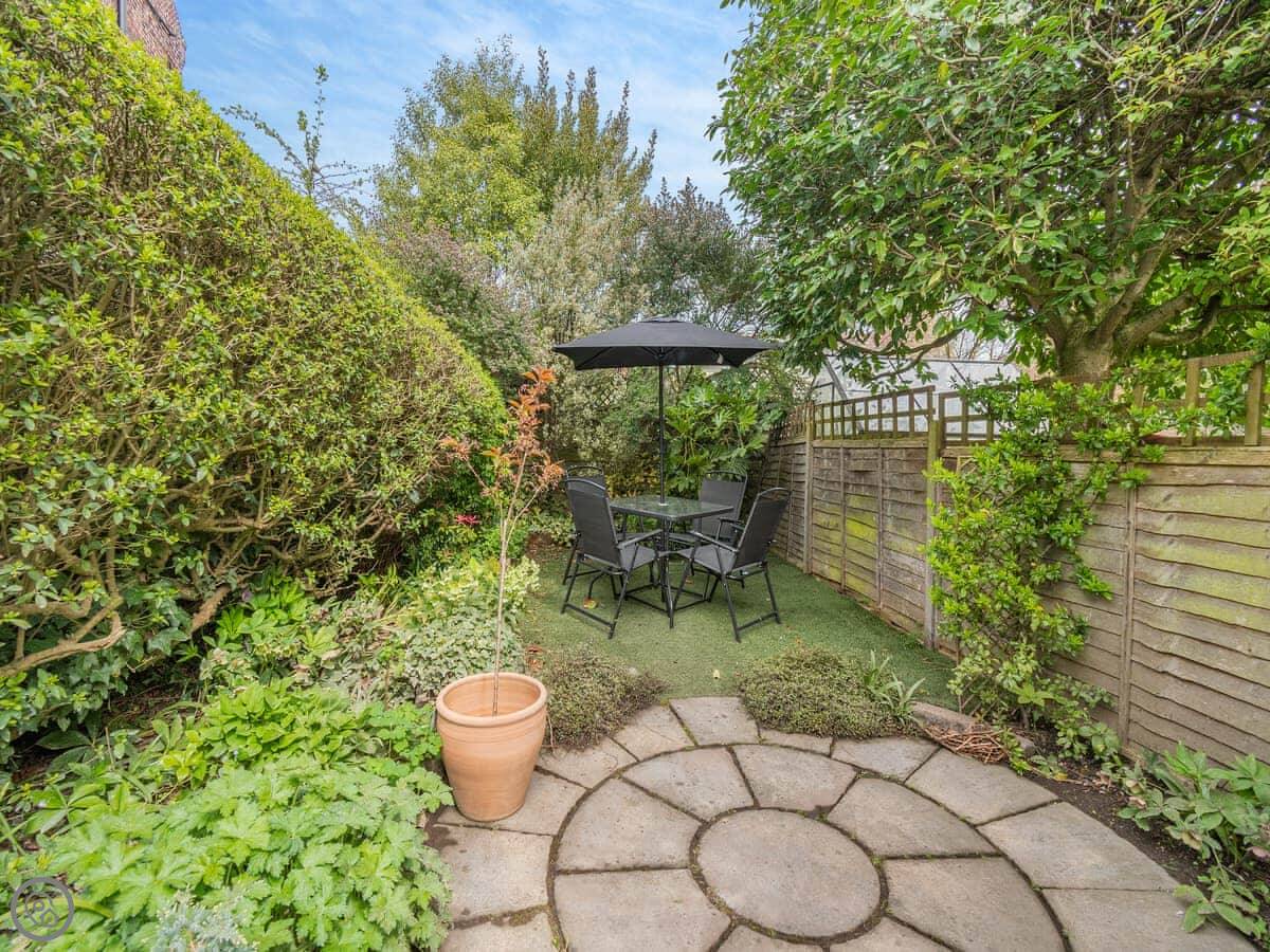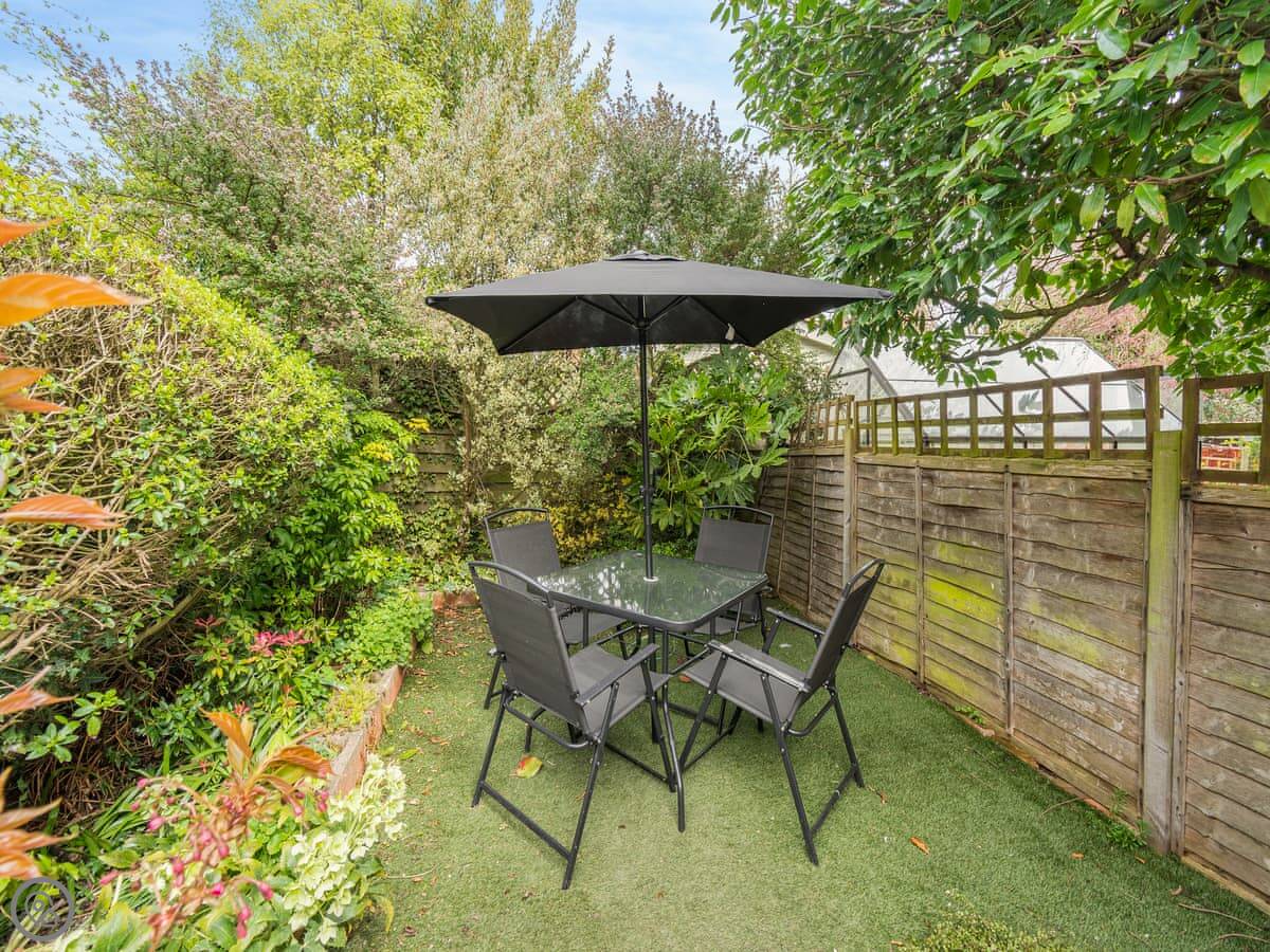 The garden at the back is enclosed. It's got a patio with a table and chairs, and a barbecue. It gets the sun in the afternoon.