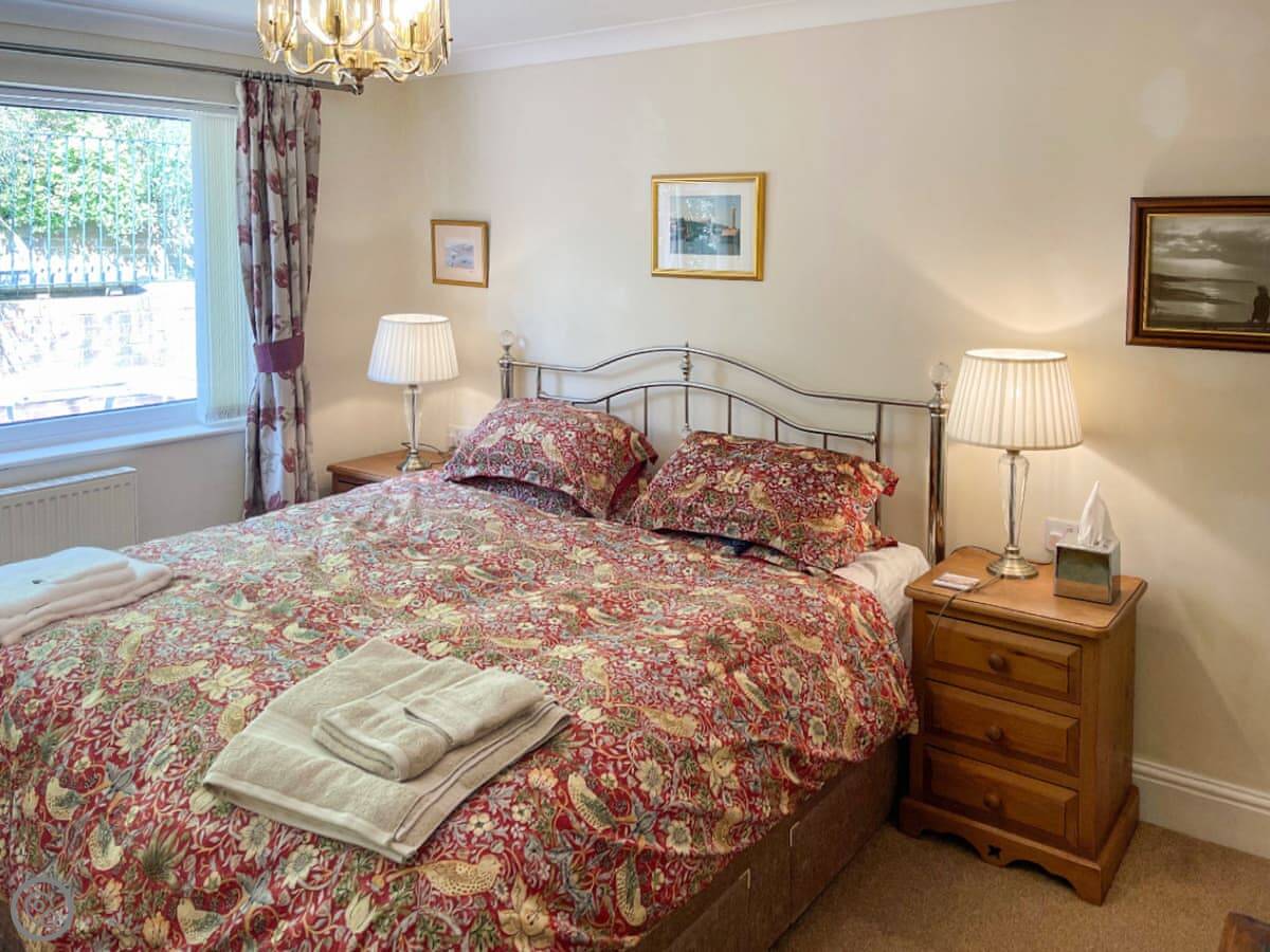 The garden is private and looks out onto trees. There's a patio area. You can hear the little steam train go by from the village sometimes, which is nice.