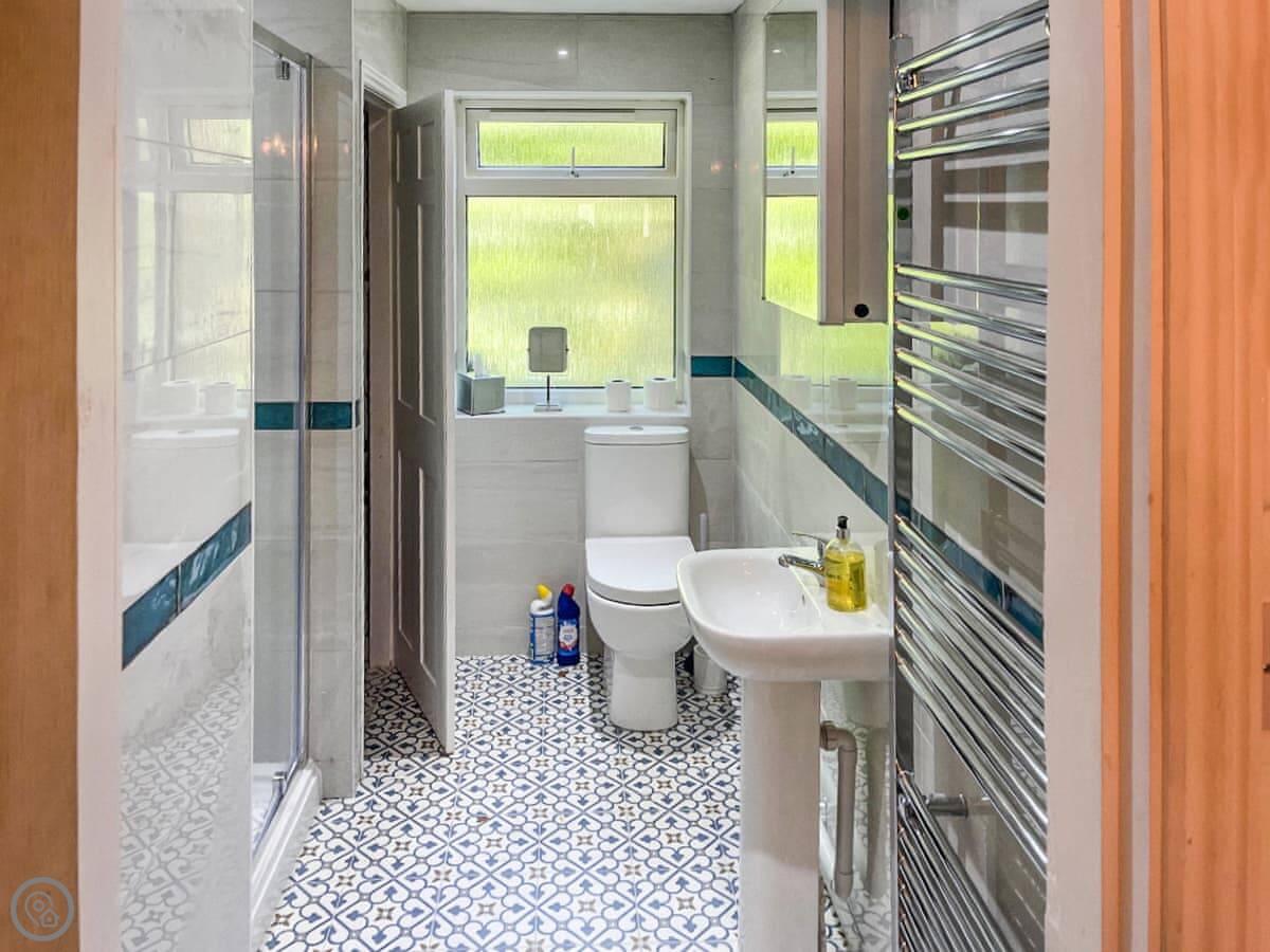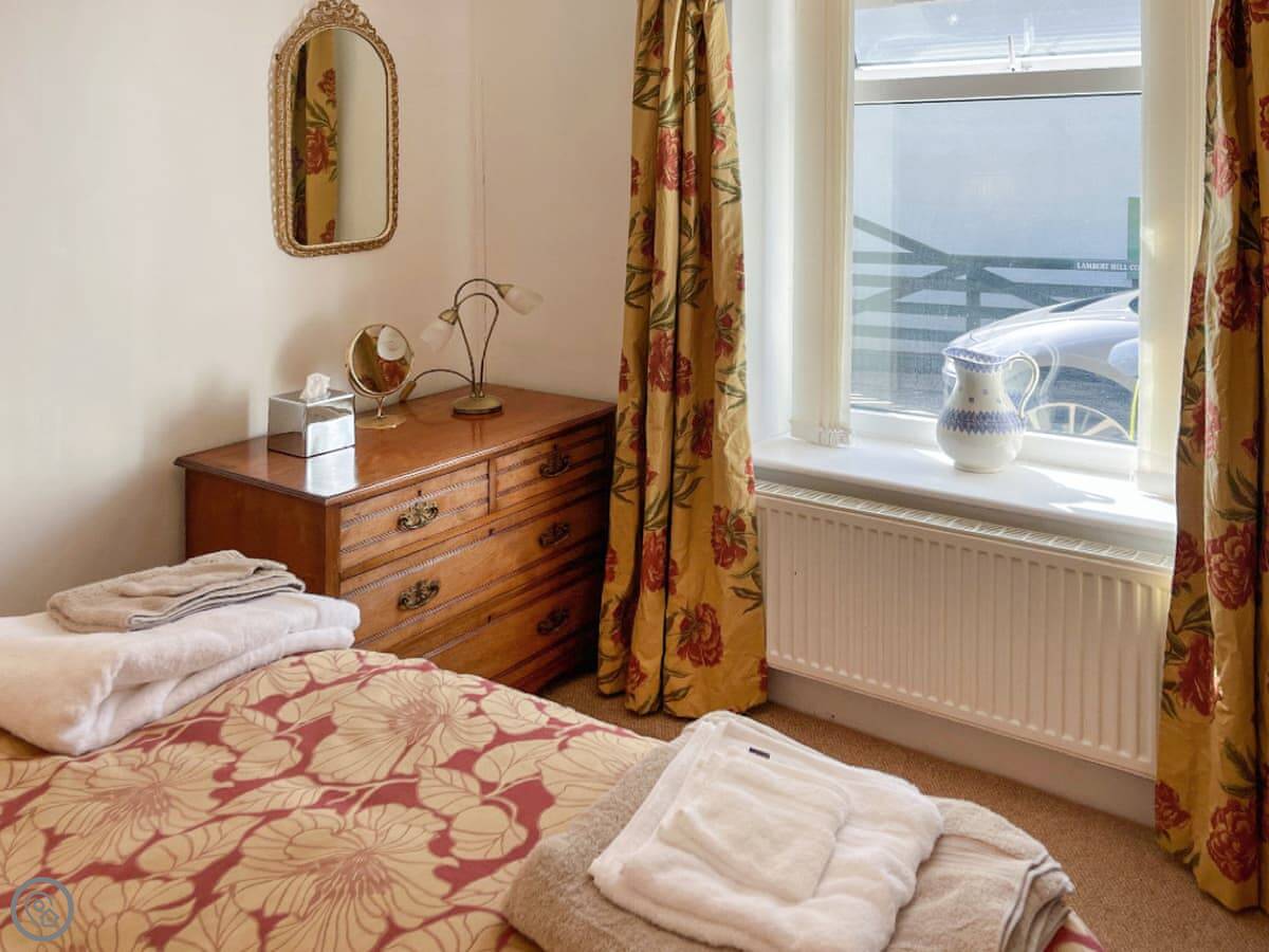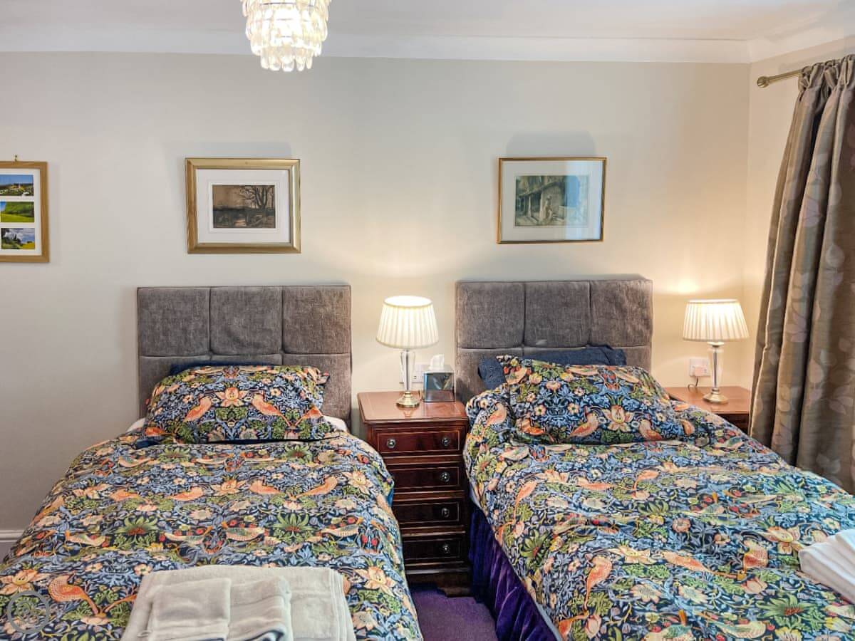 It sleeps six. Three bedrooms, two bathrooms. One of the bathrooms is an en-suite to a twin room. It's got a 4 Star rating. Because it's an old building, there are a few steps inside, like stone steps up to the kitchen.