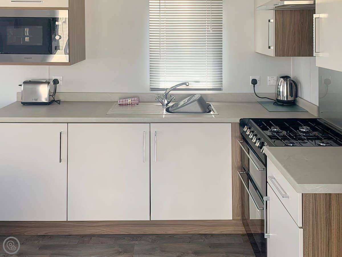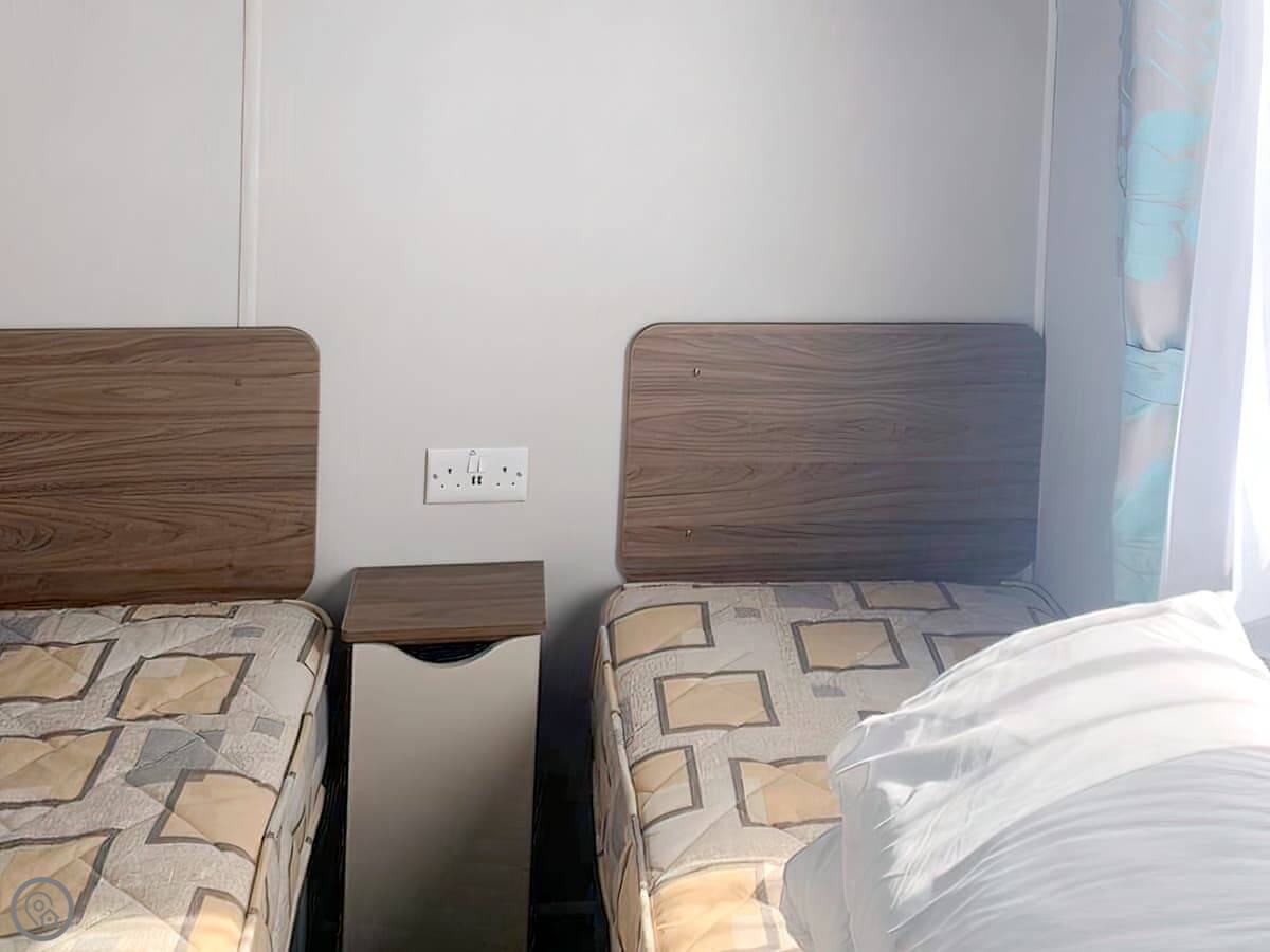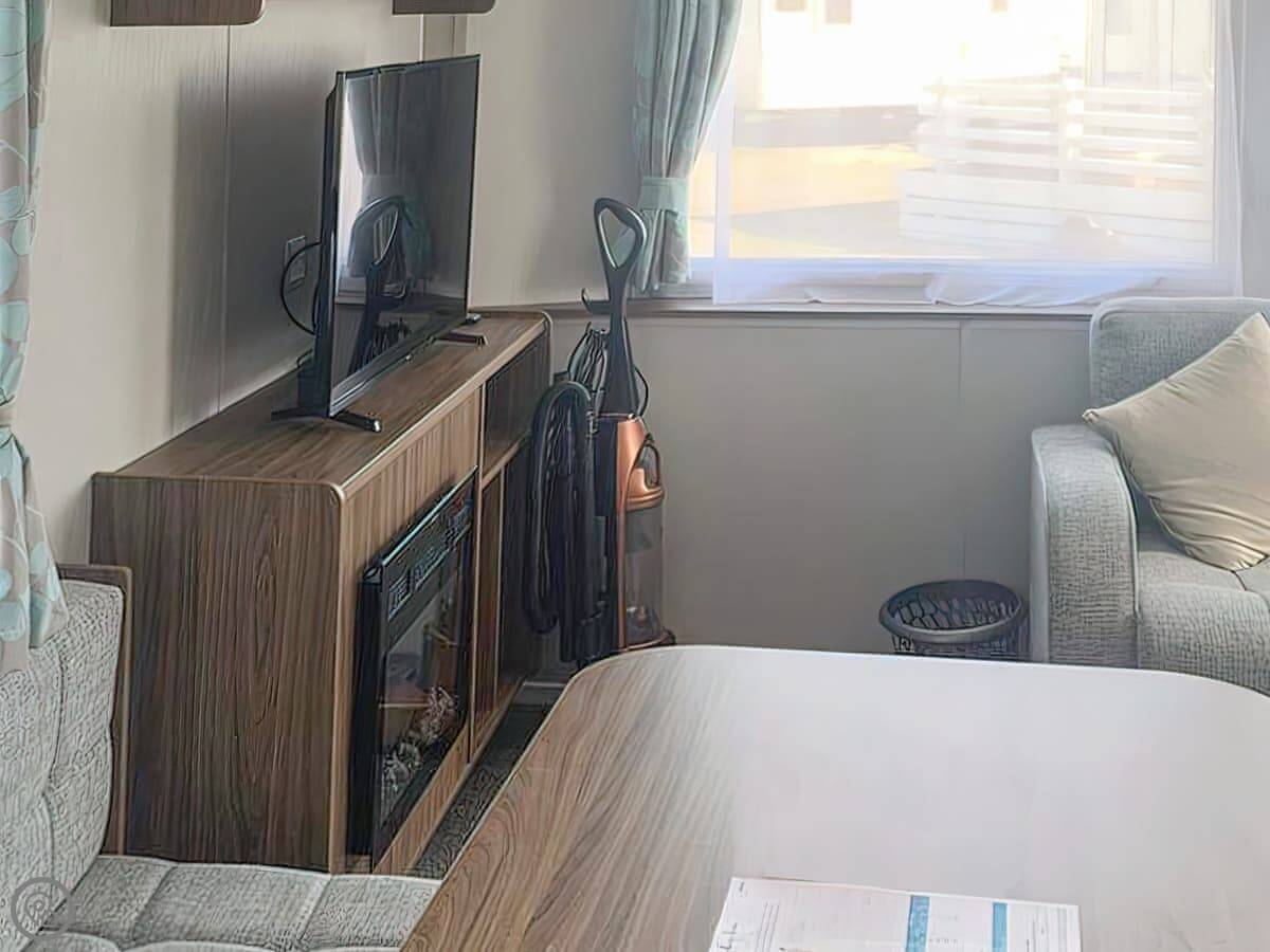 This is 31 Hawk. It's a static caravan on a big park in Morfa Bychan. The park is lively, so it's not a quiet, secluded spot. There's an indoor heated pool on site and lots of things like an arcade and bike hire. It can get busy in school holidays.