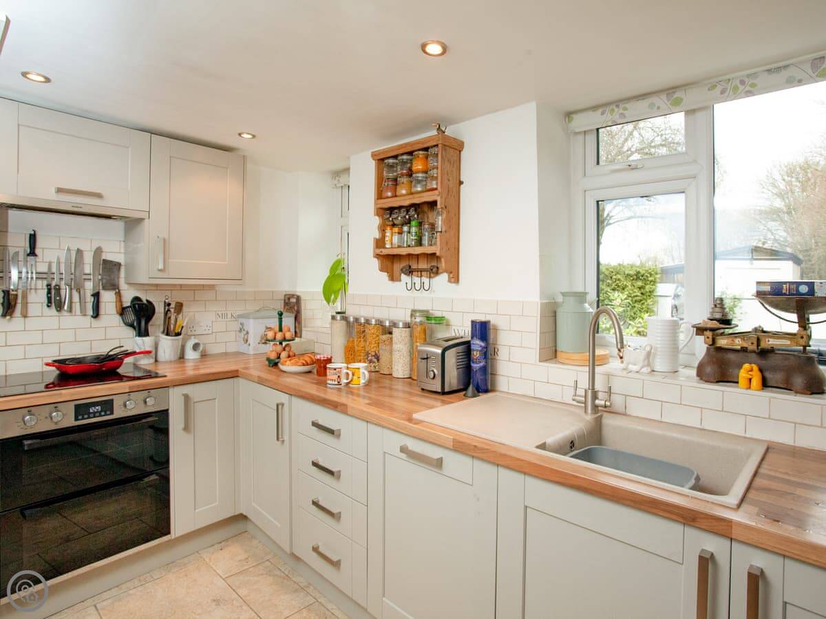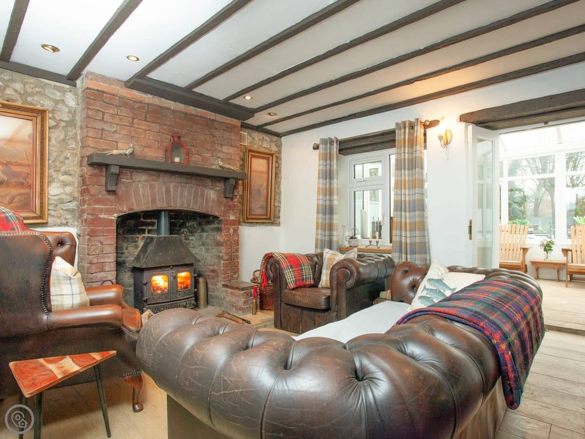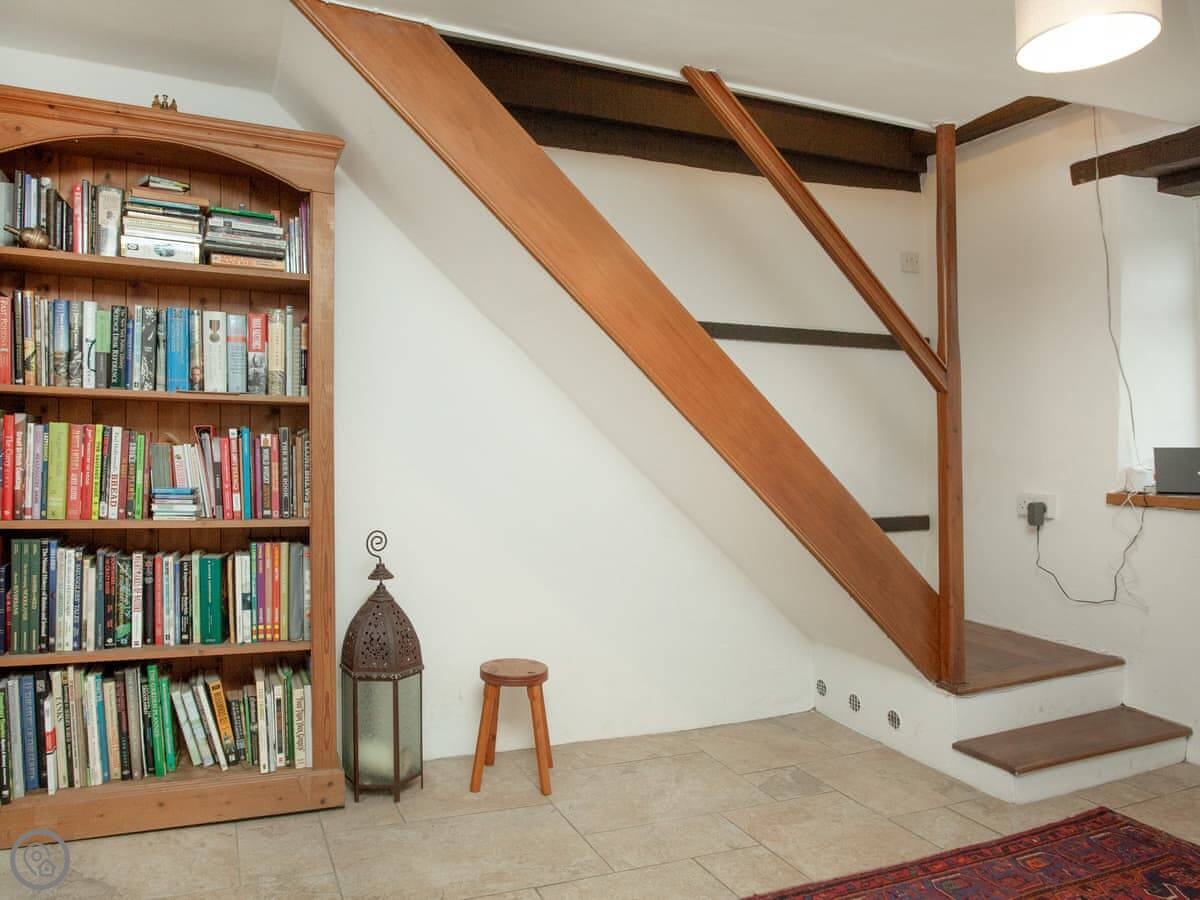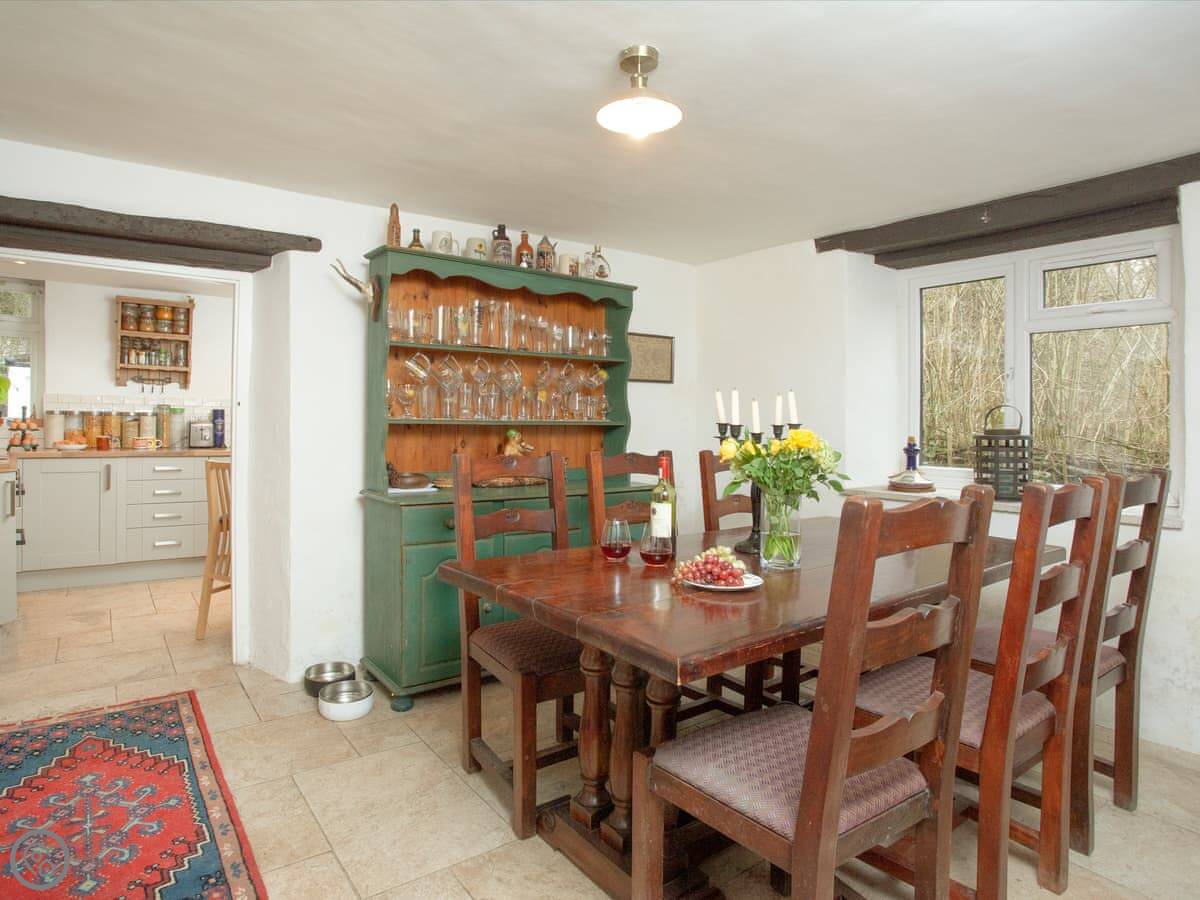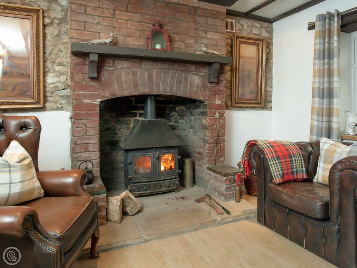The ground floor has a living room with a wood burner, a separate dining room, and the kitchen. They're all through-rooms, so it feels quite spacious for a cottage. Everything works and it's well looked after.