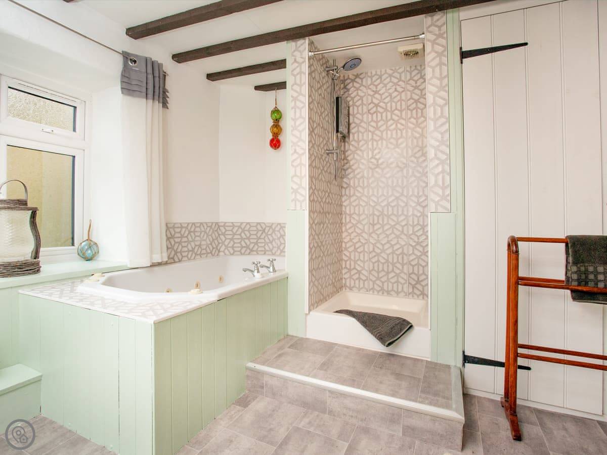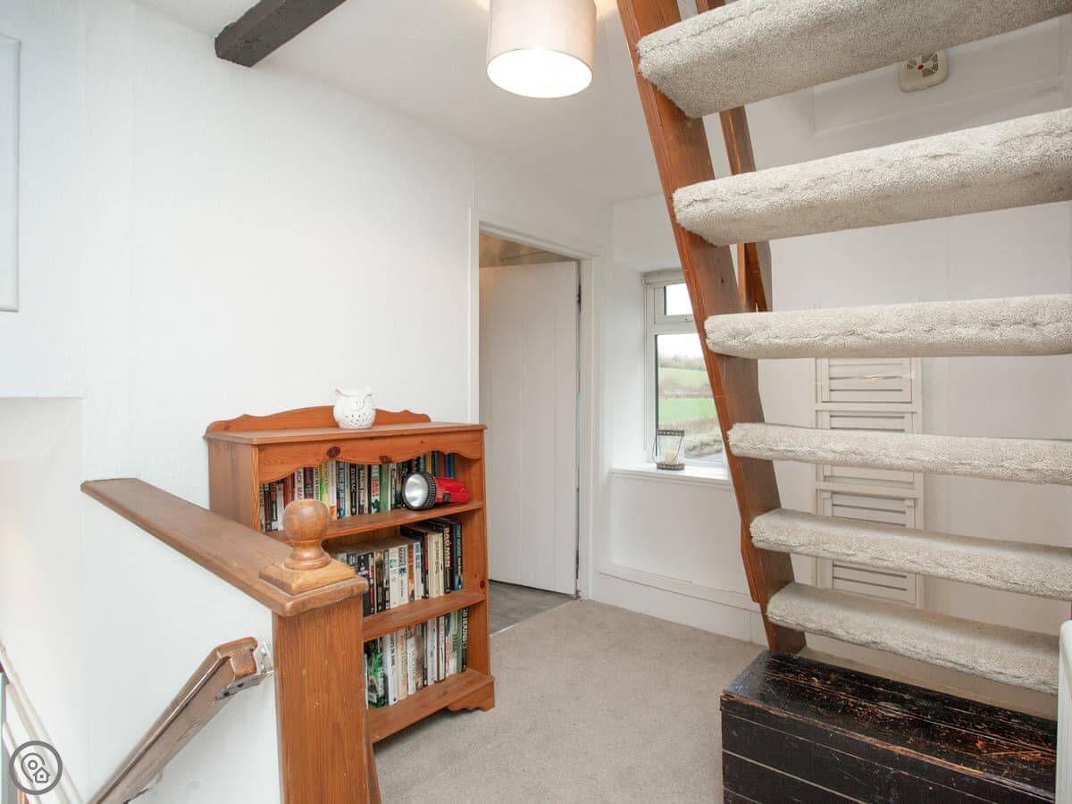 It sleeps six in three bedrooms, with two bathrooms. It's got a 4 Star rating. The rooms are a decent size. One thing to know: there's a third bedroom up in the attic. It's a proper room, but you get to it via a steep, space-saving staircase. It's fine, but watch your head.