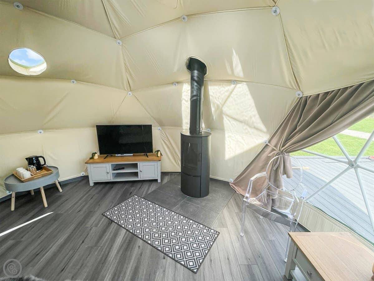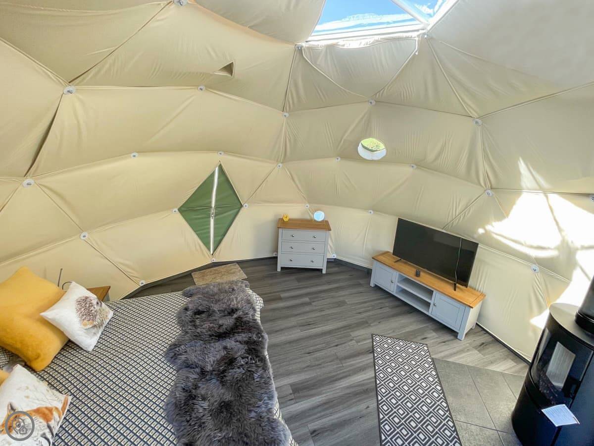 If you want to try glamping then this is the way to start. Situated on a camping site, this property offers a quirky, yet very comfortable base in which to explore the area. Elysian Fields has been doing BnB as well as camping for several years, and the Geo Dome is a new addition, introduced in 2021. This spacious property has a double bed, a wood burner and cooking facilities, including a microwave, toaster, gas camping stove and a kettle. There’s comfortable seating, a large TV, private bathroom and electric heaters should you require instant warmth. The site has its own pub, where you can mingle with other guests over a drink, or order food from the kitchen if you don’t want to cook.