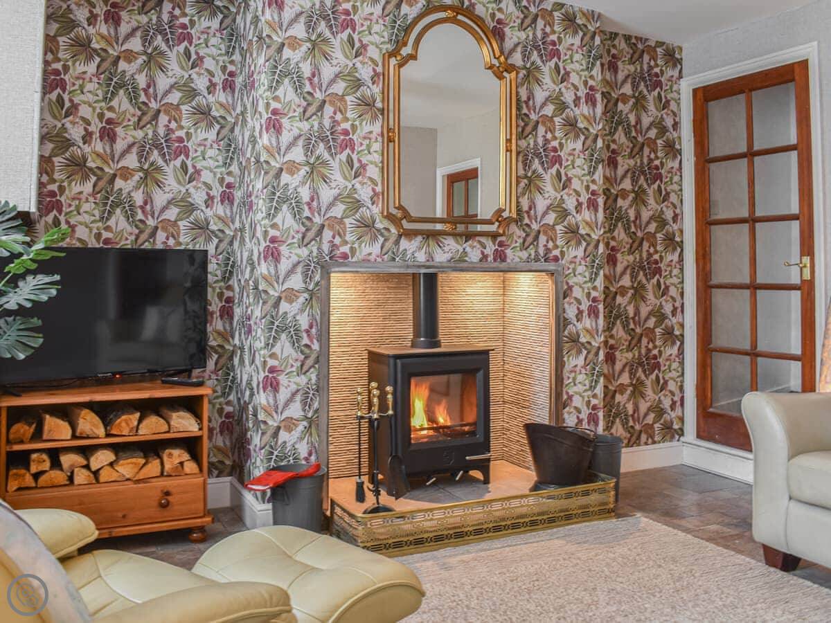 It's got a woodburning stove, WiFi, a TV, a dishwasher, and all the bedding and towels are included. It can be decorated for Christmas if you book for then.