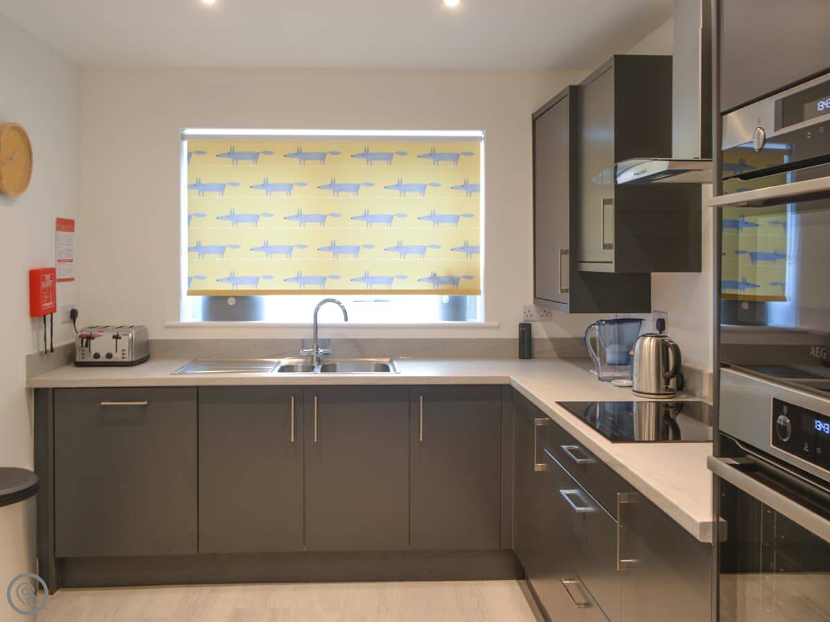 It's a practical house. The living space is open-plan. The kitchen is modern, with a dishwasher and a washing machine. We include bedding and towels. You can bring one dog.