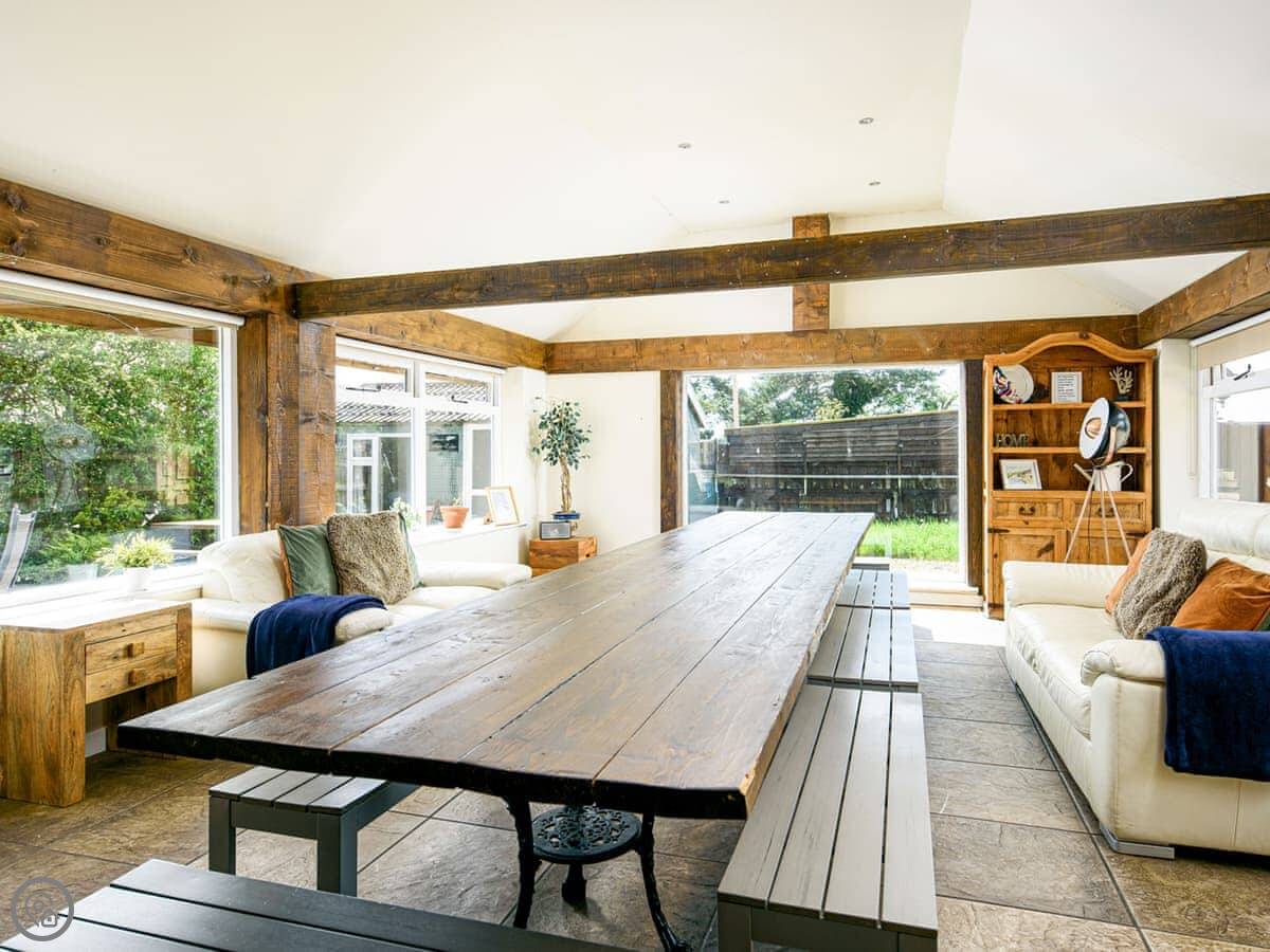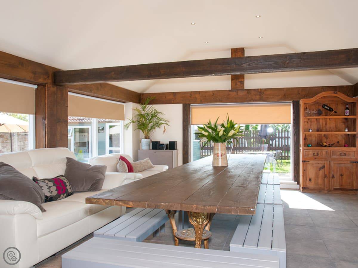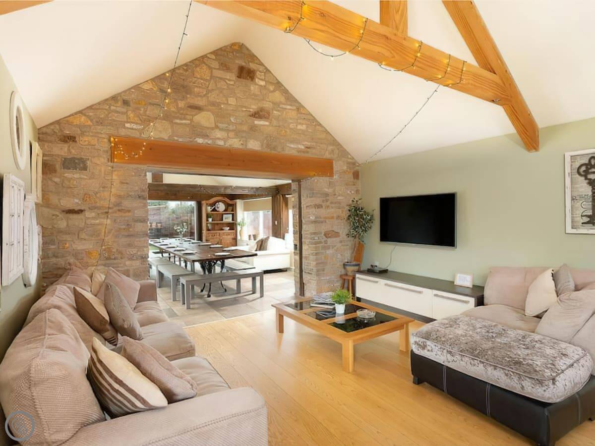 Right, so Bramley Barn. It's in Wick, just outside Bristol. It's a converted barn, so it's big. Sleeps up to 23 people, which is a lot. It's mostly one big open space downstairs for everyone to be together.