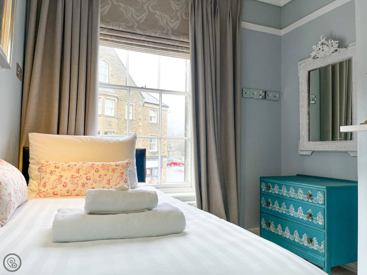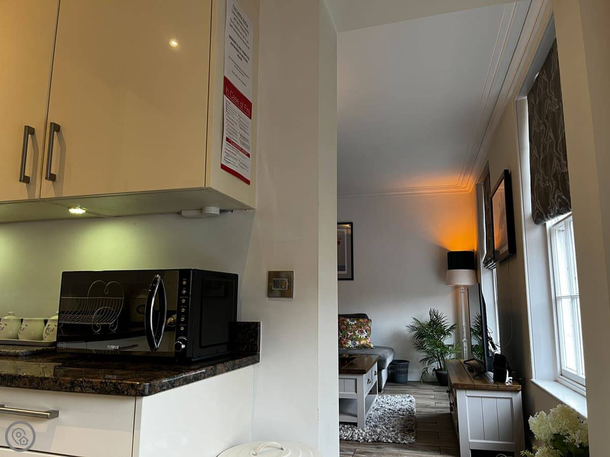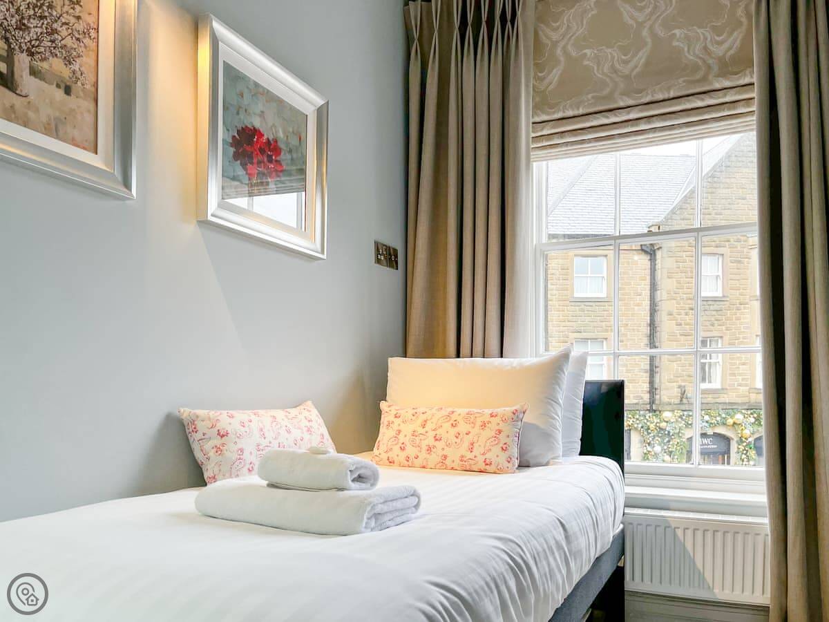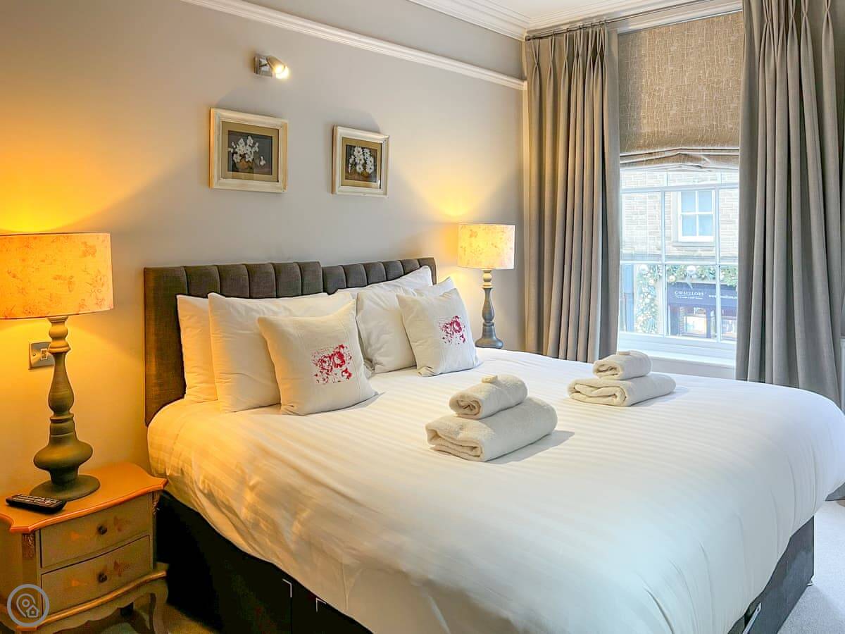 This first floor apartment is a modern space with great views of the town, it has been finished to a very good standard and is a great base to have for your Peak District get-away. There is a generously sized sitting room with L shaped sofa, which is also a double sofa bed, Smart TV and reading corner, the kitchen offers all the appliances you need to ensure you have everything you could require to cook your favourite meal or a hearty breakfast before you head out for a fun day exploring. The master bedroom is light and comfortable with a king size bed and TV, the second bedroom has a single bed with pull out bed underneath. There is a bathroom with bath and a separate shower cubicle, finished to a modern standard. There is an allocated parking bay for the property nearby.