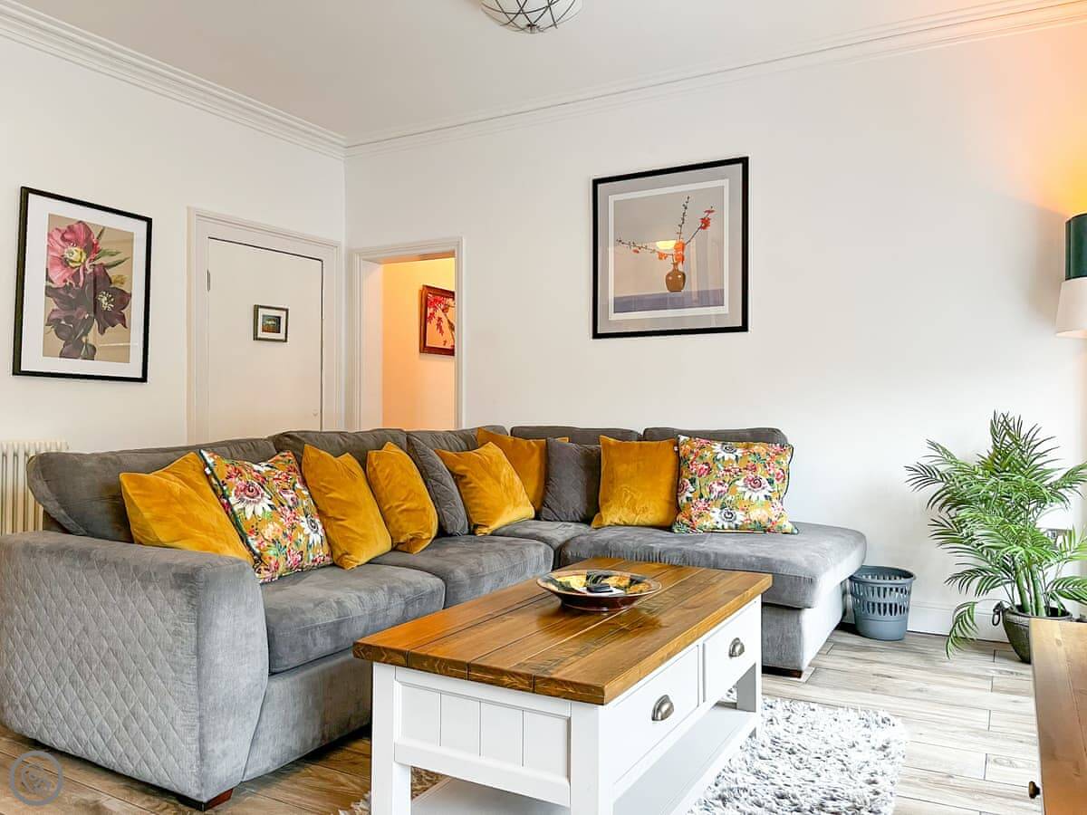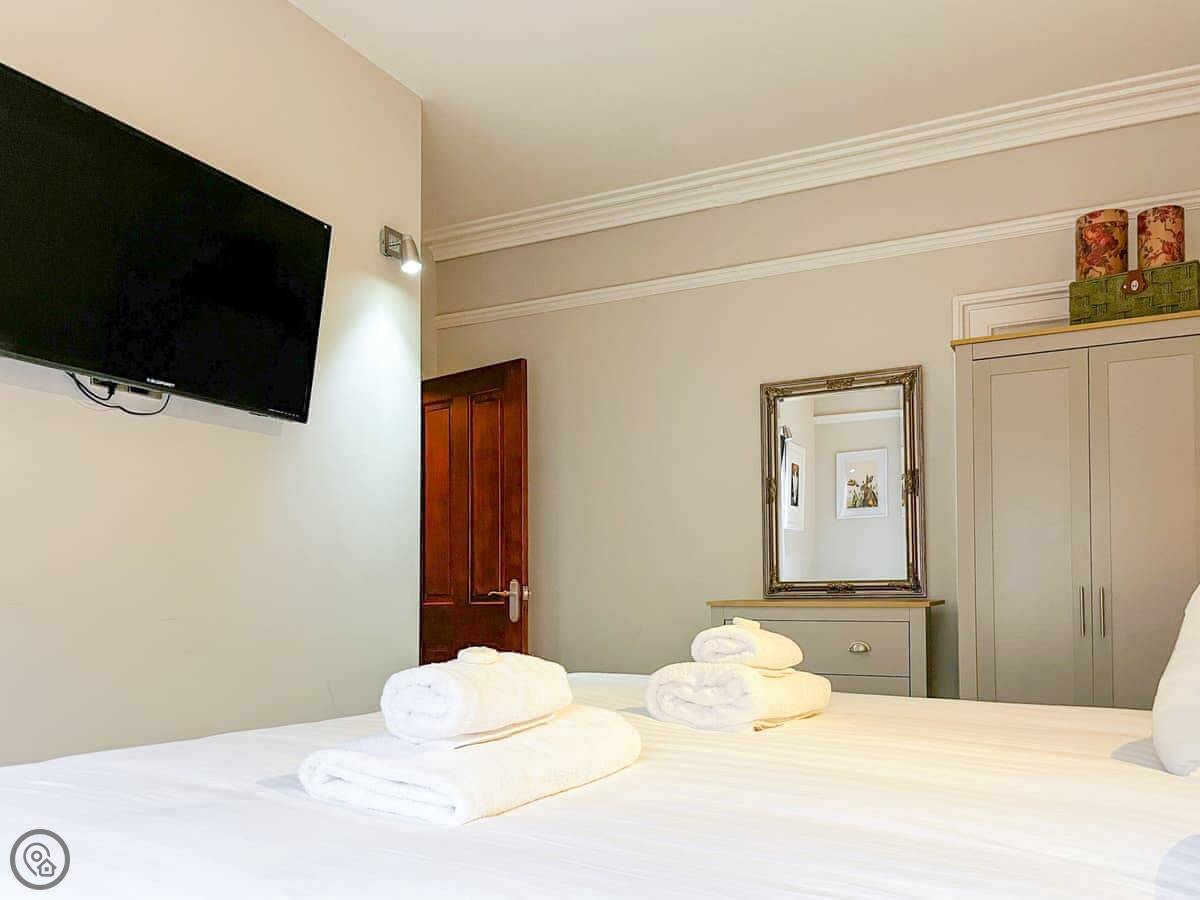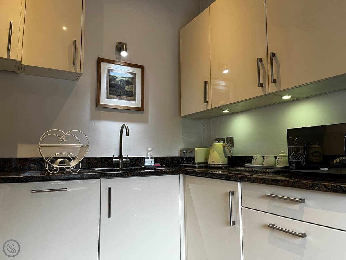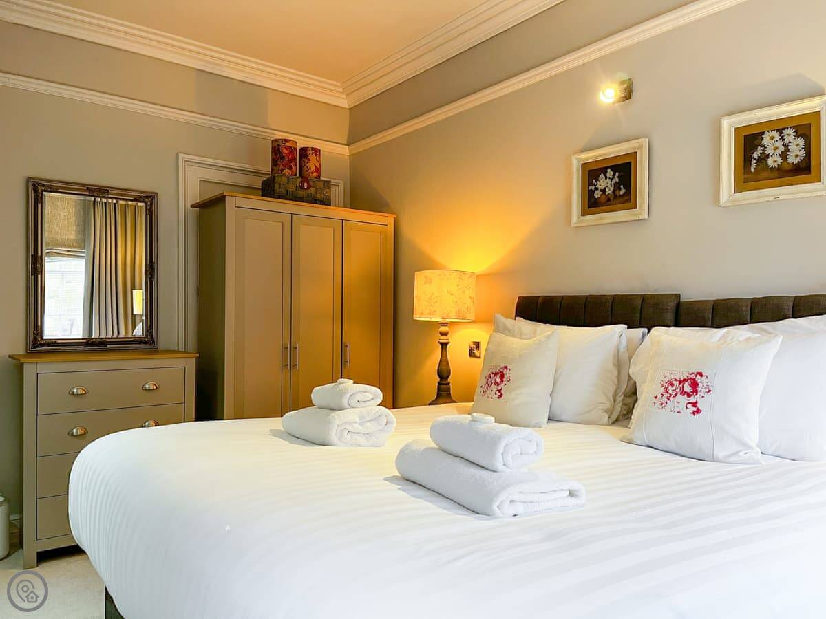 This first floor apartment is a modern space with great views of the town, it has been finished to a very good standard and is a great base to have for your Peak District get-away. There is a generously sized sitting room with L shaped sofa, which is also a double sofa bed, Smart TV and reading corner, the kitchen offers all the appliances you need to ensure you have everything you could require to cook your favourite meal or a hearty breakfast before you head out for a fun day exploring. The master bedroom is light and comfortable with a king size bed and TV, the second bedroom has a single bed with pull out bed underneath. There is a bathroom with bath and a separate shower cubicle, finished to a modern standard. There is an allocated parking bay for the property nearby.