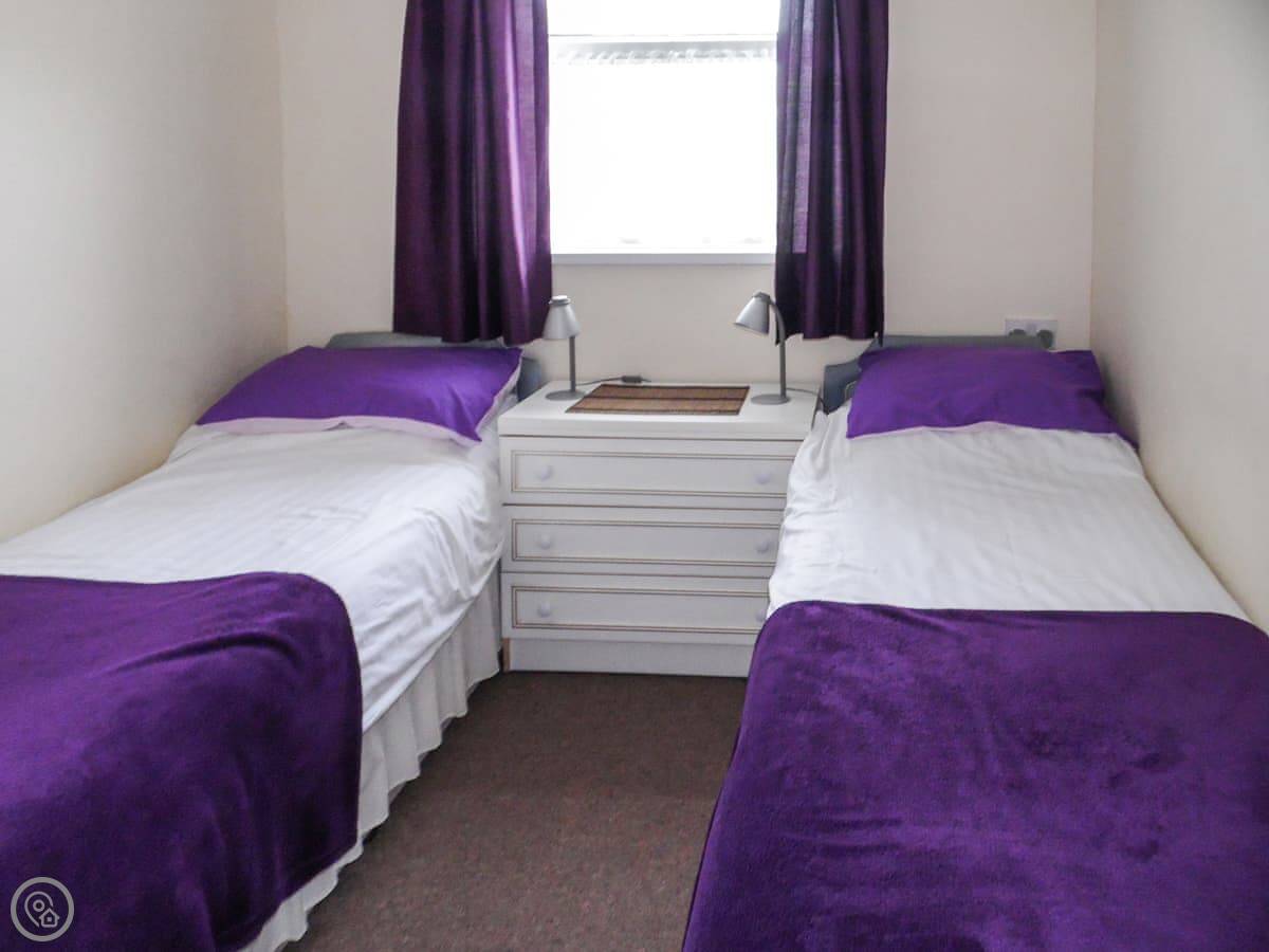 It sleeps four. Two bedrooms, one bathroom. It's got a 4 Star rating. One bedroom has a double bed, the other has twin singles. The bathroom has a bath.