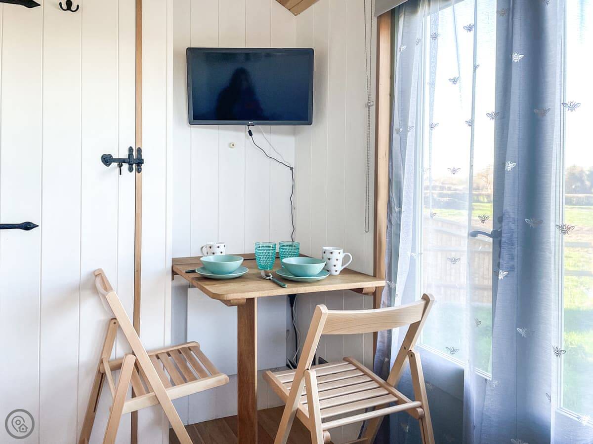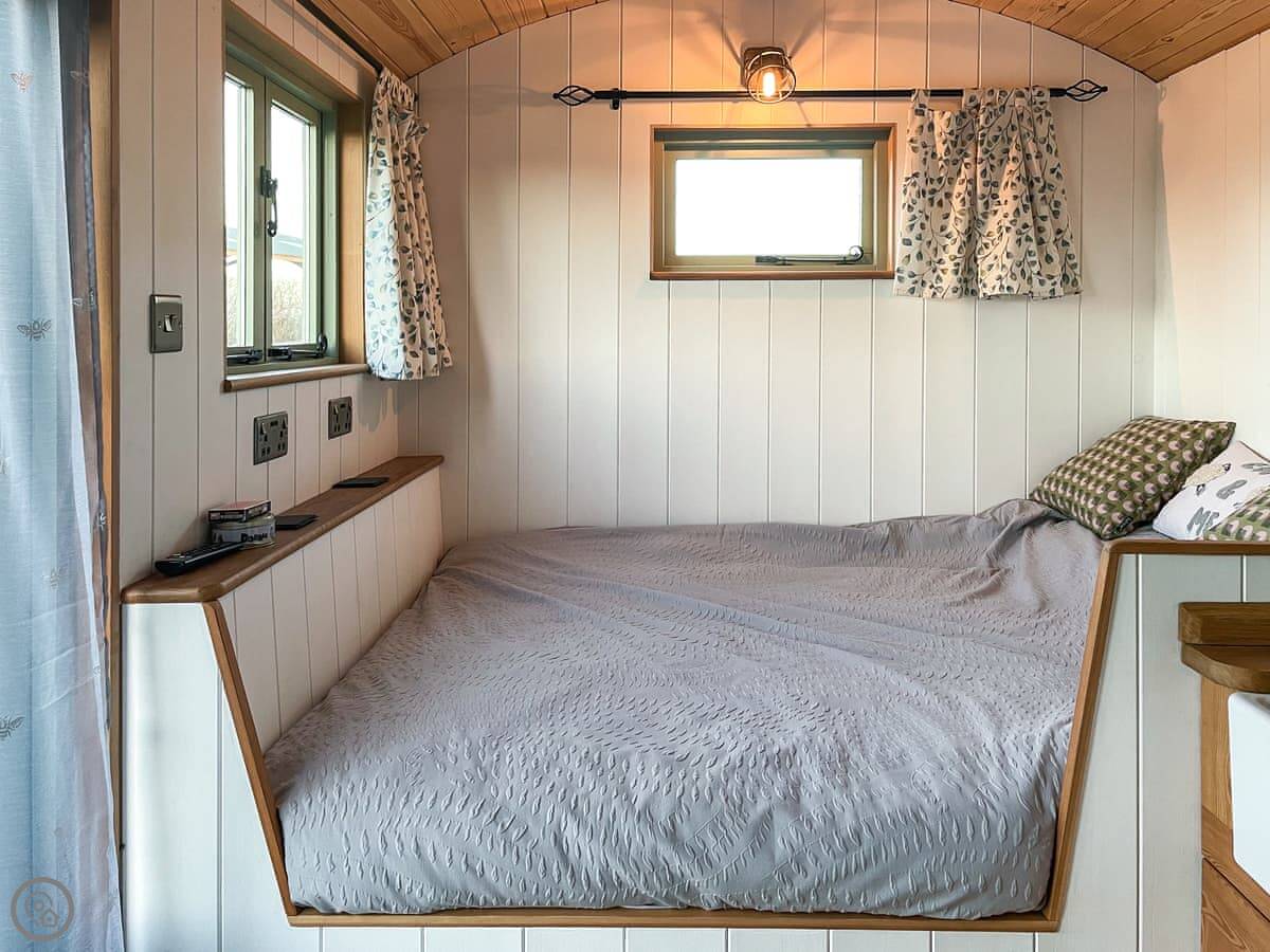 The Hut is located on a working farm and has been beautifully designed and situated on a stunning part of the owner’s land with your own fenced garden, outdoor seating and firepit. Inside this perfectly formed space with a cosy open plan living space, there is a comfy double bed that has under bed storage and views from across the fields from the bed. There is a small dining area and a lovely wooden kitchen. But for those that do not want to cook, it’s a very short stroll to the pub. Outside you will find a beautiful spot to sit and enjoy an evening drink or just admire the views.