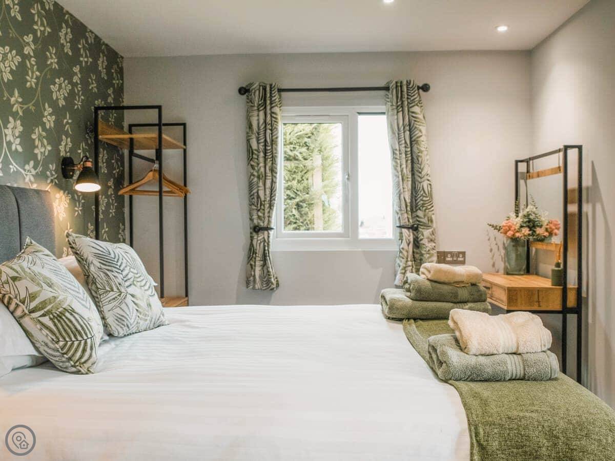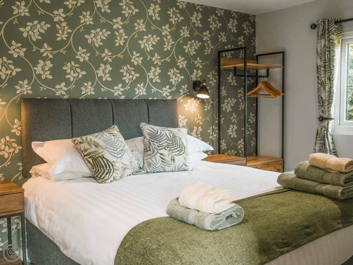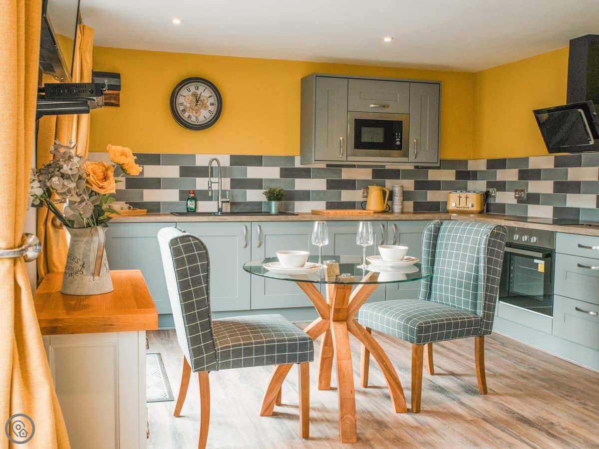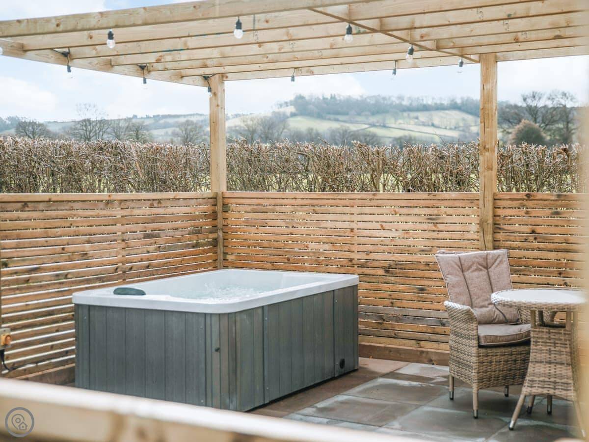 Swallow Lodge is on Merbach Hill, about five miles from Hay-on-Wye. It's a new build, finished in 2023, so everything feels fresh. It's detached and all on one level.