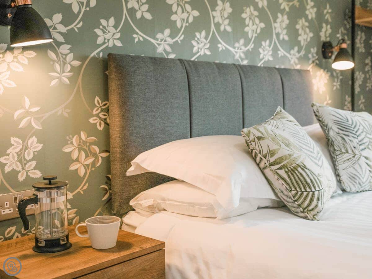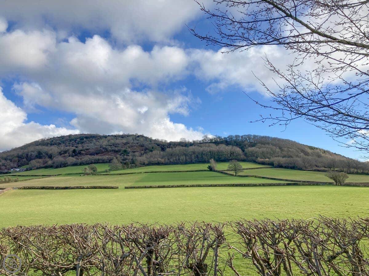 Being up on the hill, the views are good. It's quiet and rural. There's a pub called The Castlefields on the same grounds that does food, but you need to book a table.