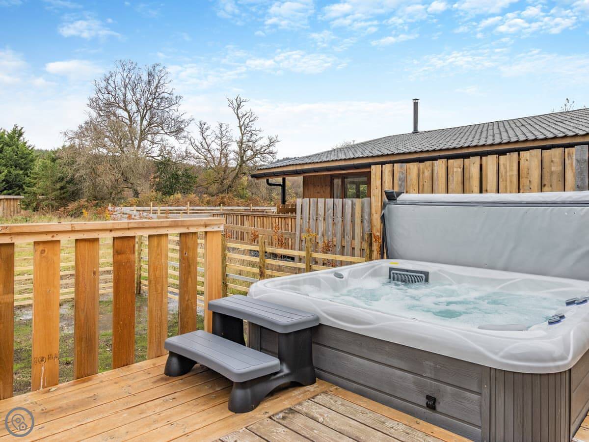 Lime Lodge has been designed specifically to be fully accessible for wheelchair users throughout, including the garden. The owner has gone to great lengths constructing this property with everything in great detail from the fabulous large wet rooms with walk-in showers to lower light switches, dining table with wheelchair access, to level access around the whole property. Aids include a mobile hoist, toilet frame, shower stool, suction grab rails, riser recliner chair, shower wheel chair and commode and electric profiling bed; the items are portable and can be moved around the property. The lodge is surrounded by a decked area which is flush with any of the door openings, leading to a seating area with gas BBQ and private hot tub, and ramp access to the lower lawned area of the garden.