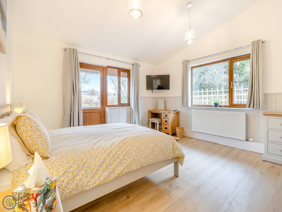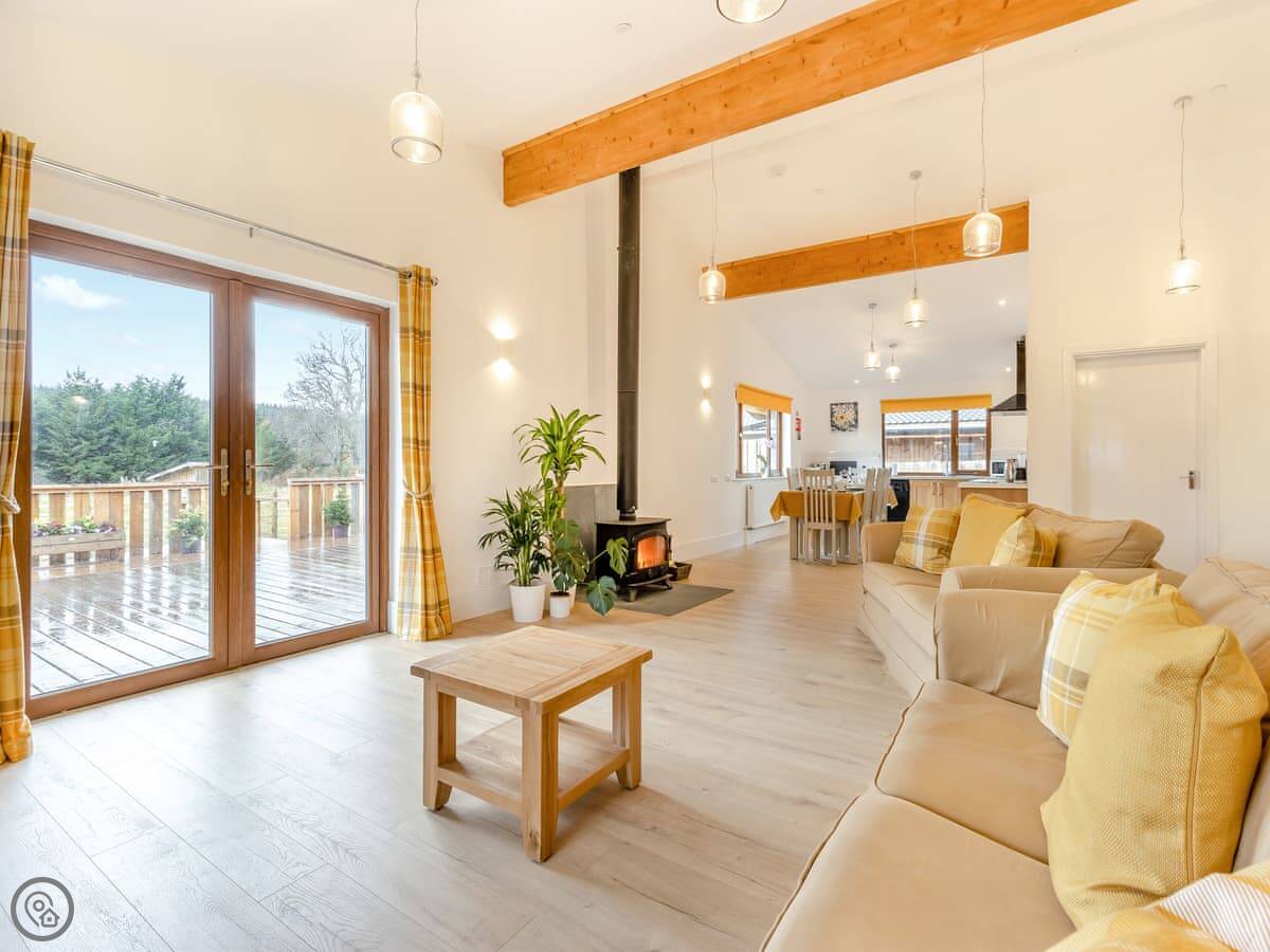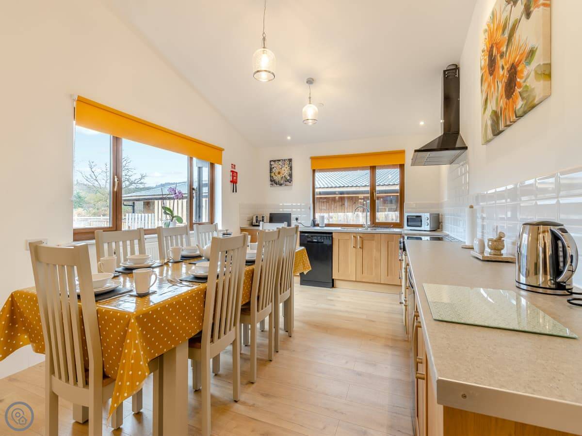 Ample space in this lodge for bigger families or groups of friends . Each bedroom has an oak framed bed and an en-suite comprising a walk-in shower; two of the bedrooms also have baths in them. The open plan living/dining and kitchen areas are perfect for socialising in whilst cooking for the family; for colder evenings the wood burner is a treat. Each room is thermostatically controlled on the radiators for that extra comfort.