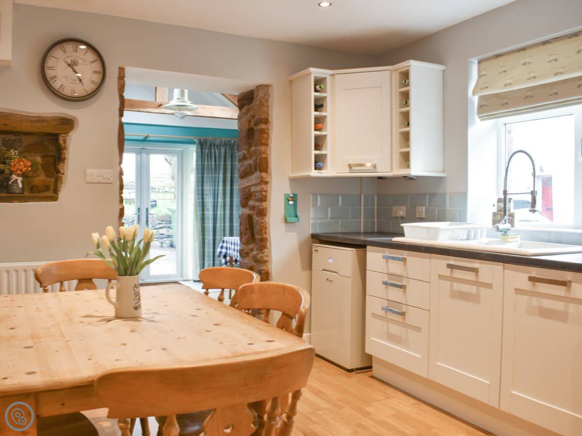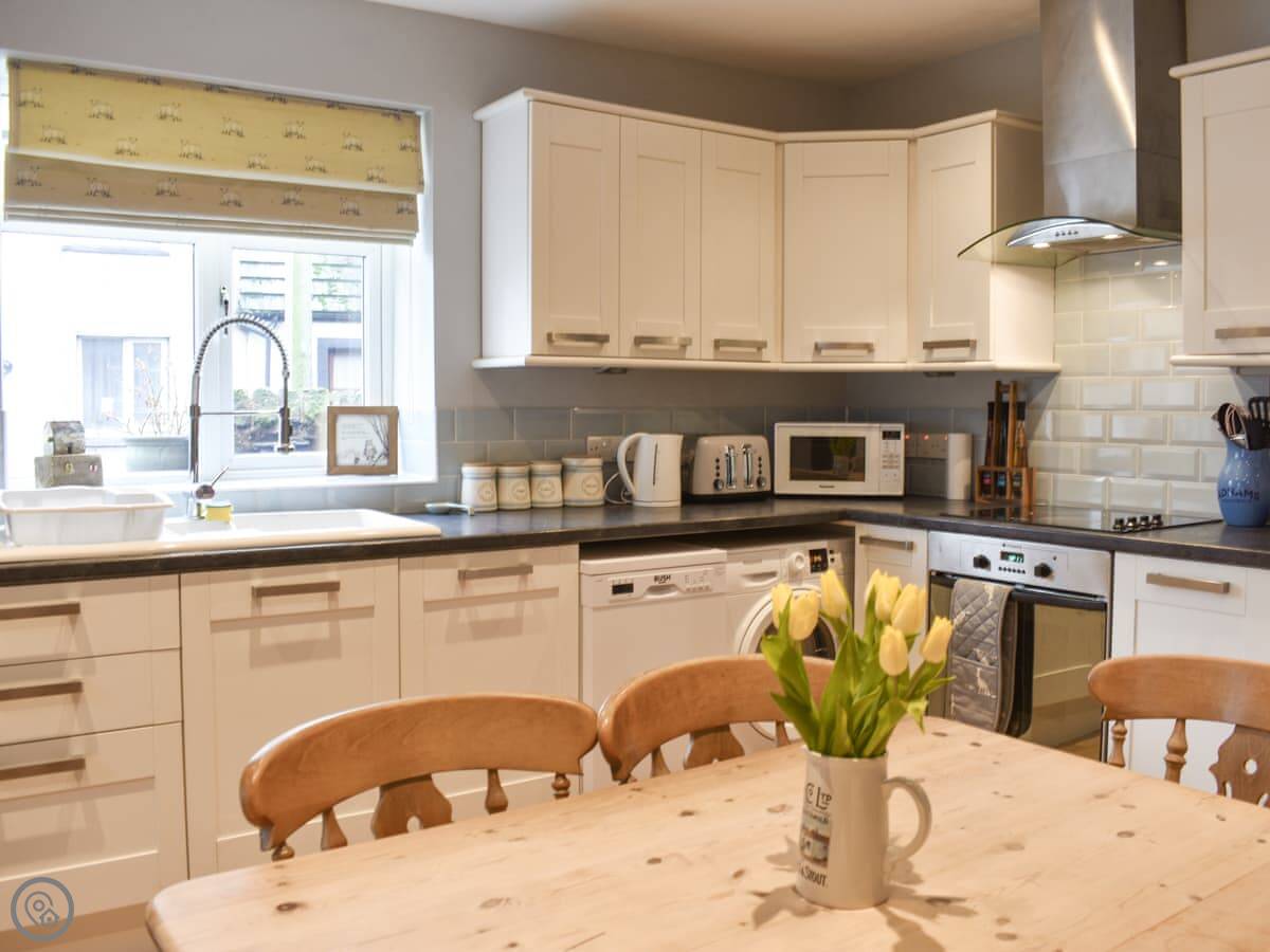 The kitchen has what you'd need, including a dishwasher and washing machine. The living room has a wood burner. Bedding and towels are included. There's parking for one car on the drive.