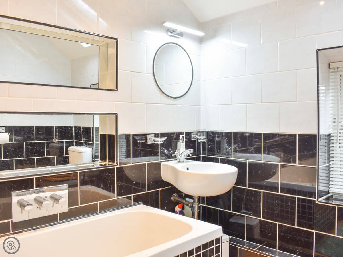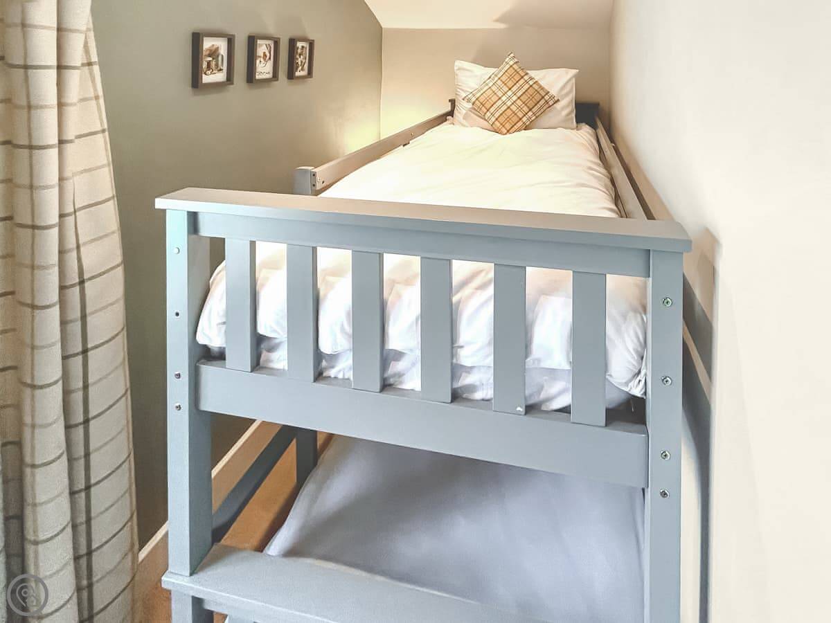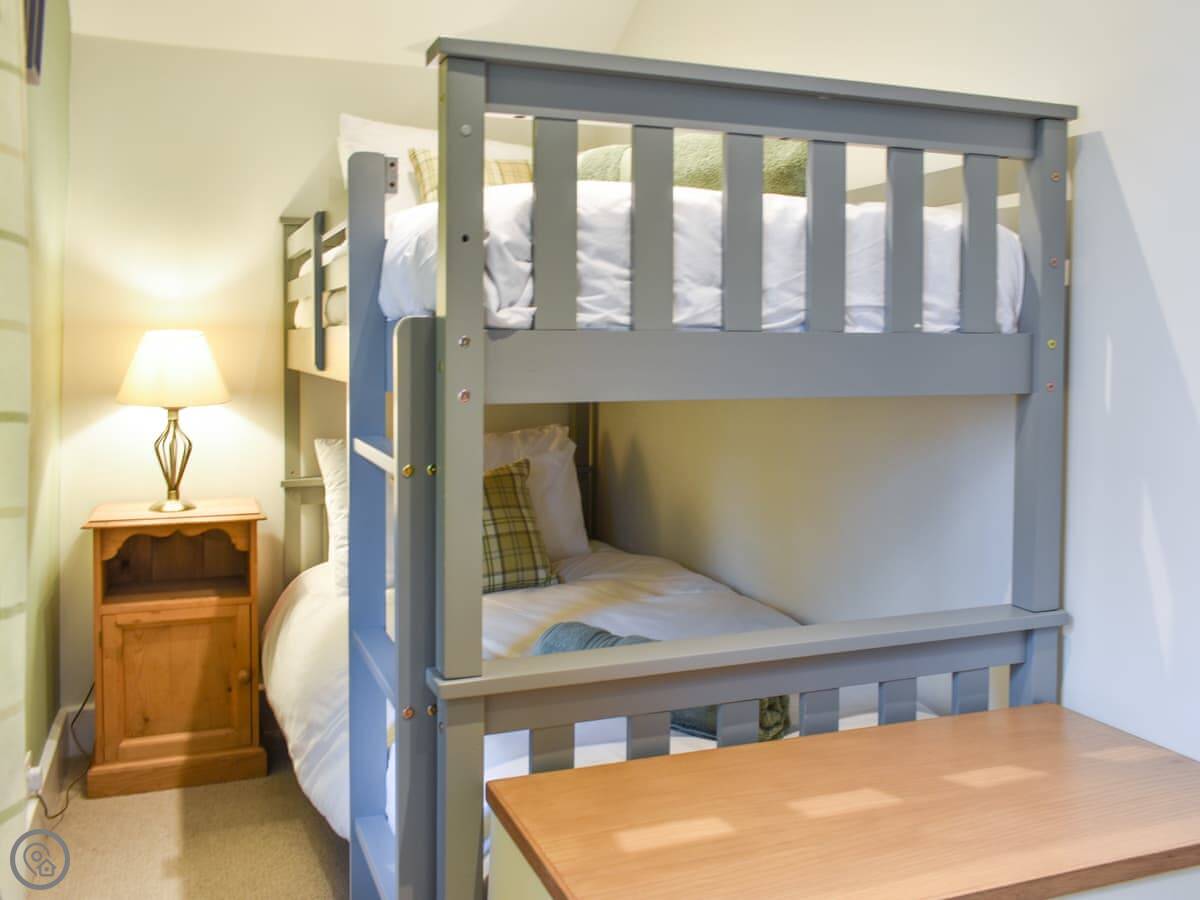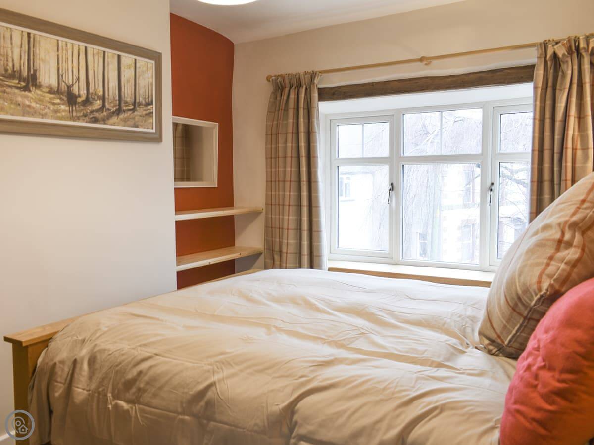 It sleeps six. Three bedrooms and one bathroom. It has a 4 Star rating, so it's comfortable and well-equipped. The stairs are standard for a cottage.