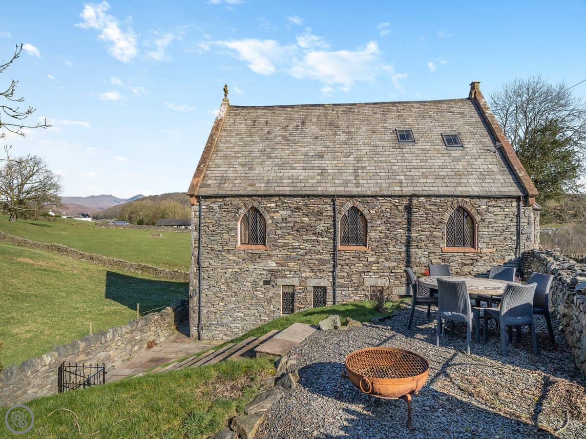 The Old Chapel is on Lowick Green, in South Lakeland. It’s a detached converted chapel, so it’s a big, solid stone building. You get the whole place and garden to yourselves.