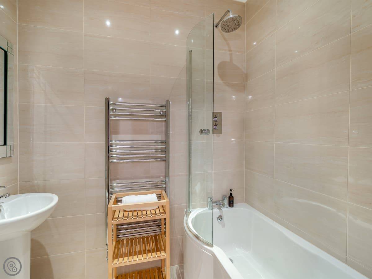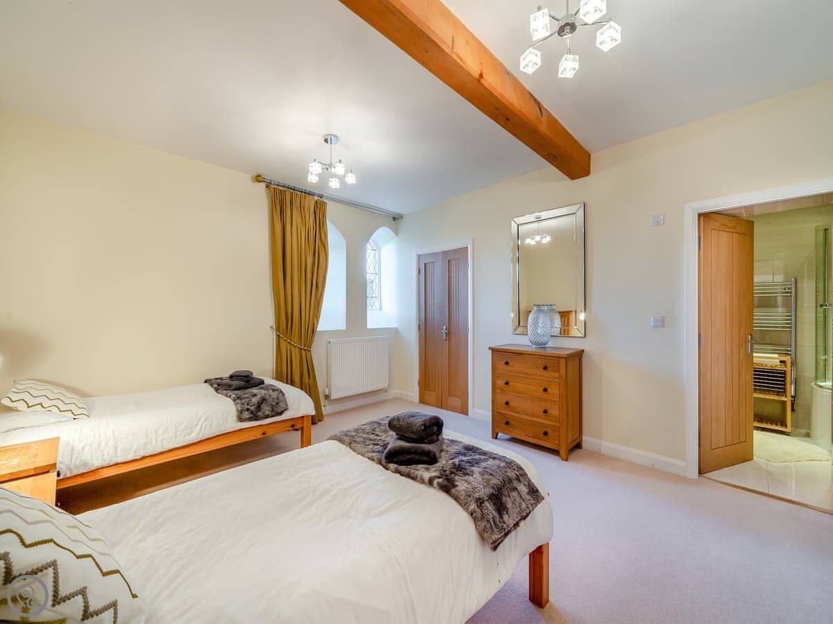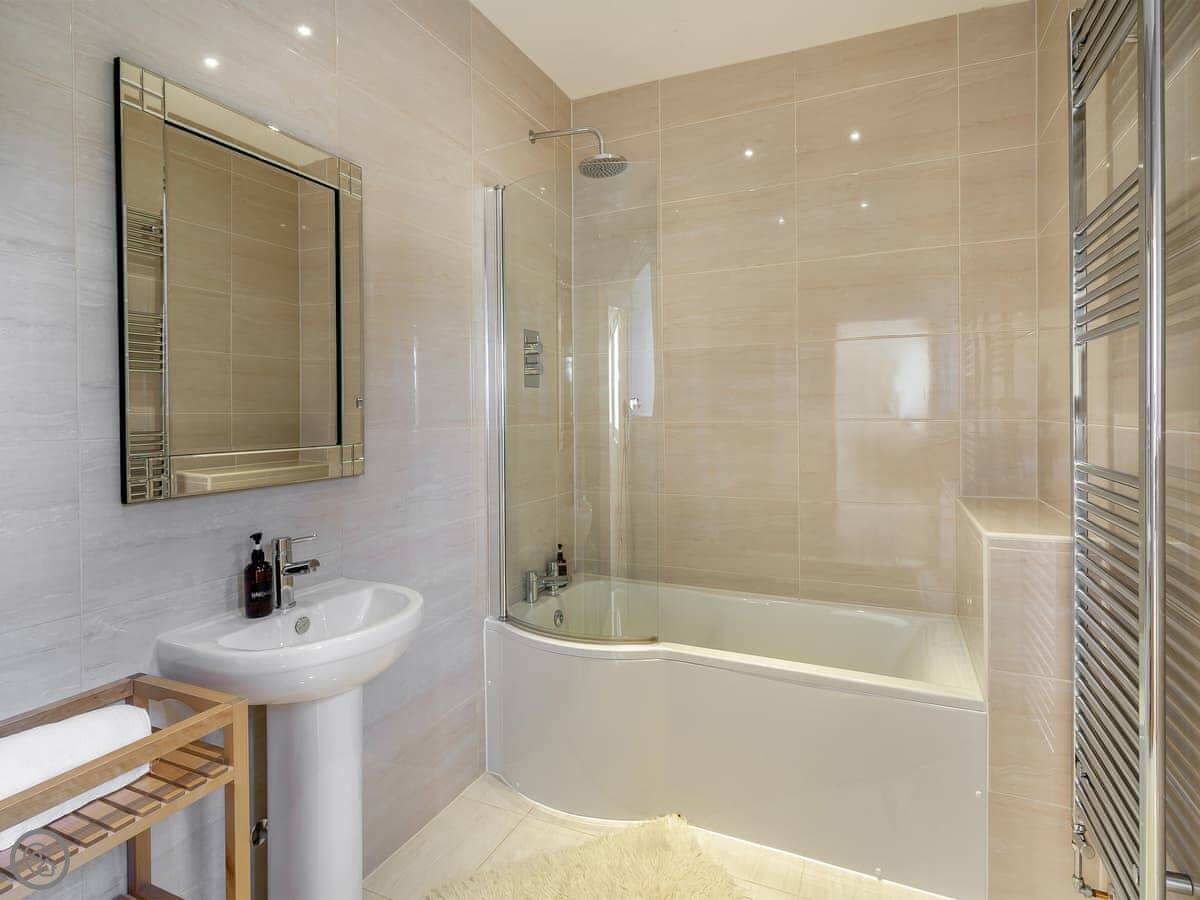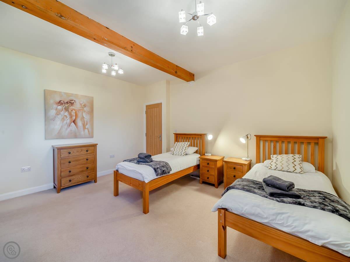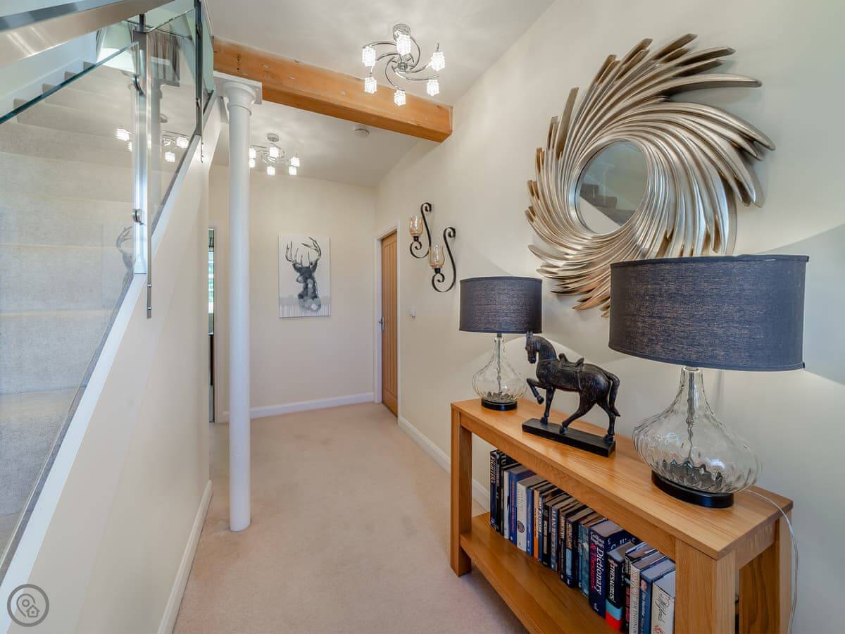 It sleeps eight in four bedrooms. Each bedroom has its own en-suite bathroom, which is really handy. The rating is 5 Star, so it’s well-equipped and finished to a high standard.