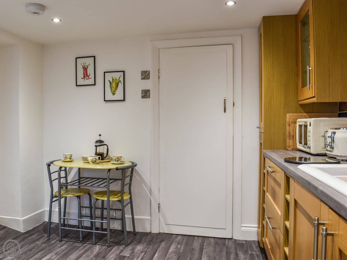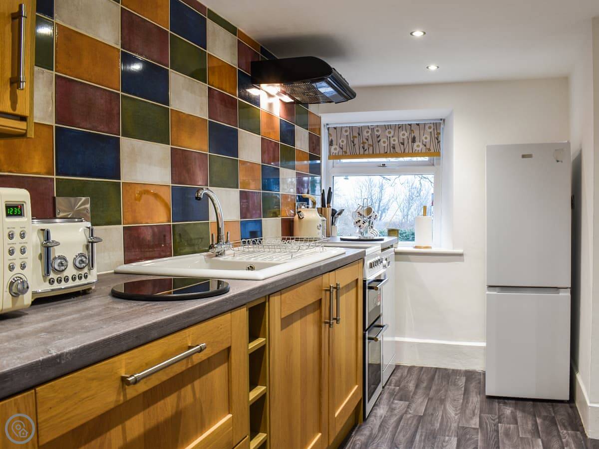 The front door leads to a vestibule with a boot rack and coat hooks, leading into the kitchen. The kitchen is bright and equipped with everything you may need, along with a small breakfast area where you can enjoy a cup of coffee in the morning. The original pantry is located off the kitchen providing extra storage, a washing machine, and an iron and ironing board. Adjacent to the kitchen is the living room where you will find a cosy sofa and armchair, plus a dining table and chairs. This room also benefits from a wood burner, TV, and DVD player. On the first floor are two spacious bedrooms, one double and the other a twin, both beautifully furnished, with ample storage. The contemporary bathroom is also on this floor and features a large walk-in shower, sink with vanity unit, mirror, toilet, and heated towel rail. We recommend settling in and then popping next door to a hotel where you can sample their traditional beers, excellent wines and homemade food. A restaurant serving tasty food and drink is also within walking distance.