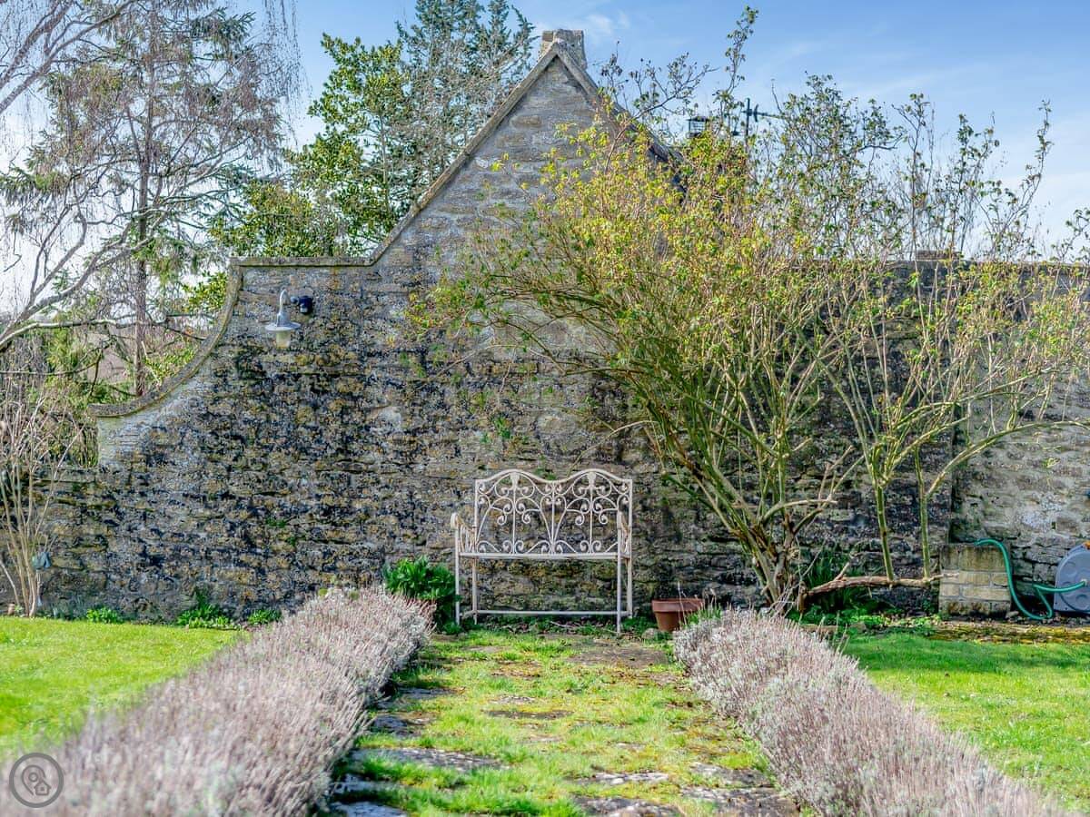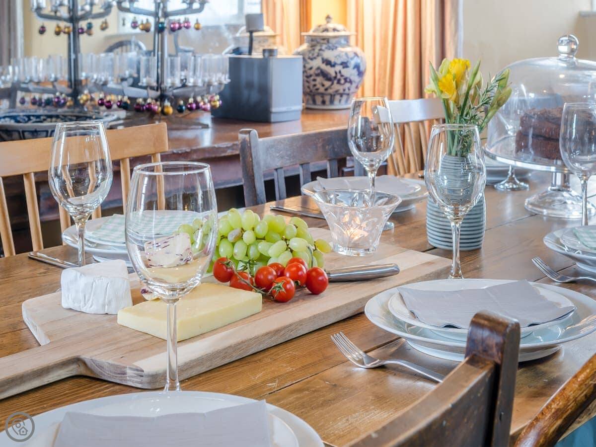 It's got a five star rating, which means it's well equipped. The kitchen is big, handmade, and has everything for a group that size. You've got a washer and dryer, a dishwasher. The garden's enclosed with a lawn, a patio with lots of seating, and a BBQ.