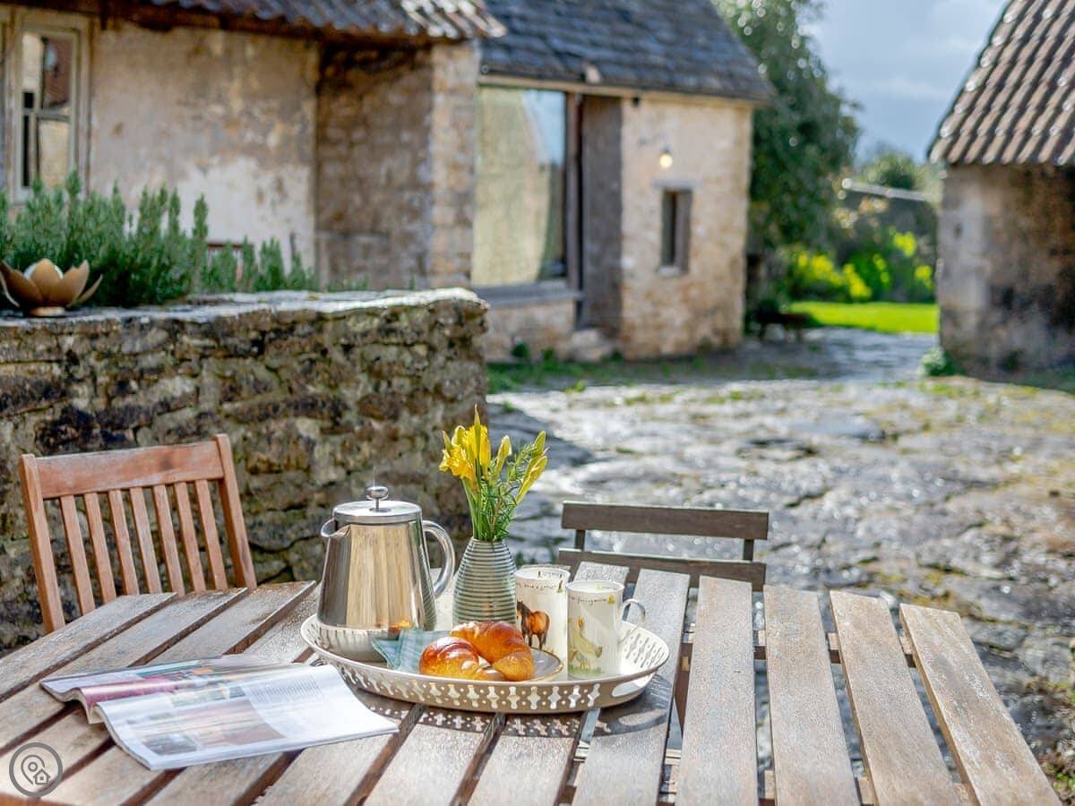 The village has a pub, The George Inn, right next door. It's very historic and serves food. Bath is about fifteen minutes by car. That's your main destination for shopping, restaurants, and the Roman Baths.