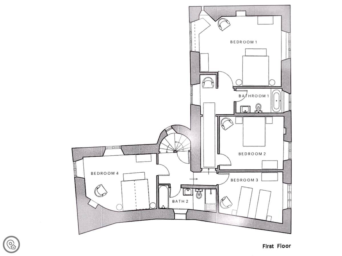 The Malthouse is a conversion of an old building in Norton St Philip. It's big. It sleeps fourteen across seven bedrooms, with four bathrooms.