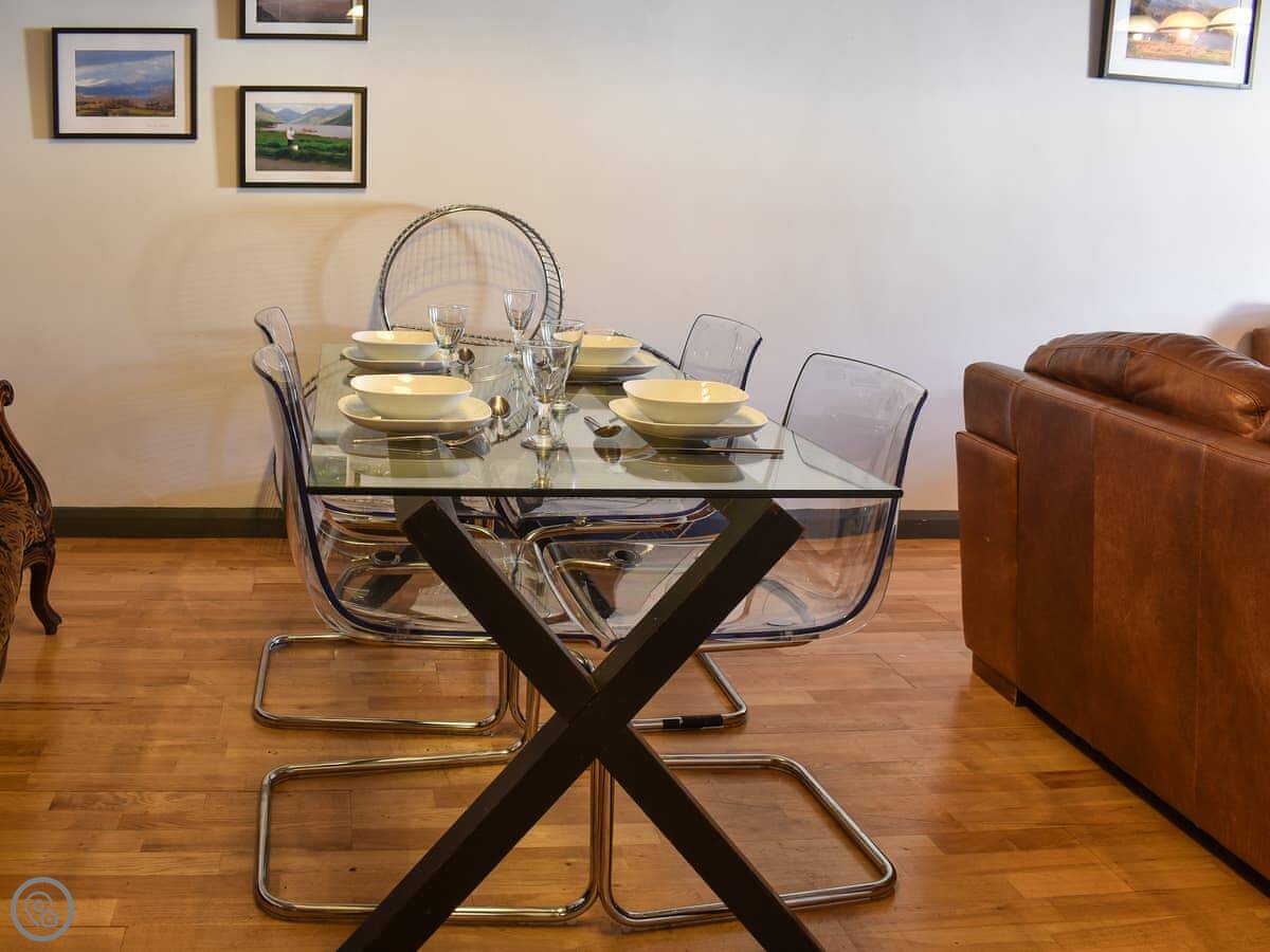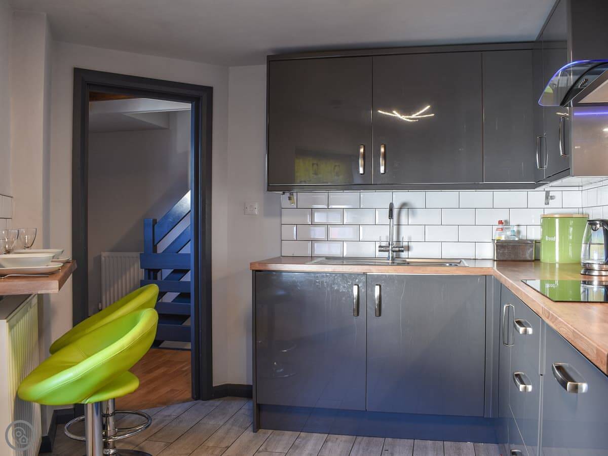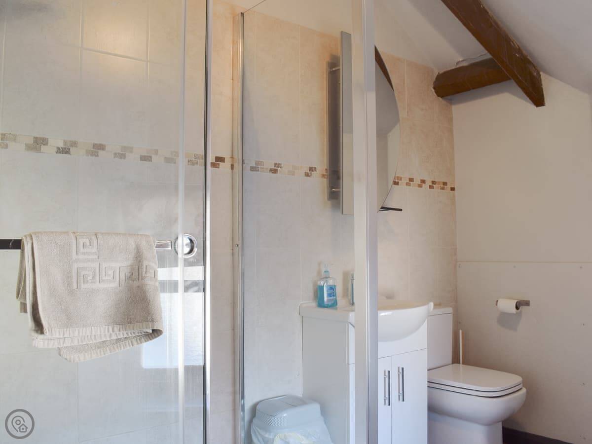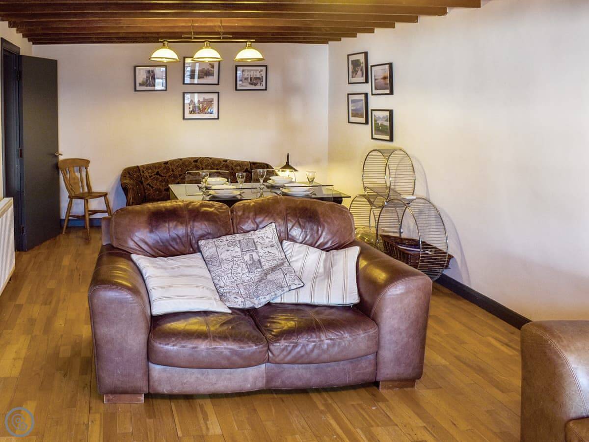 The front door opens into a small hallway with a toilet, ideal for kicking off walking boots and coats, then you climb the stairs to the living accommodation. The living/dining area is spacious and atmospheric with exposed wooden beams. There is a modern kitchen with all the amenities you need to prepare a picnic or a Sunday roast. On the second floor are two double bedrooms, and the accommodation is completed by a family shower room.