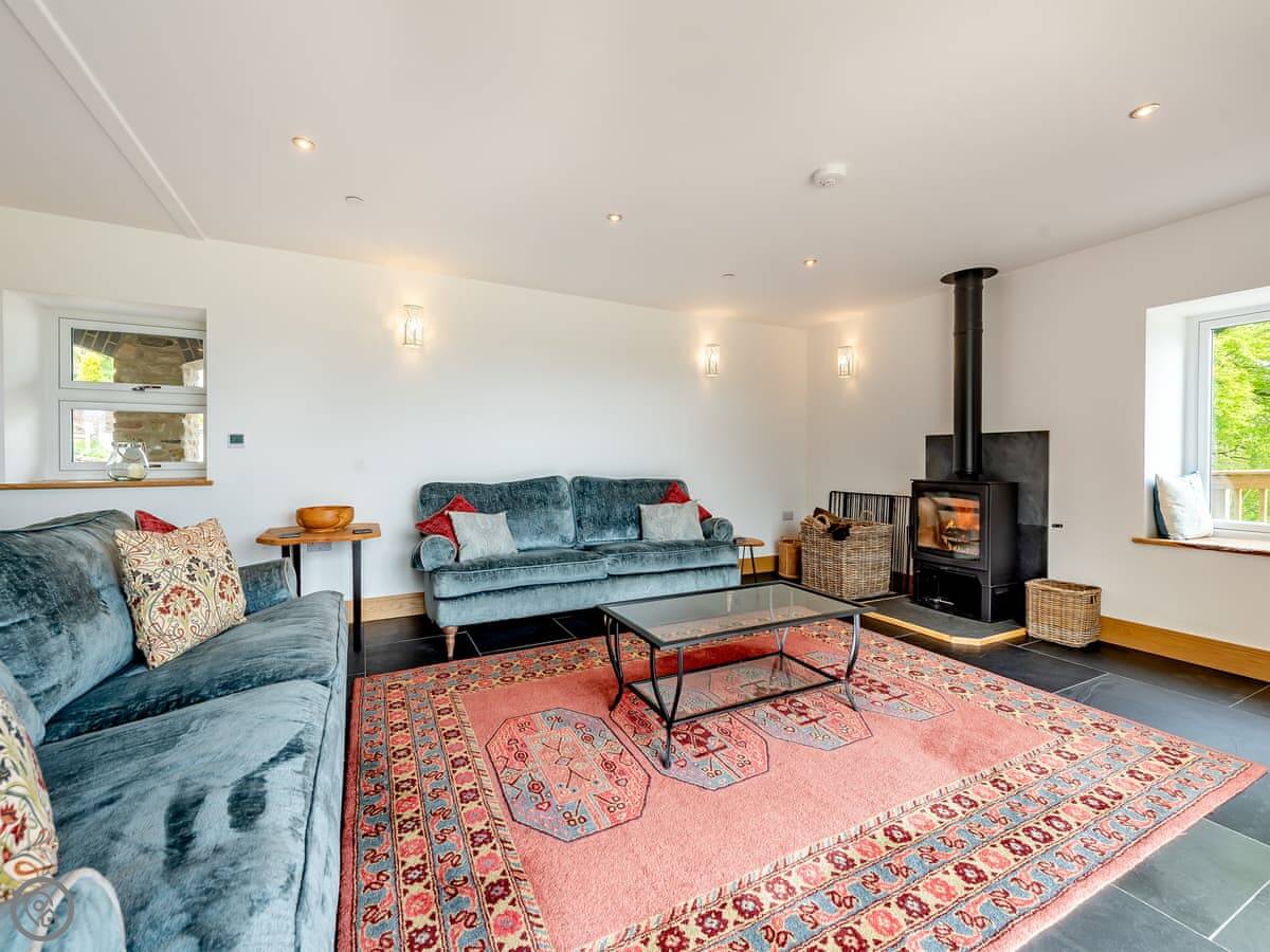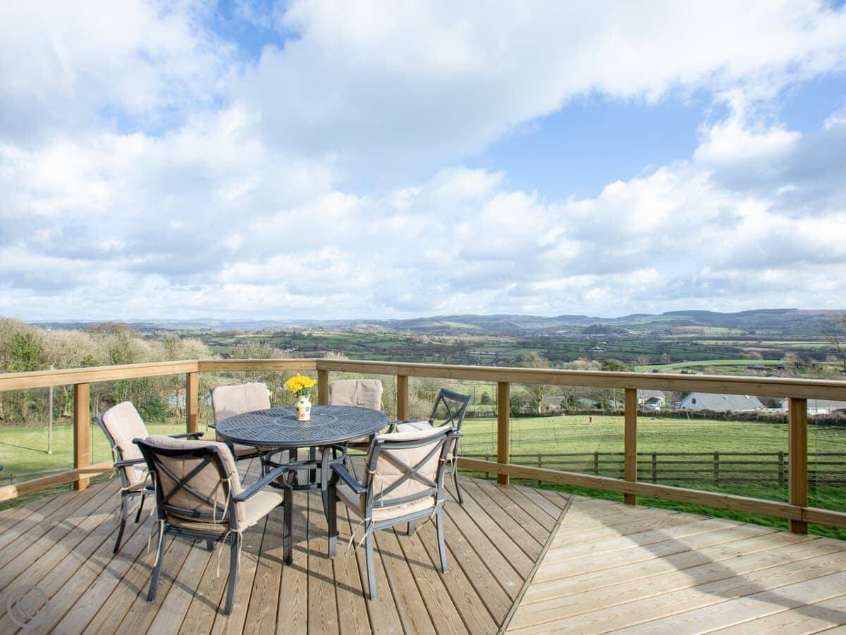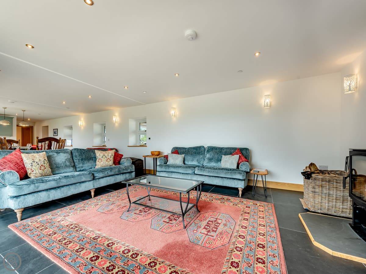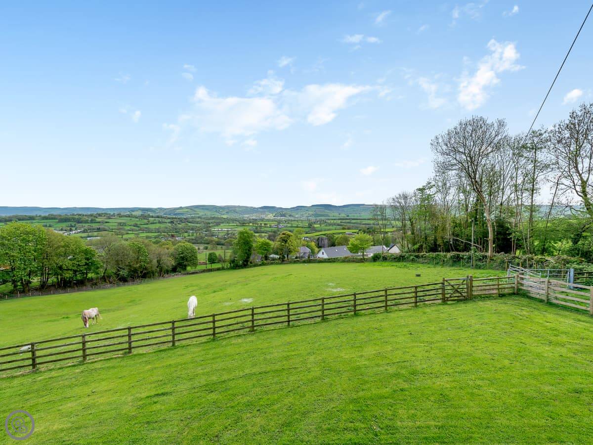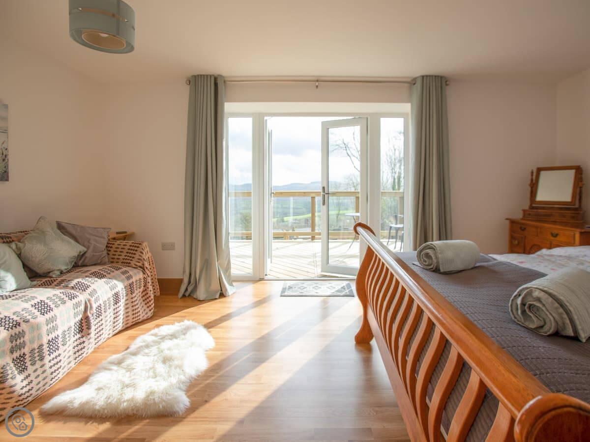 This is Y Beudy. It's in Llanwenog, which is a hamlet in Carmarthenshire. It's a barn we converted. It's detached and sits on the edge of the Teifi Valley, so you get a clear view right down the valley from the main living area and the terrace.