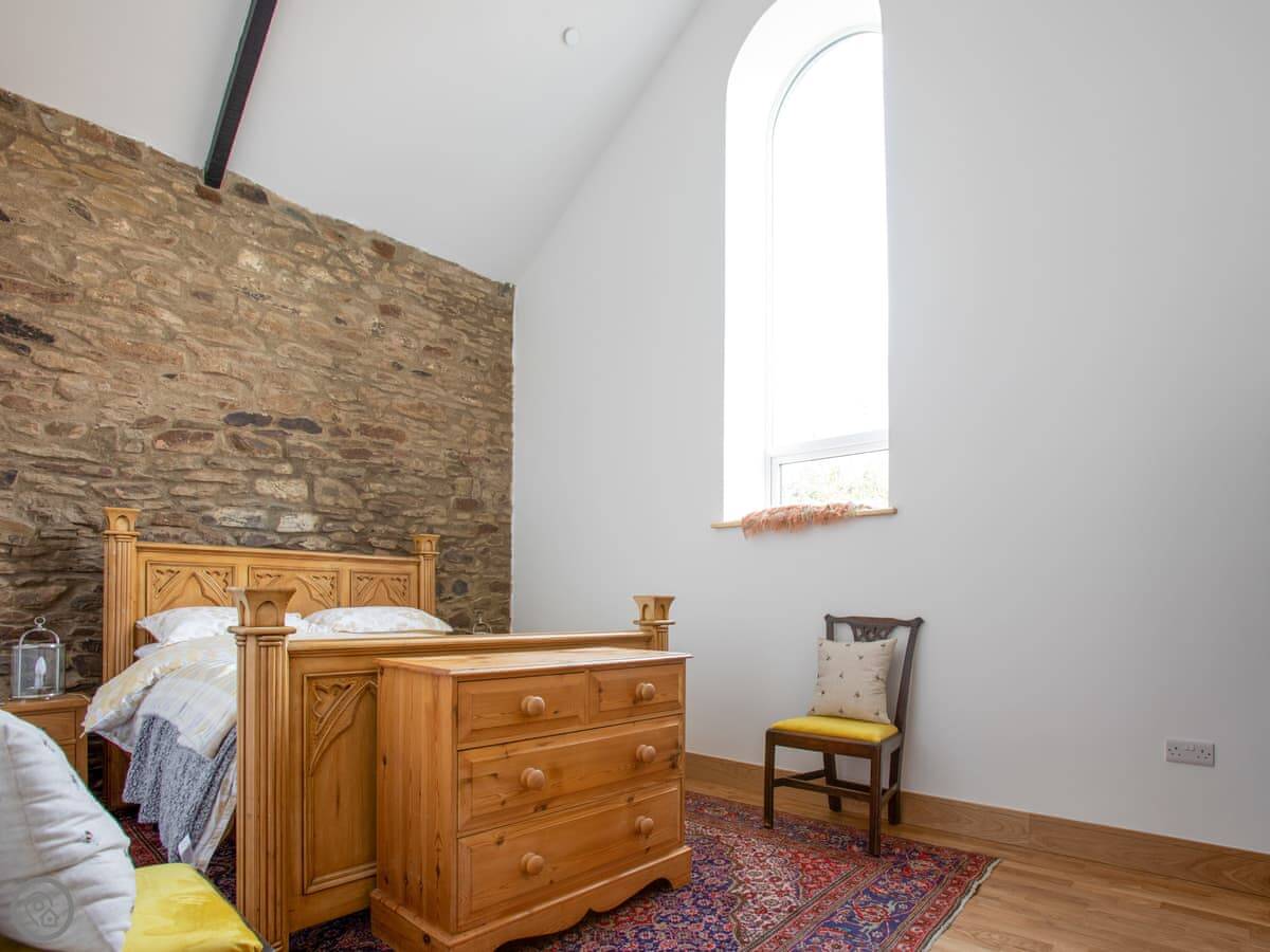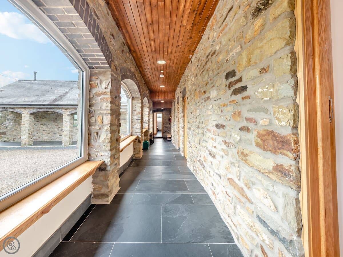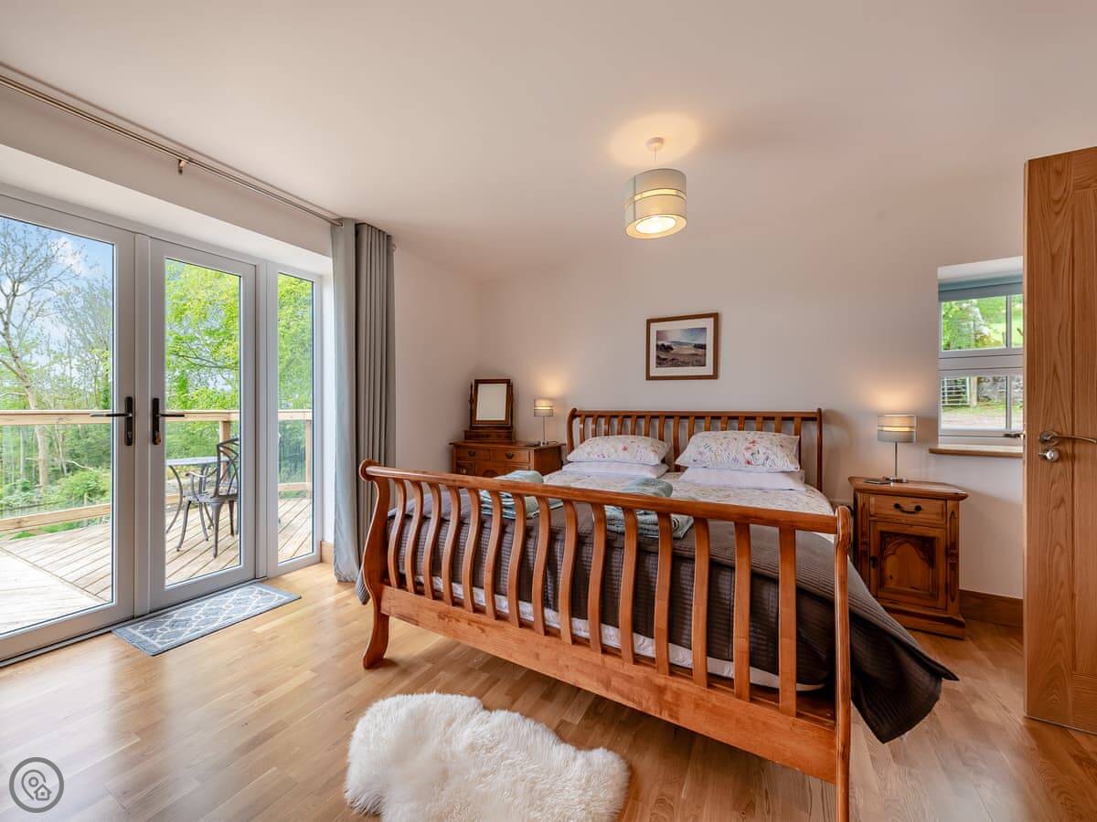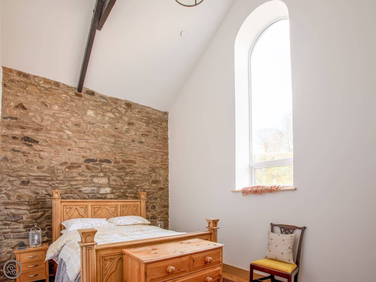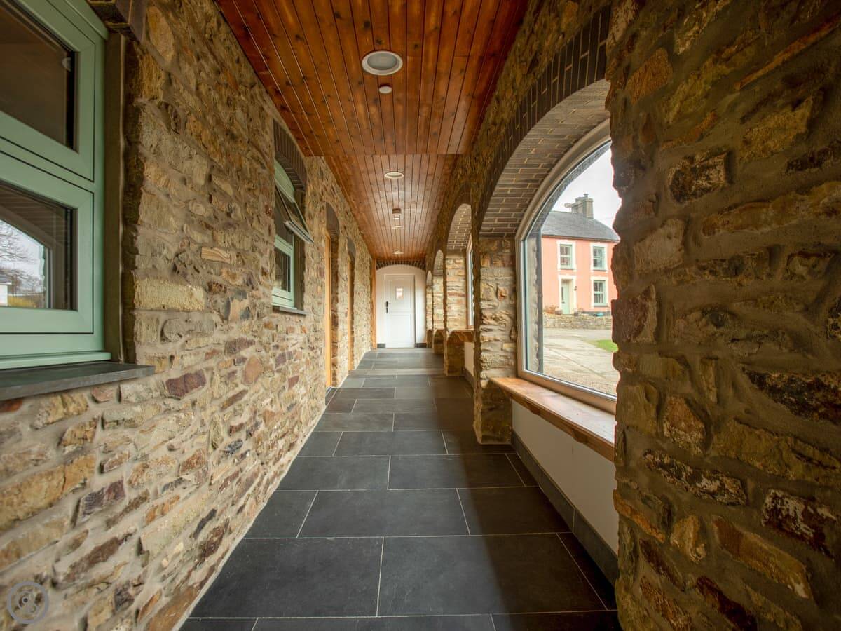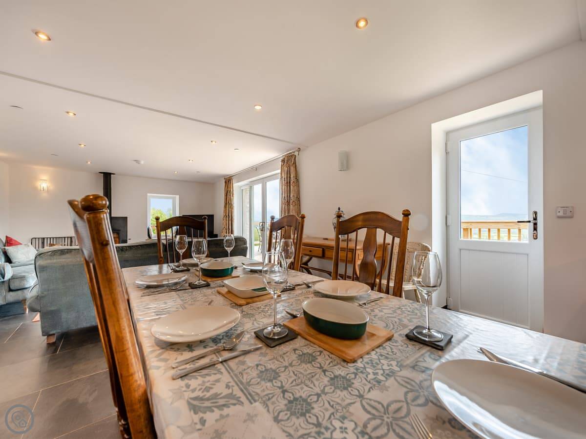 This is Y Beudy. It's in Llanwenog, which is a hamlet in Carmarthenshire. It's a barn we converted. It's detached and sits on the edge of the Teifi Valley, so you get a clear view right down the valley from the main living area and the terrace.