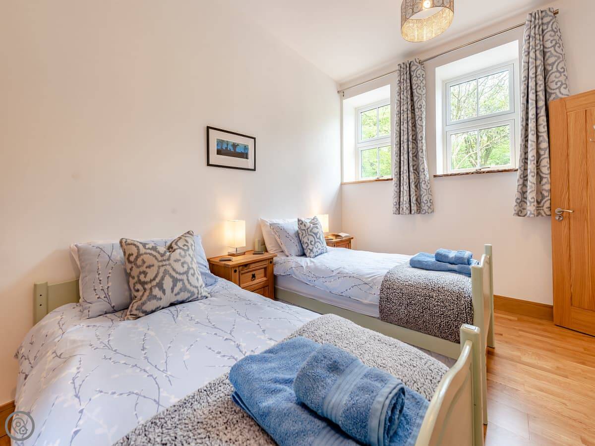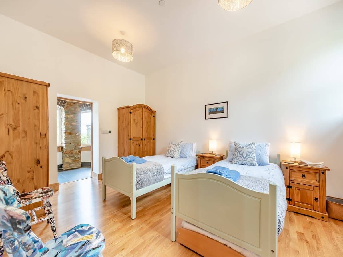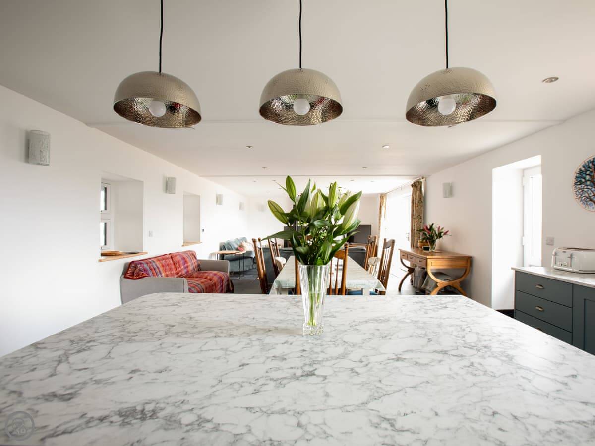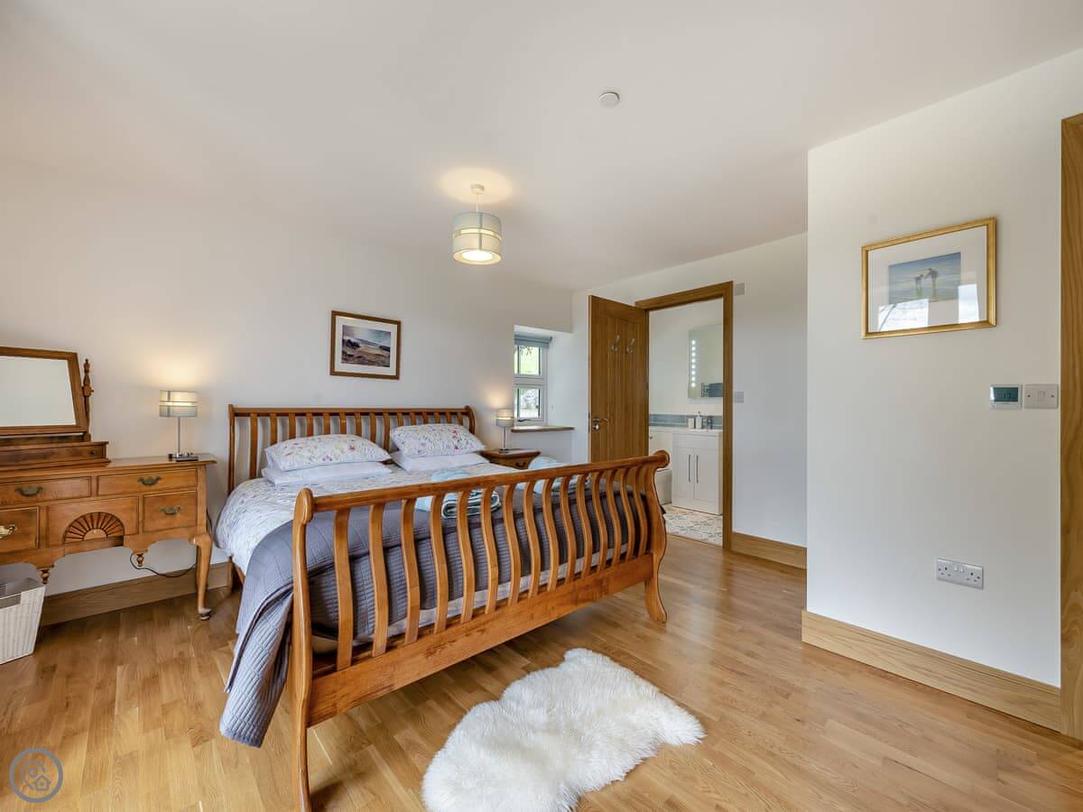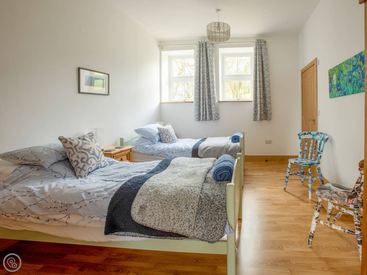 This is Y Beudy. It's in Llanwenog, which is a hamlet in Carmarthenshire. It's a barn we converted. It's detached and sits on the edge of the Teifi Valley, so you get a clear view right down the valley from the main living area and the terrace.