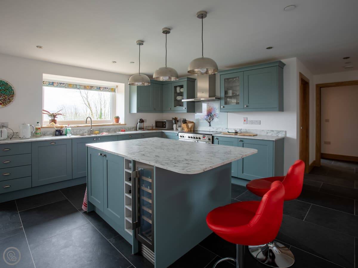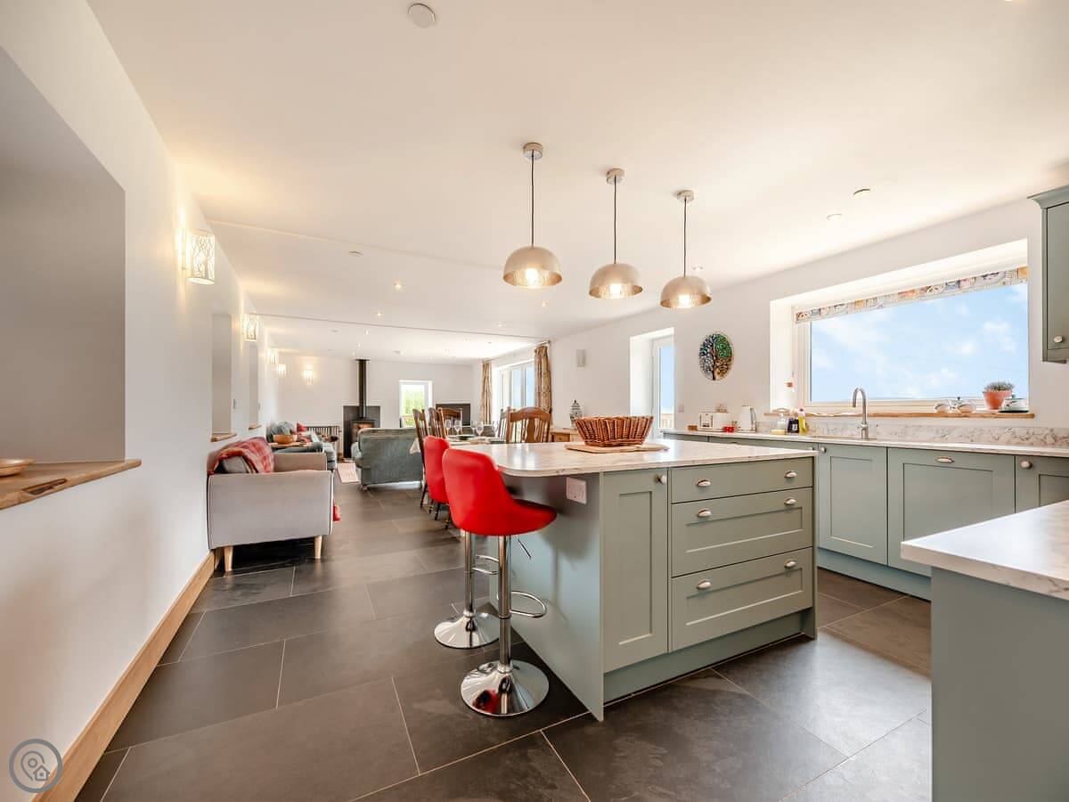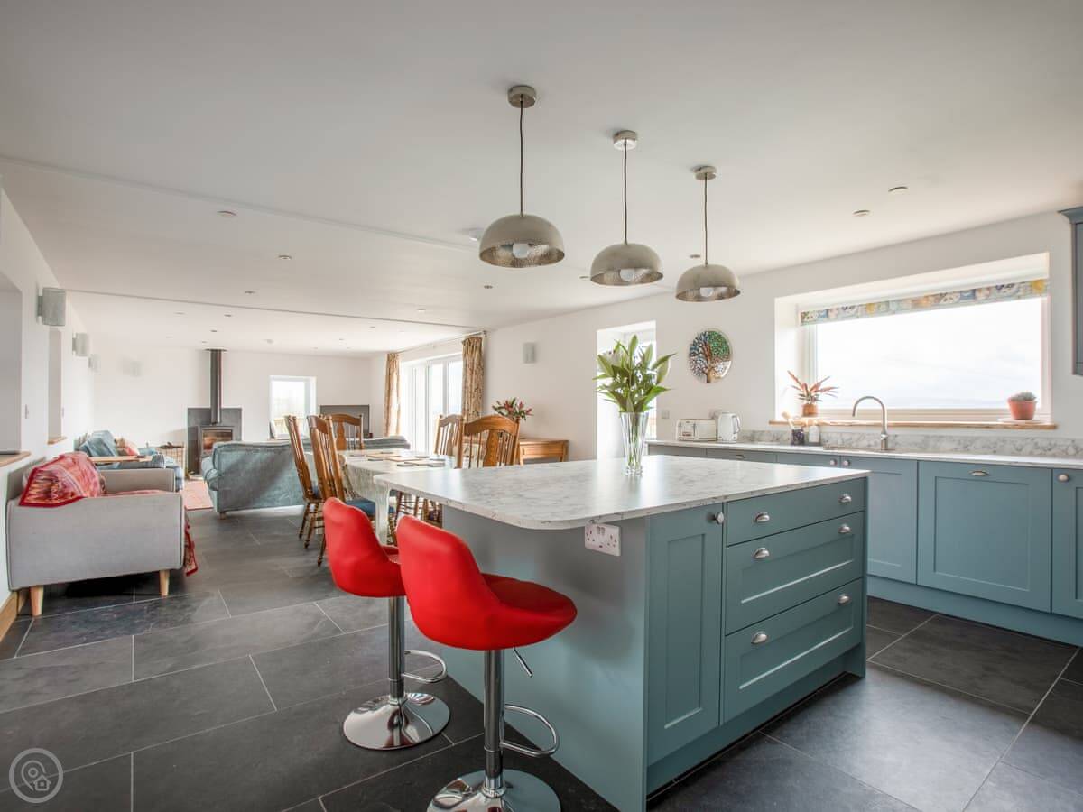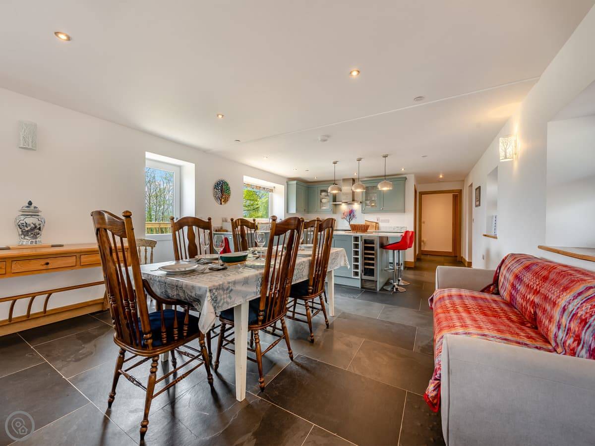 Inside it's all one big open space: kitchen, dining, and sitting area together. There's a wood burner for cooler evenings. The kitchen has a dishwasher and washing machine. All bedding and towels are included. We've also got an electric vehicle charger on site now.