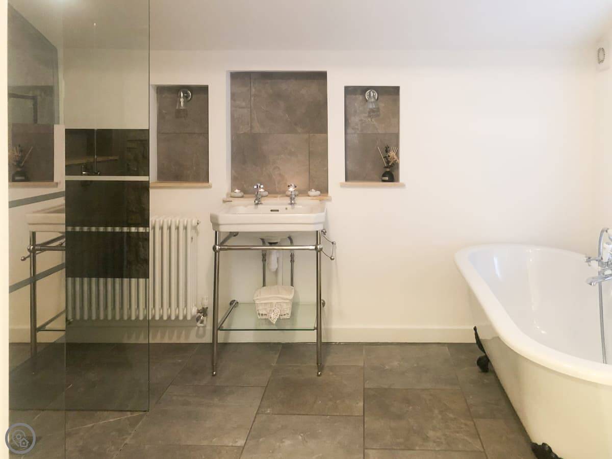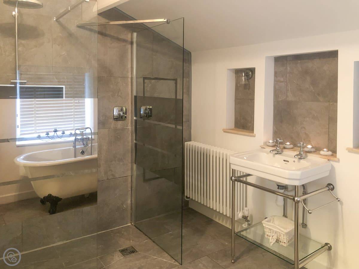It sleeps six people. There are three bedrooms upstairs. There's one bathroom with a walk in shower over the bath. It has a four star rating. It's comfortable and clean.