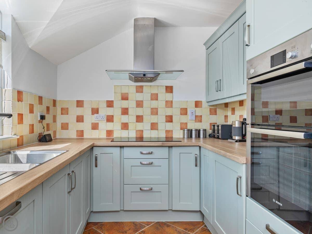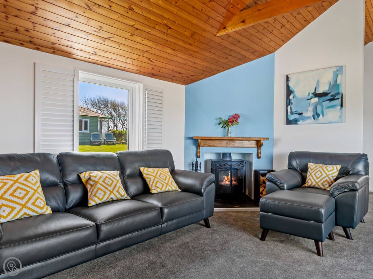 Inside, it’s got what you’d expect. Washing machine, dishwasher, TV, WiFi. There’s a wood burner in the living room. We leave some logs to get you started.