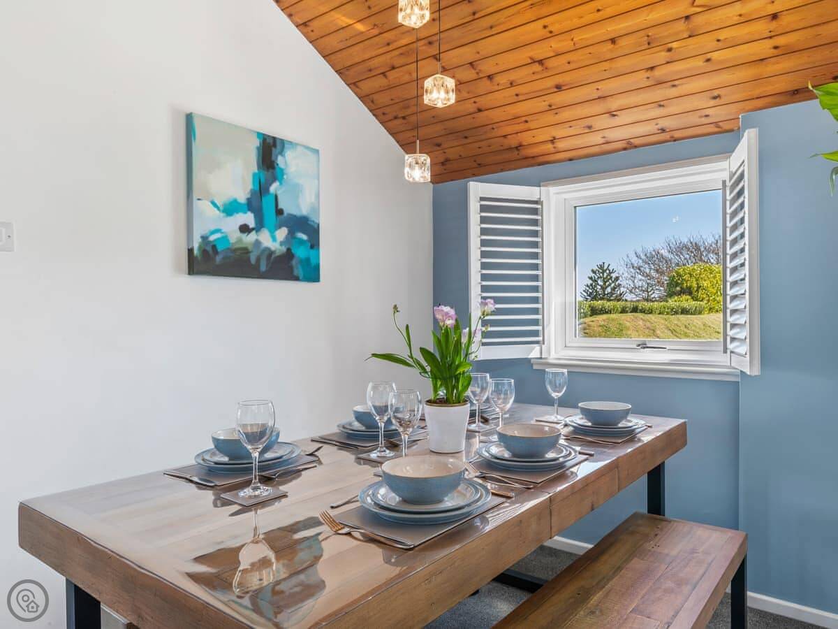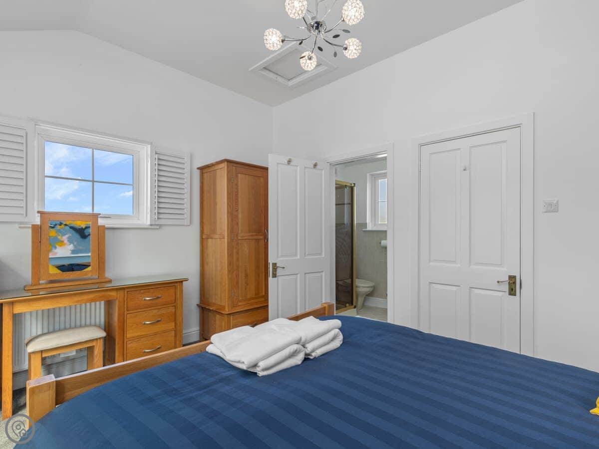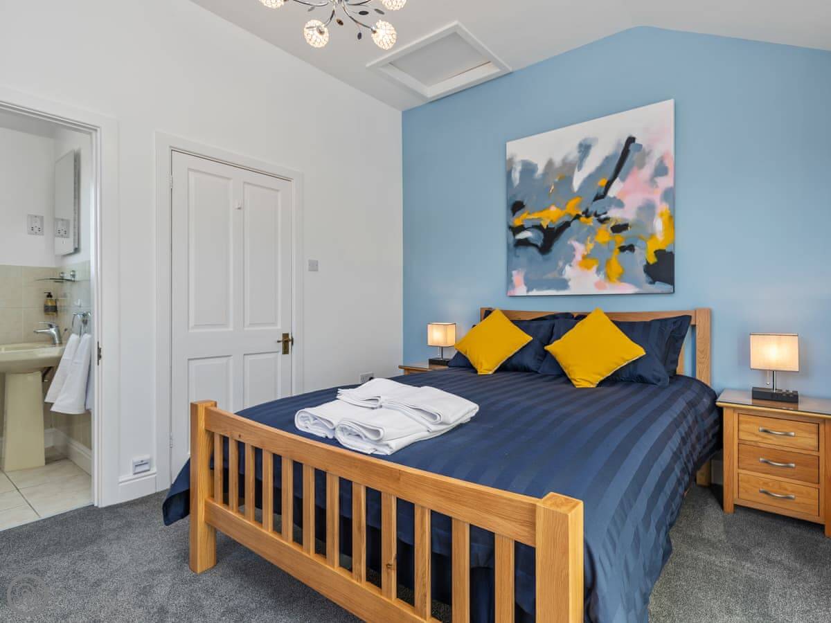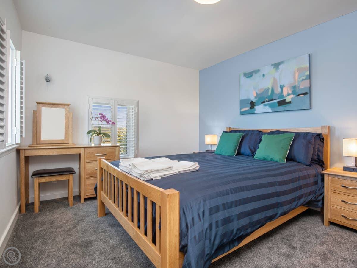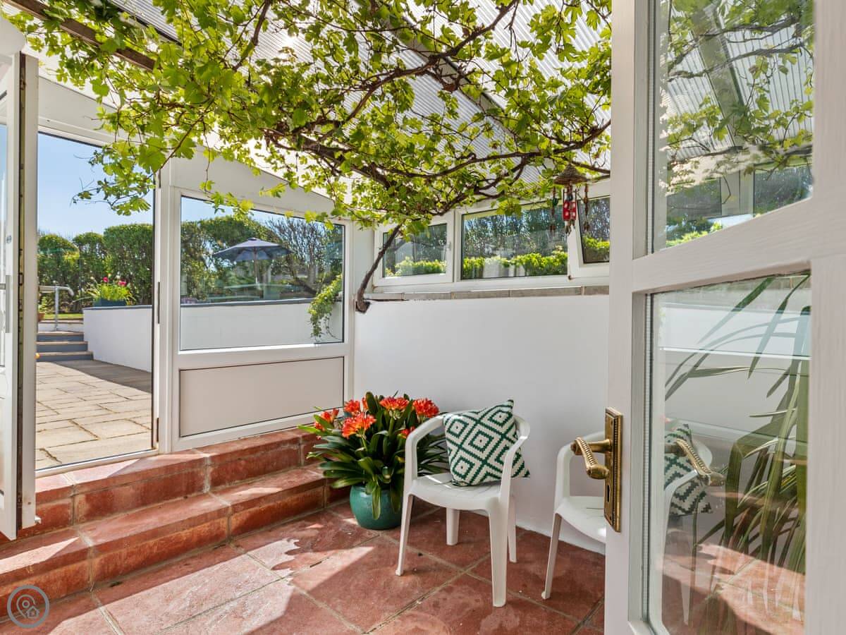 It sleeps six. Three bedrooms, two bathrooms so no queueing. One bedroom has its own shower room. There’s a little sun room off that bedroom. The stairs are fine.